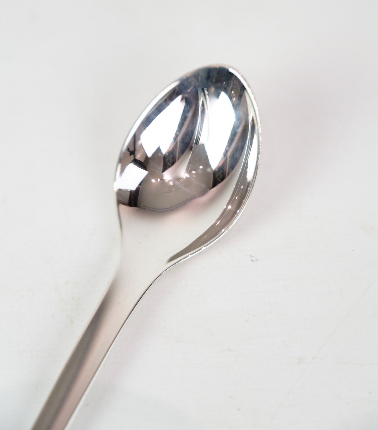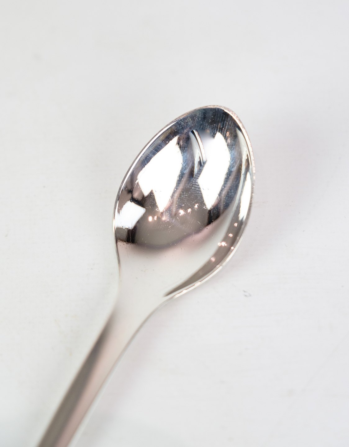 SolgtCocktail Ske i mønstret Caraval, designet af Georg Jensen og produceret i perioden 1945. Stemplet Georg Jensen sterling sølv.
