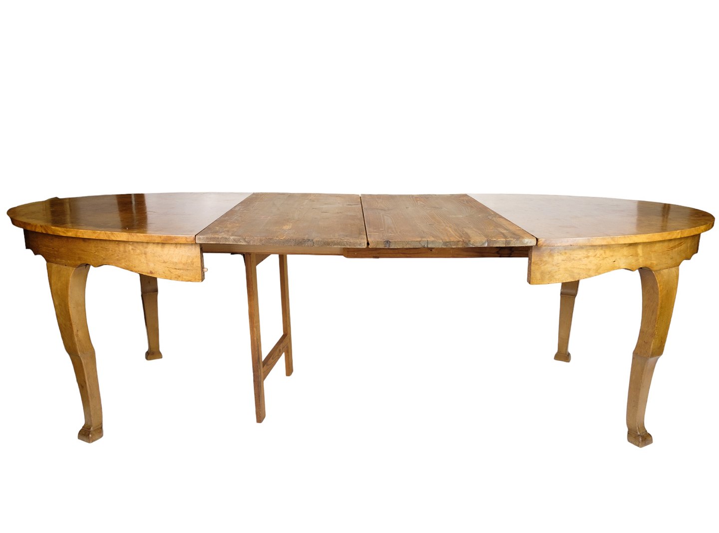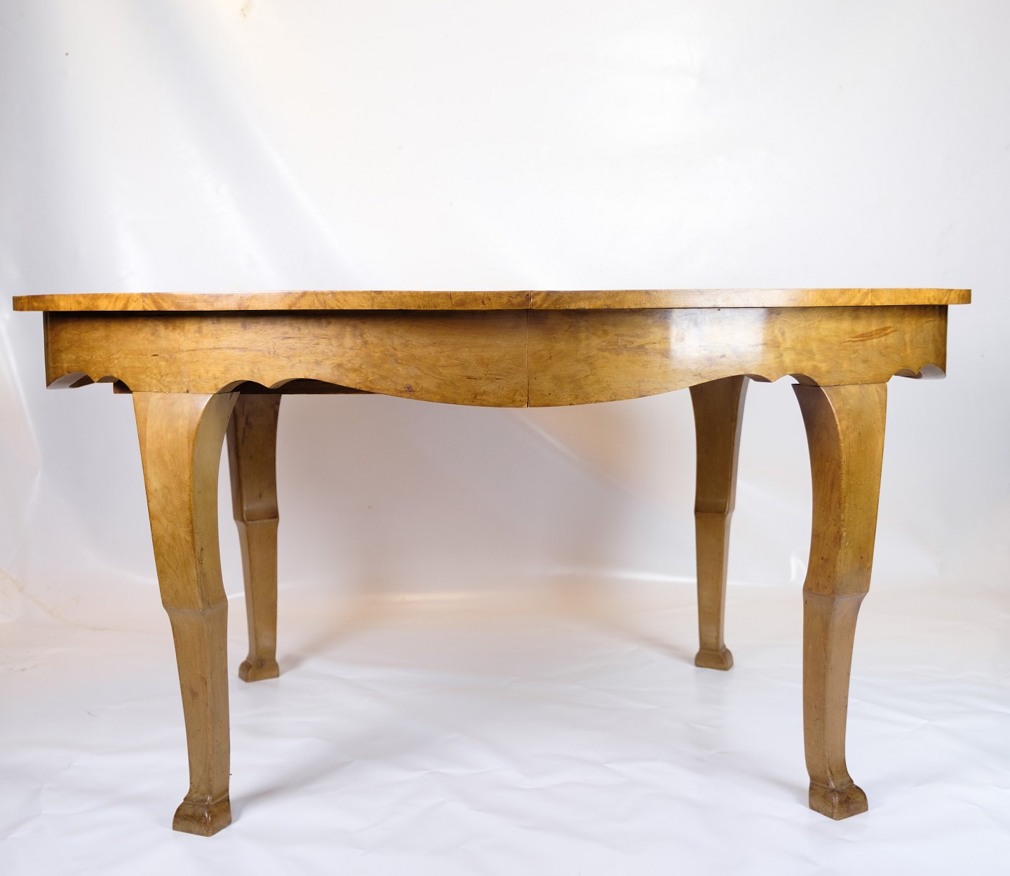 SolgtSpisebord med tillægsplader fremstillet i birketræ fra omkring 1920'erne.