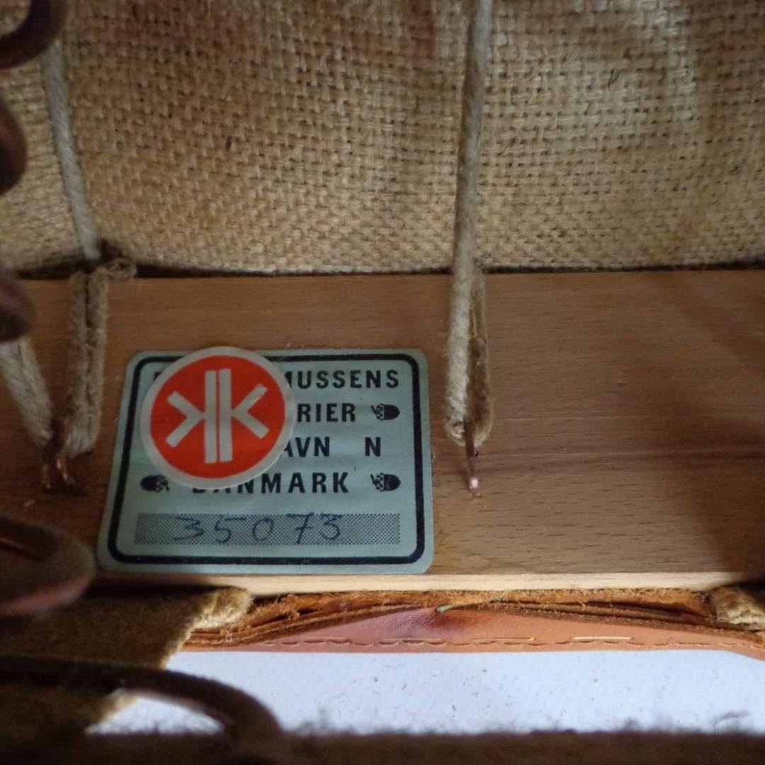 Sofaen er signeret med et mærkat fra producenten, der angiver dens oprindelse fra (Rud. Rasmussens Snedkerier), en kendt dansk møbelproducent. Dette tilføjer ikke kun historisk værdi til værket, men bekræfter også dets ægthed.