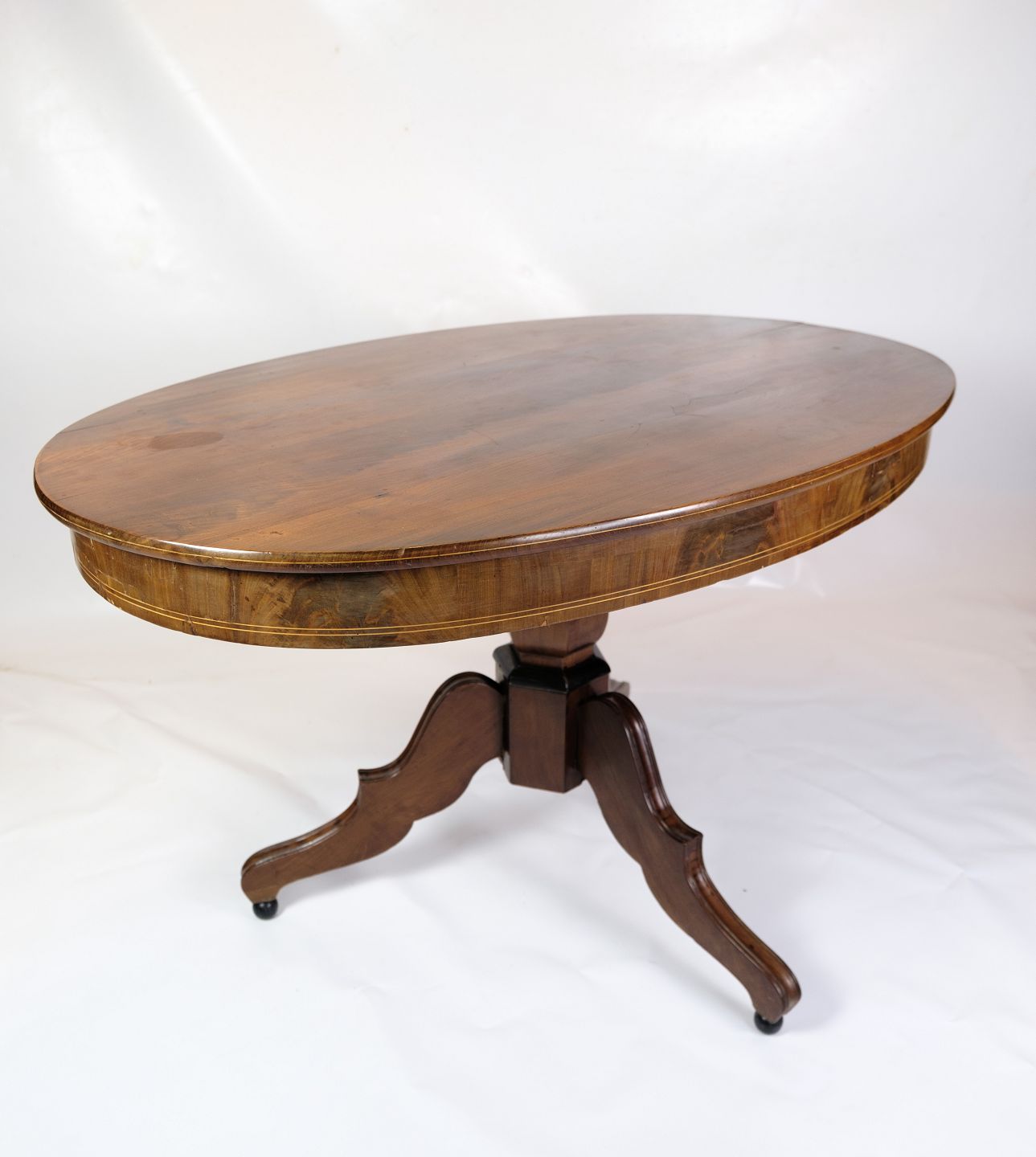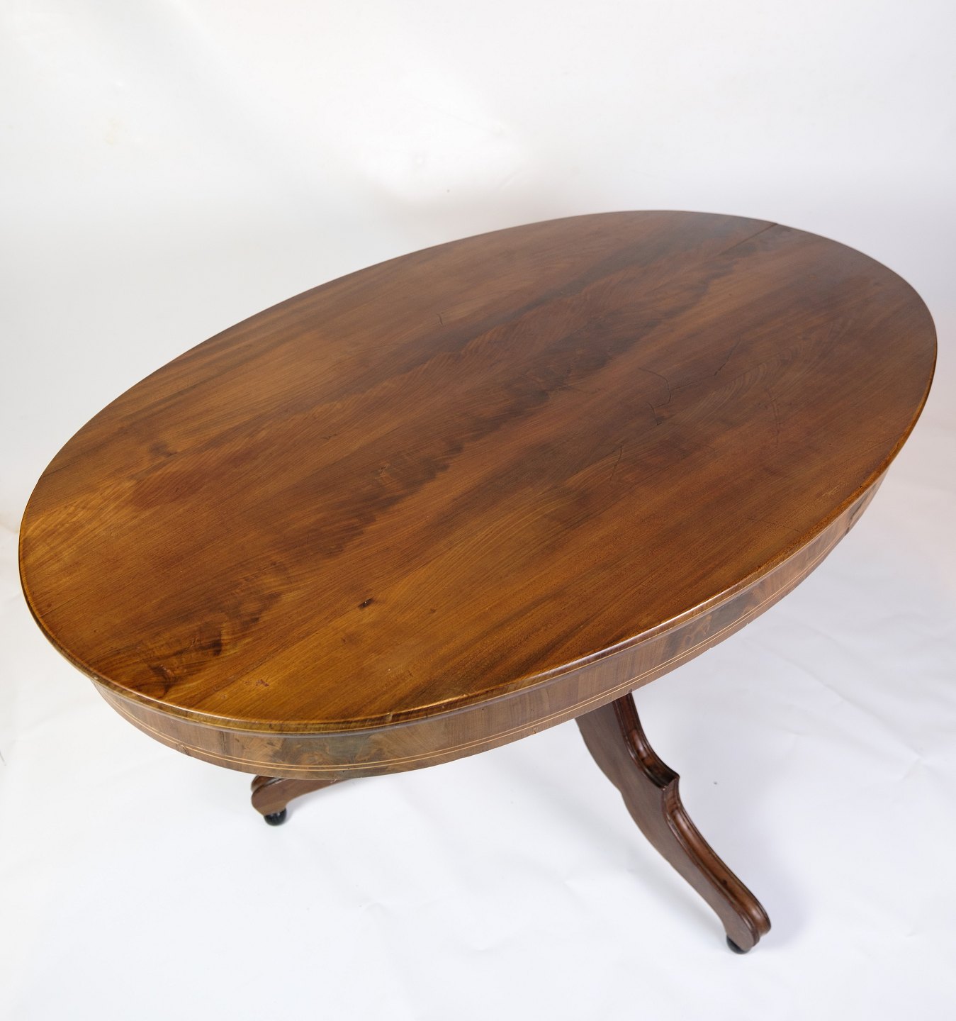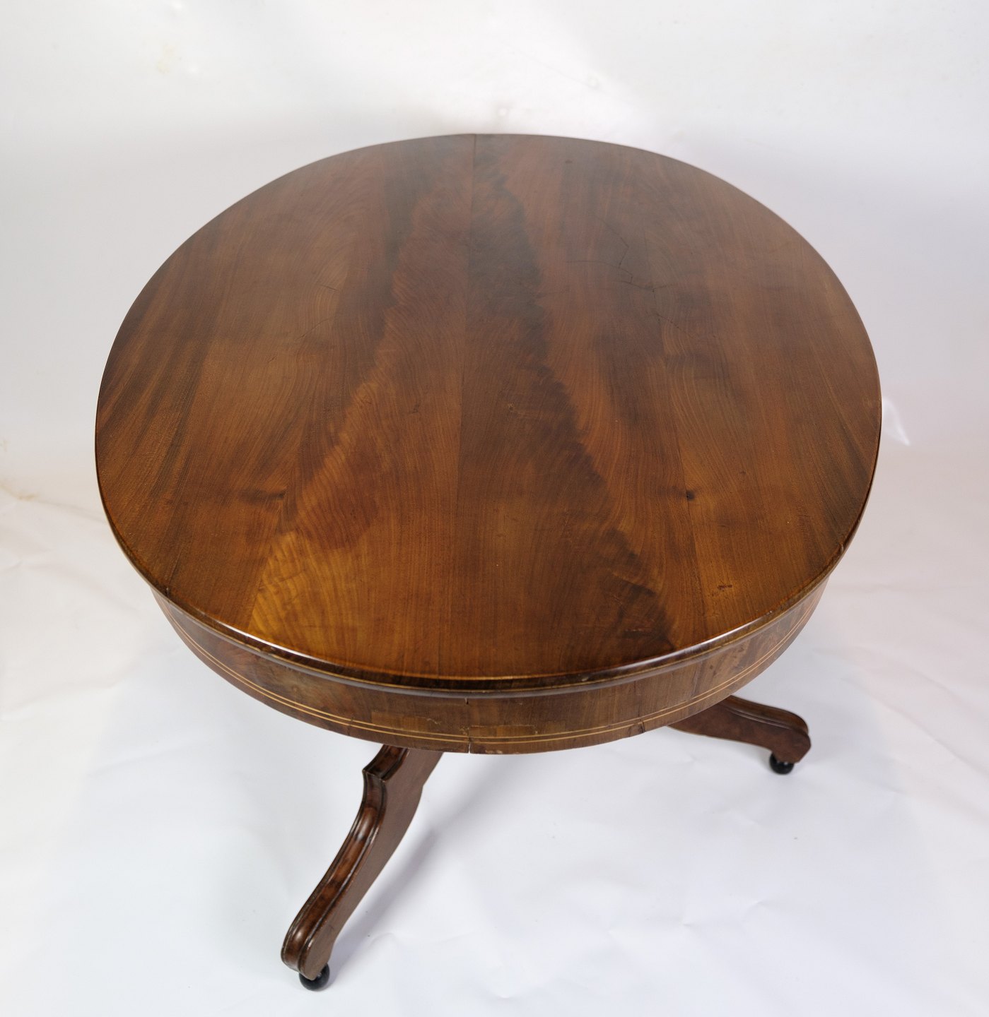 Rundt spisebord i mahogni fra senempire med 3 fødder fra omkring 1840'erne.