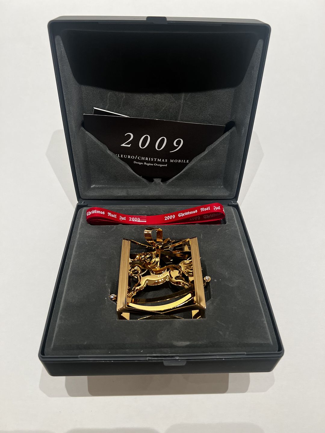 Georg Jensens juleuro fra 2009 med motivet af en gyngehest er virkelig en perle. Denne juleuro er lavet af forgyldt messing med 24-karat guld, hvilket tilføjer en aura af luksus og elegance til stykket. Designet af Regitze Overgaard, bærer det præg af hendes finesse og stil.