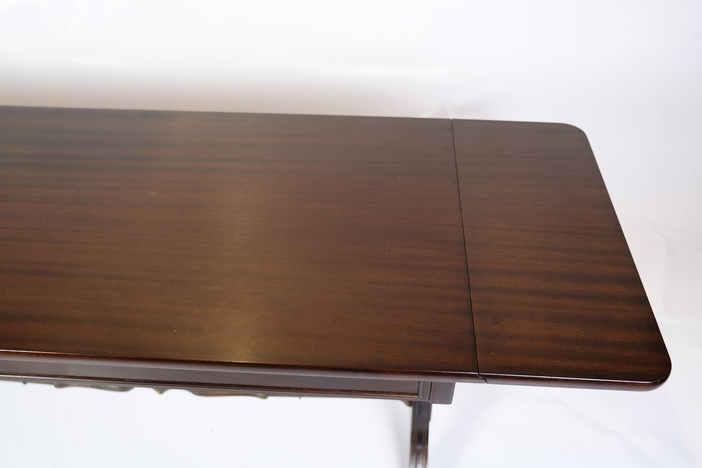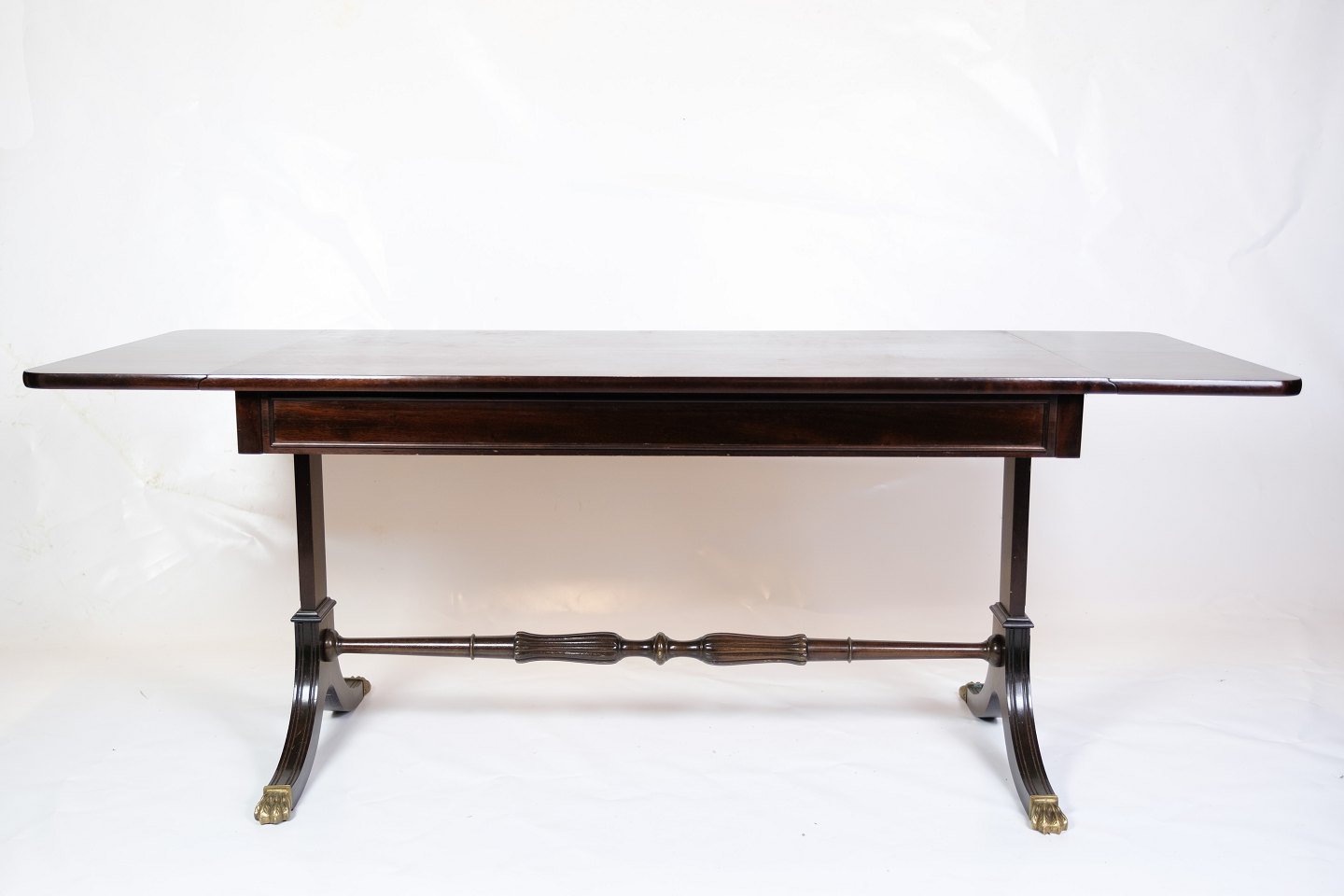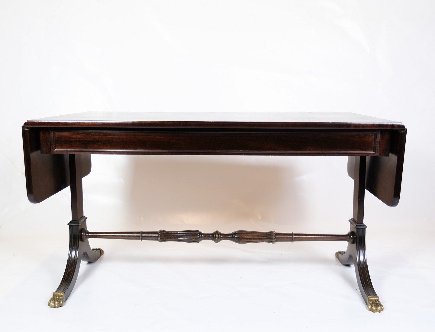 Sofabord af mahogni af dansk snedkermester dekoreret med løve fødder af messing og træ udskæringer fra omkring 1920'erne.