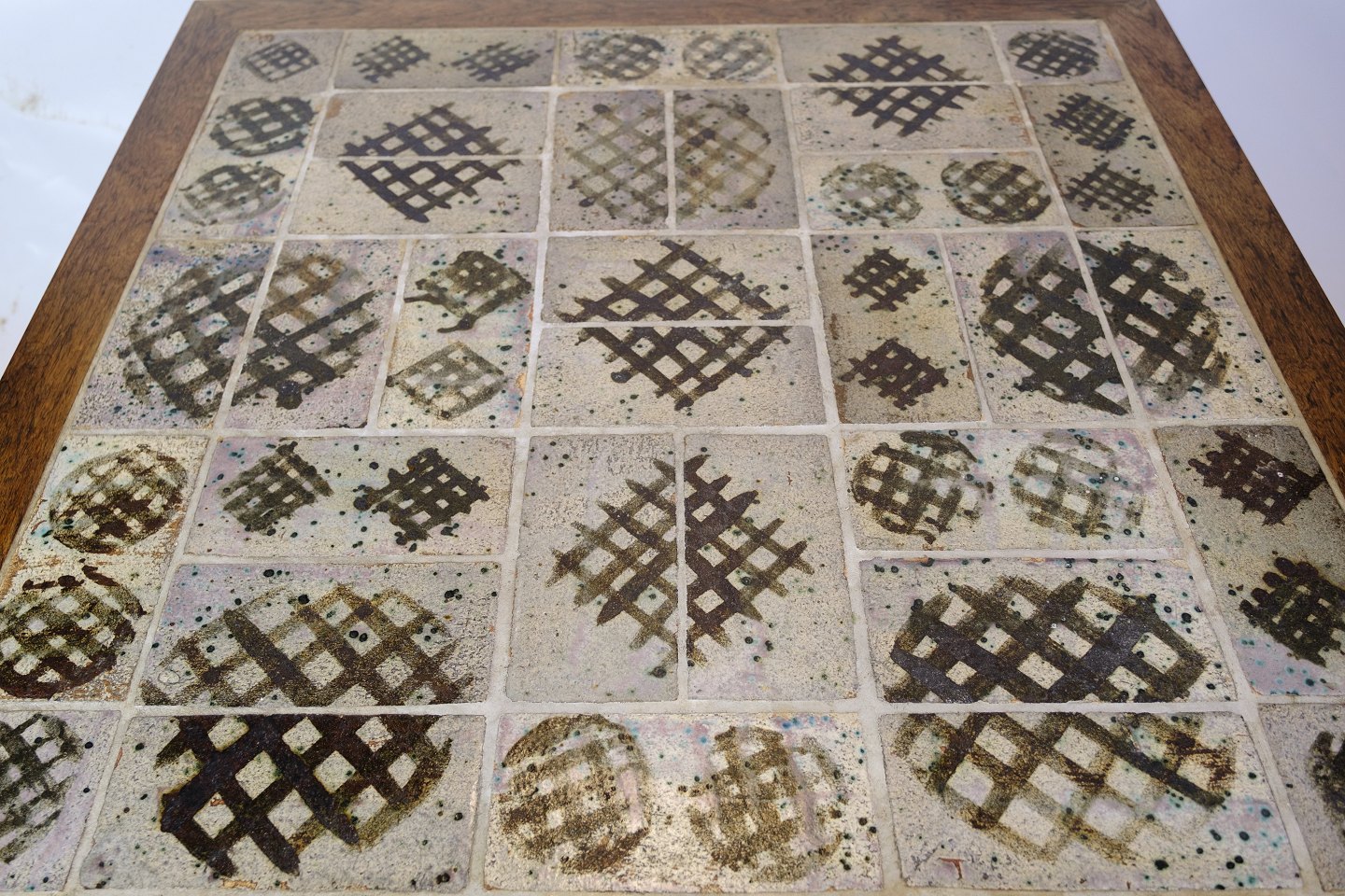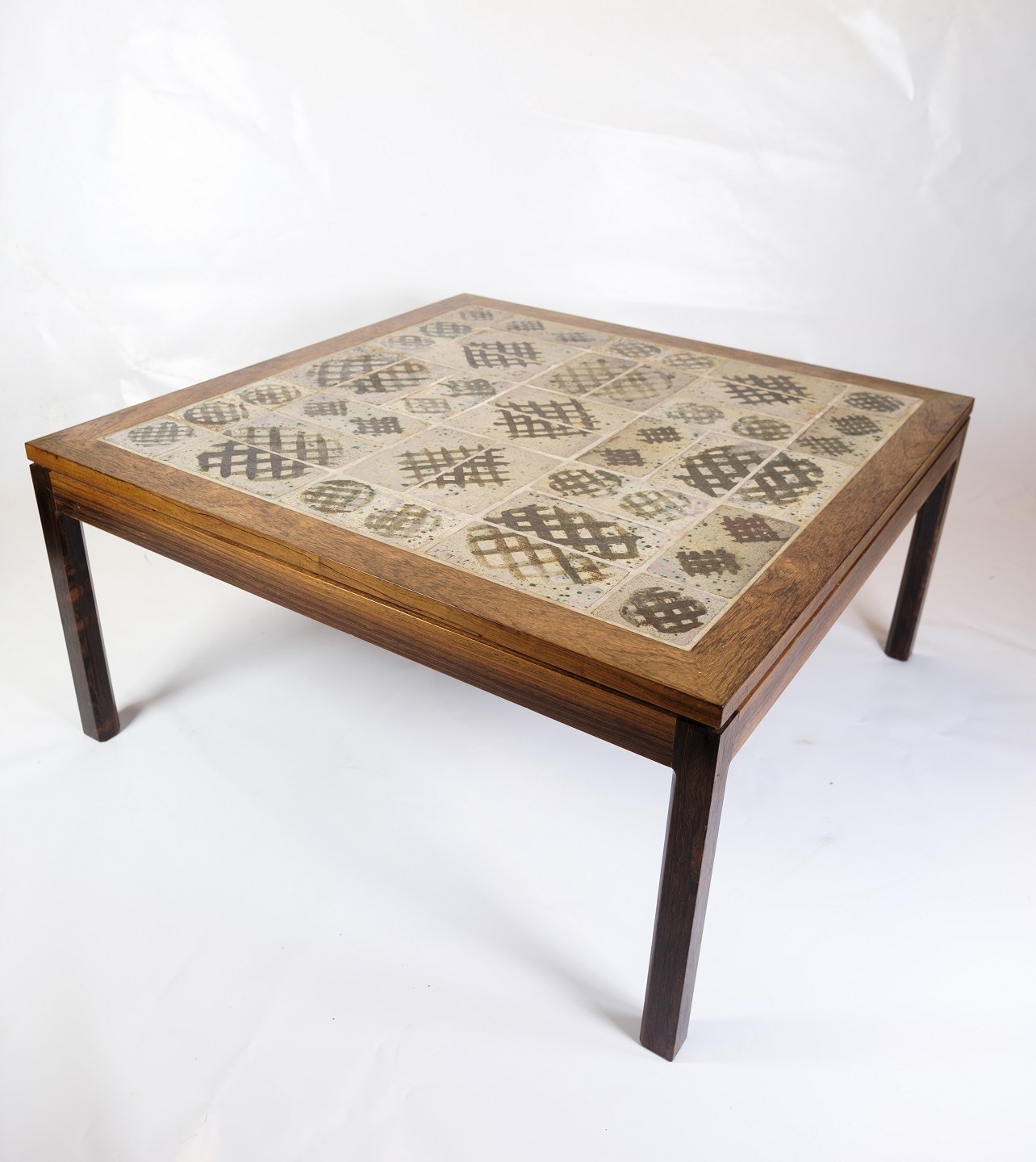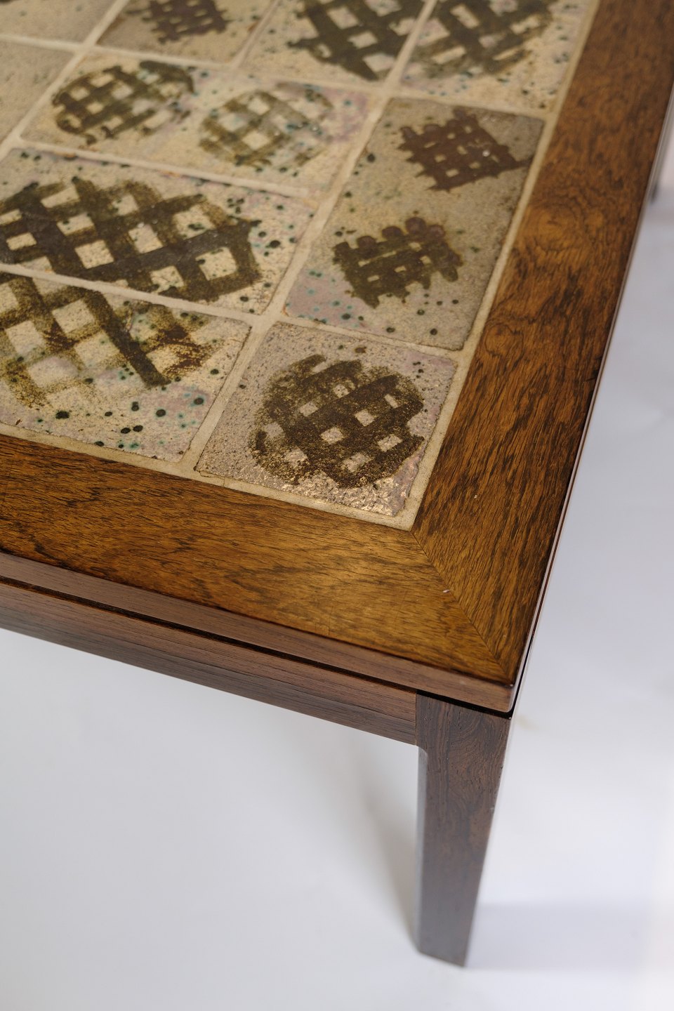 Palisandertræets varme toner og smukke mønster kombineret med de livlige farver på kaklerne skaber en smuk kontrast. Et praktisk og stilfuldt møbel, der vil tilføre en særlig elegance til ethvert rum.