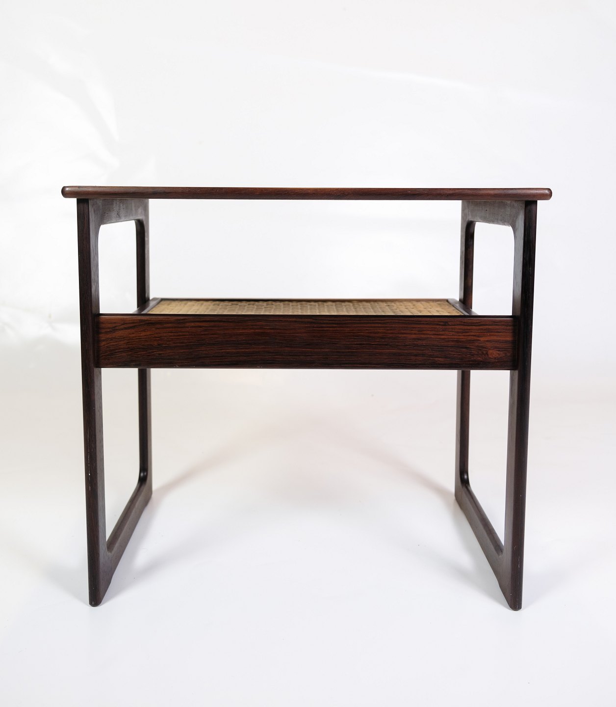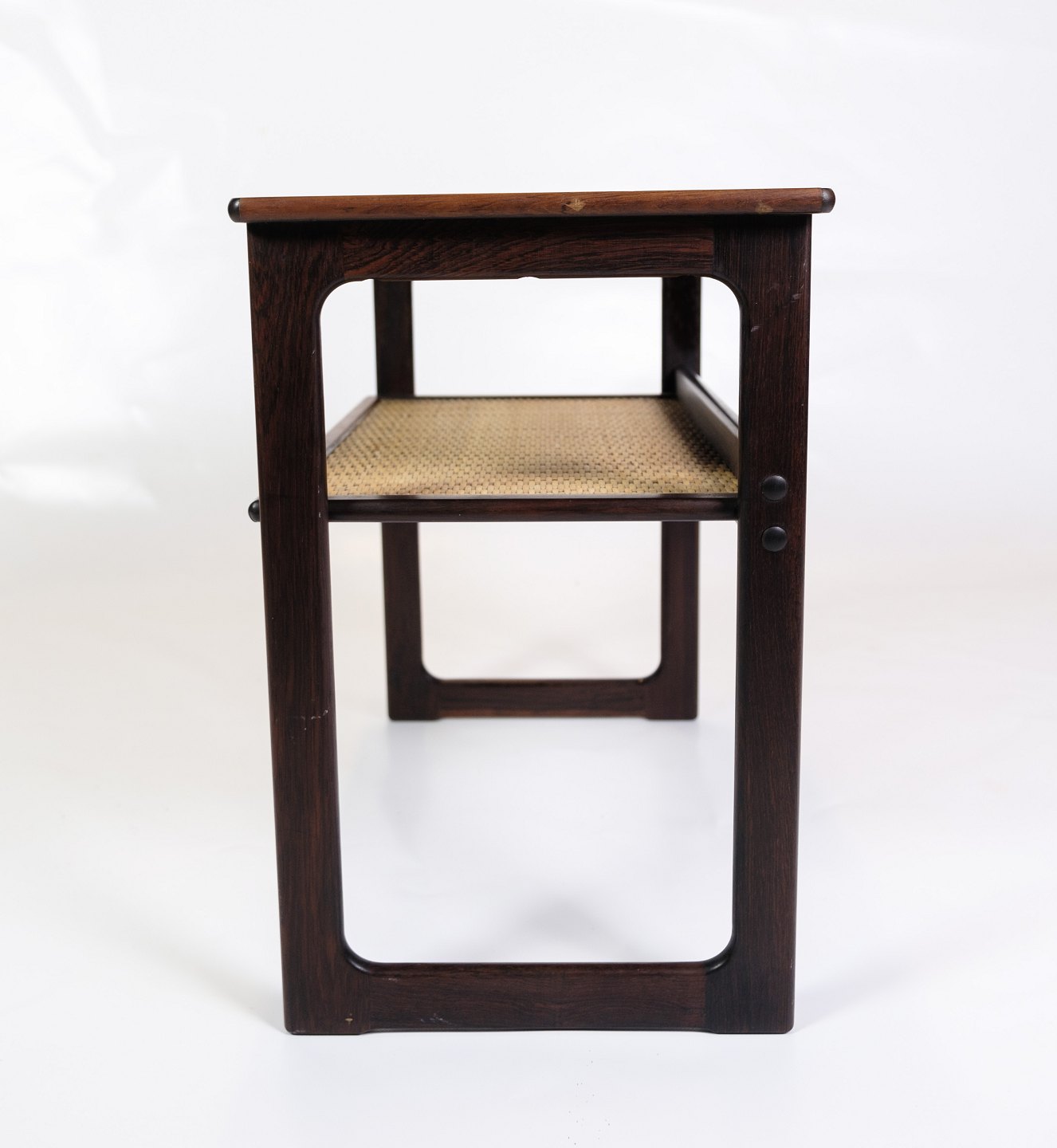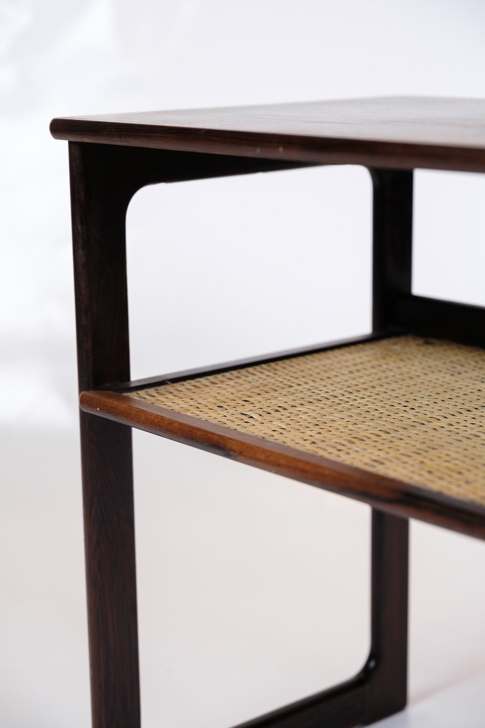 SolgtSidebord, designet af Johannes Andersen og Illum Wikkelsø fremstillet i Palisander med flet underhylde af C.F.C. Silkebord Møbelfabrik fra omkring 1960'erne.
