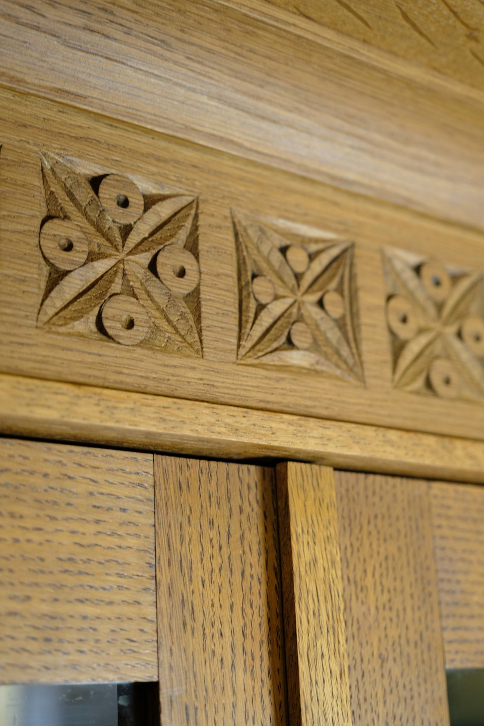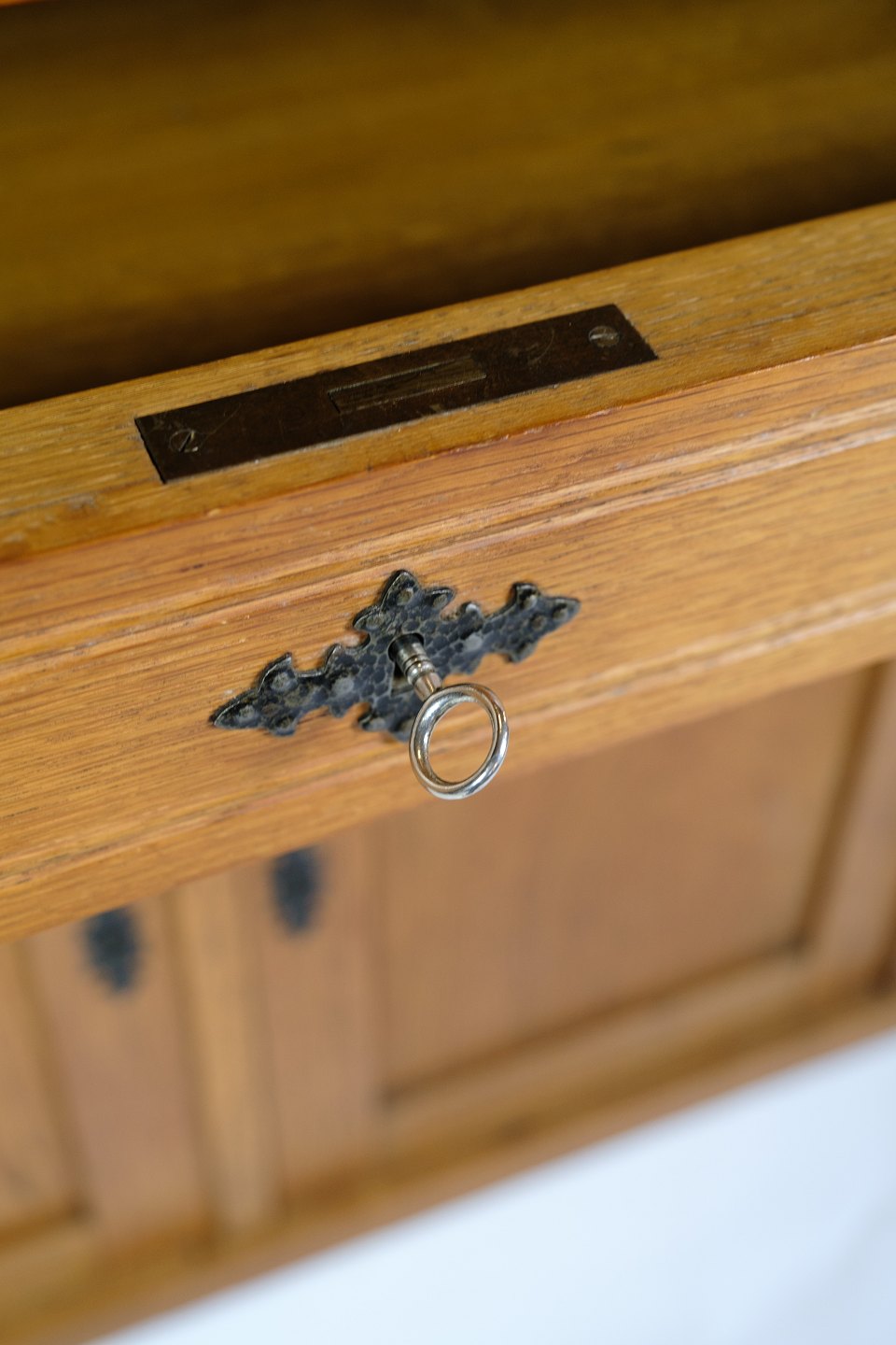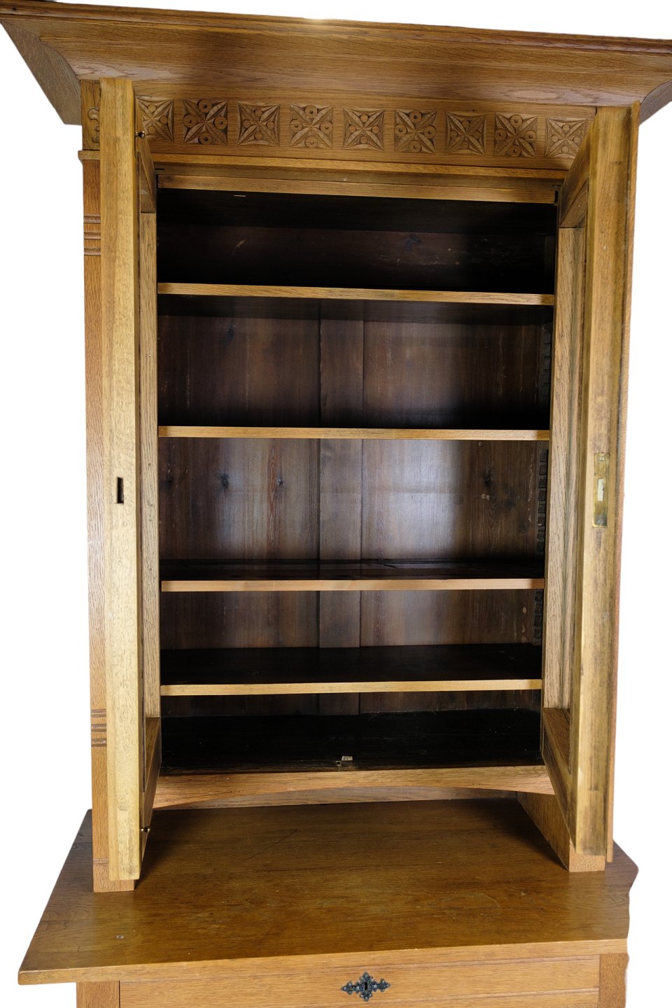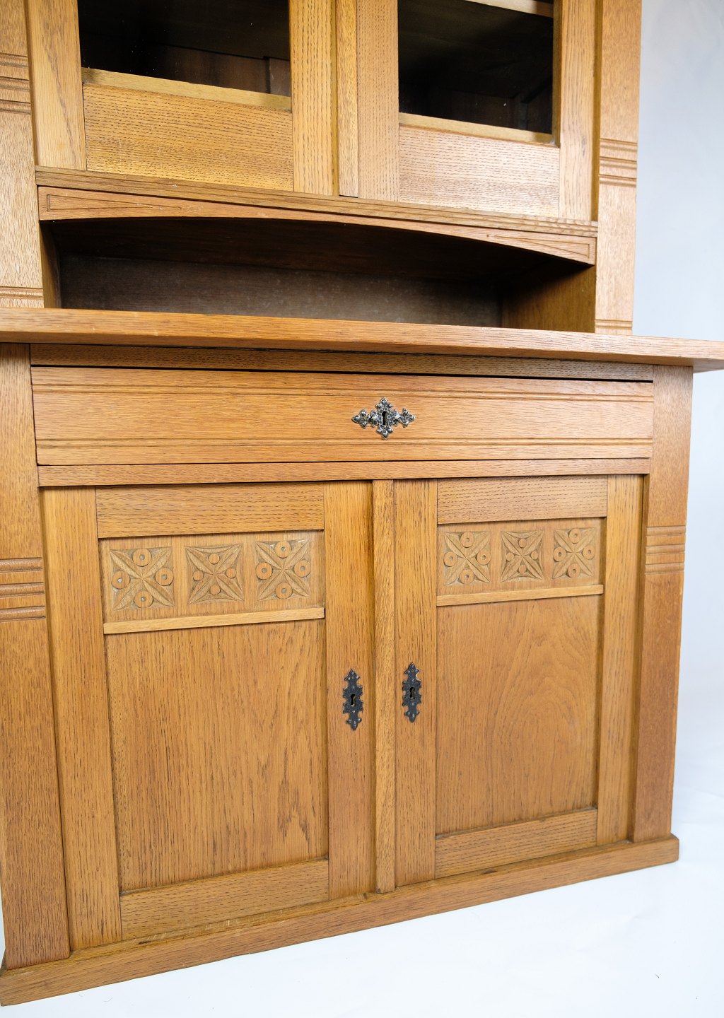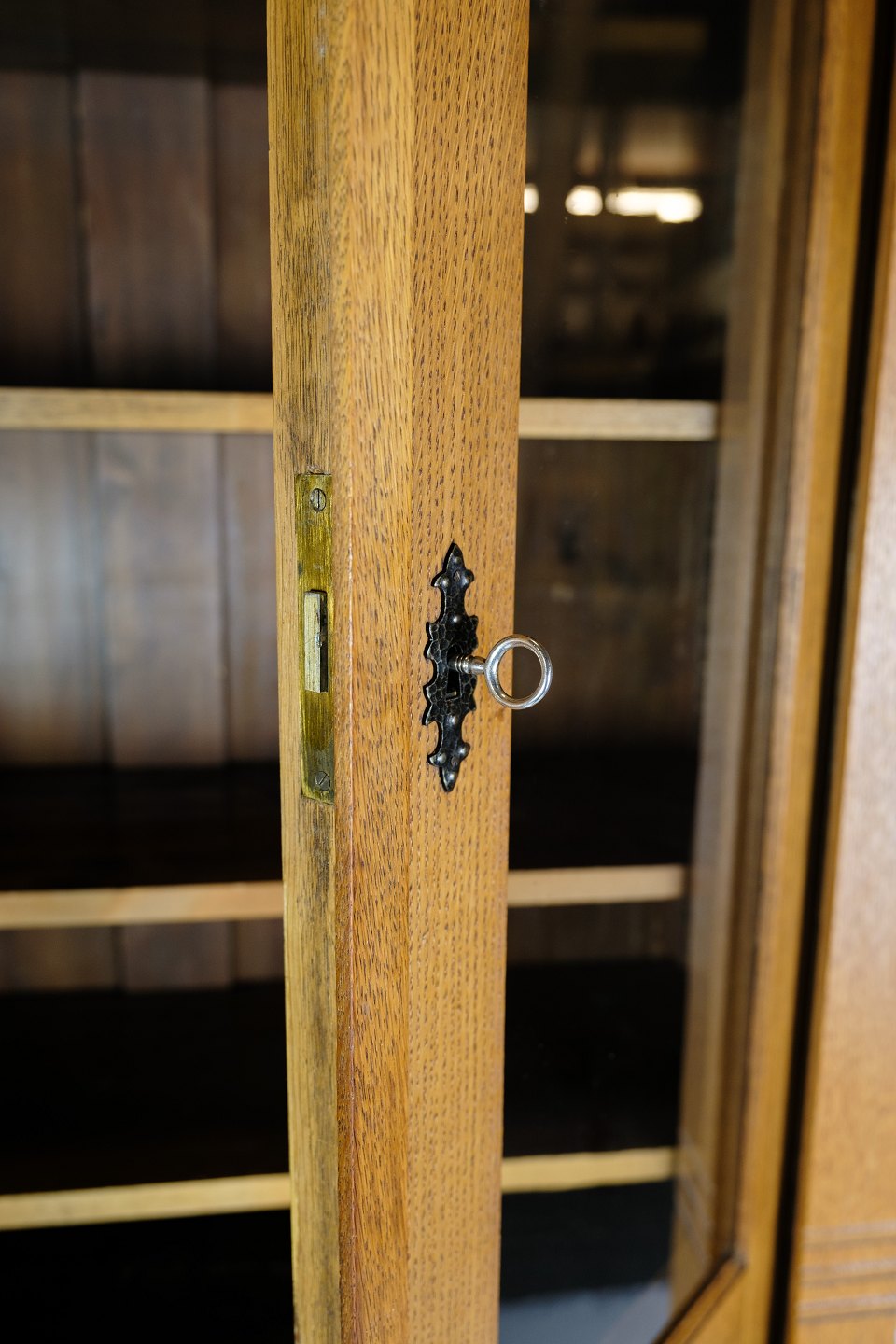 Højt Vitrineskab - Egetræ - Glas Låger - Original Nøgle - 1880
