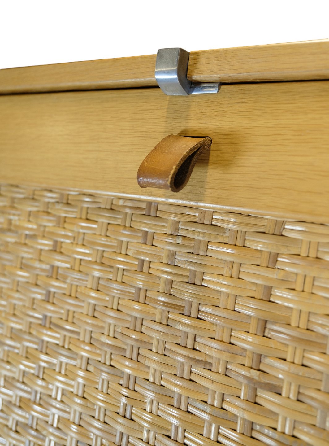 SoldA wall-hung bed designed by Hans Wegner for Ry Møbelfabrik with steel legs and wicker from around the 1960s is an example of Wegner's innovative approach to furniture design.