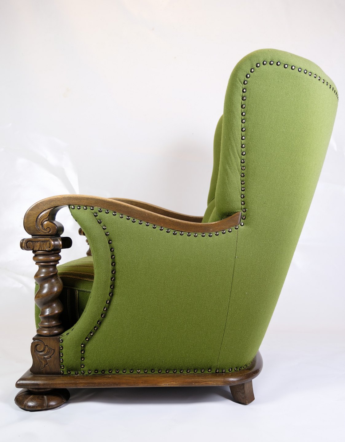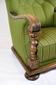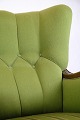 Højryggede lænestol - Grønt stof - Træudskæringer - 1920'erne