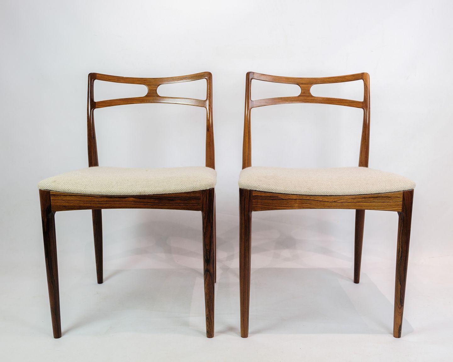 SolgtOplev tidløs elegance med dette sæt af to stole, model 94, skabt af den dygtige designer Johannes Andersen og fremstillet af Chr. Linnebergs Møbelfabrik omkring 1960'erne. Stolene, udført i palisandertræ, udstråler en subtil luksus og indfanger essensen af dansk møbelkunst fra midt i det 20. århundrede.