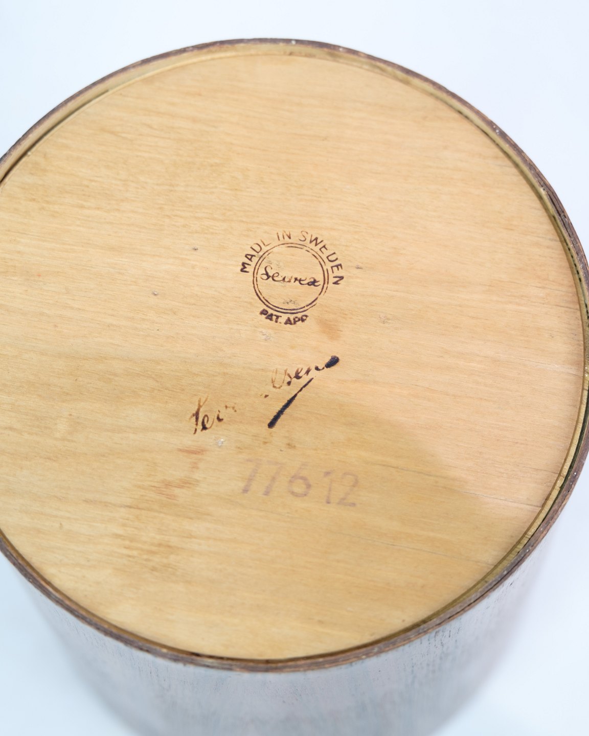 Teaktræets varme toner giver en subtil elegance til denne praktiske genstand. Designet, typisk for svensk design fra 1960'erne, er præget af rene linjer og funktionelt formsprog. Papirkurven viser også den håndværksmæssige omhu, der var karakteristisk for den nordiske designtradition.