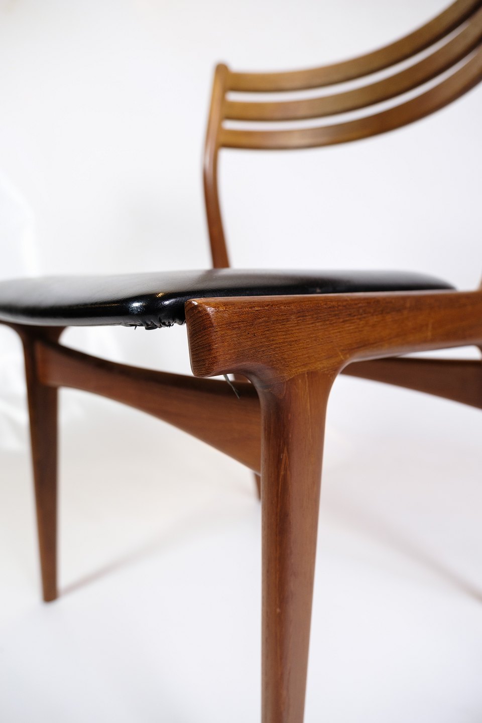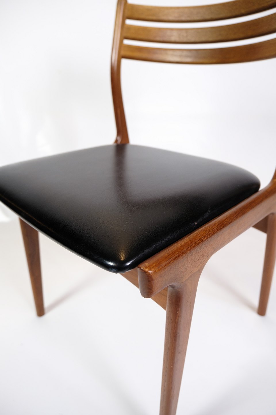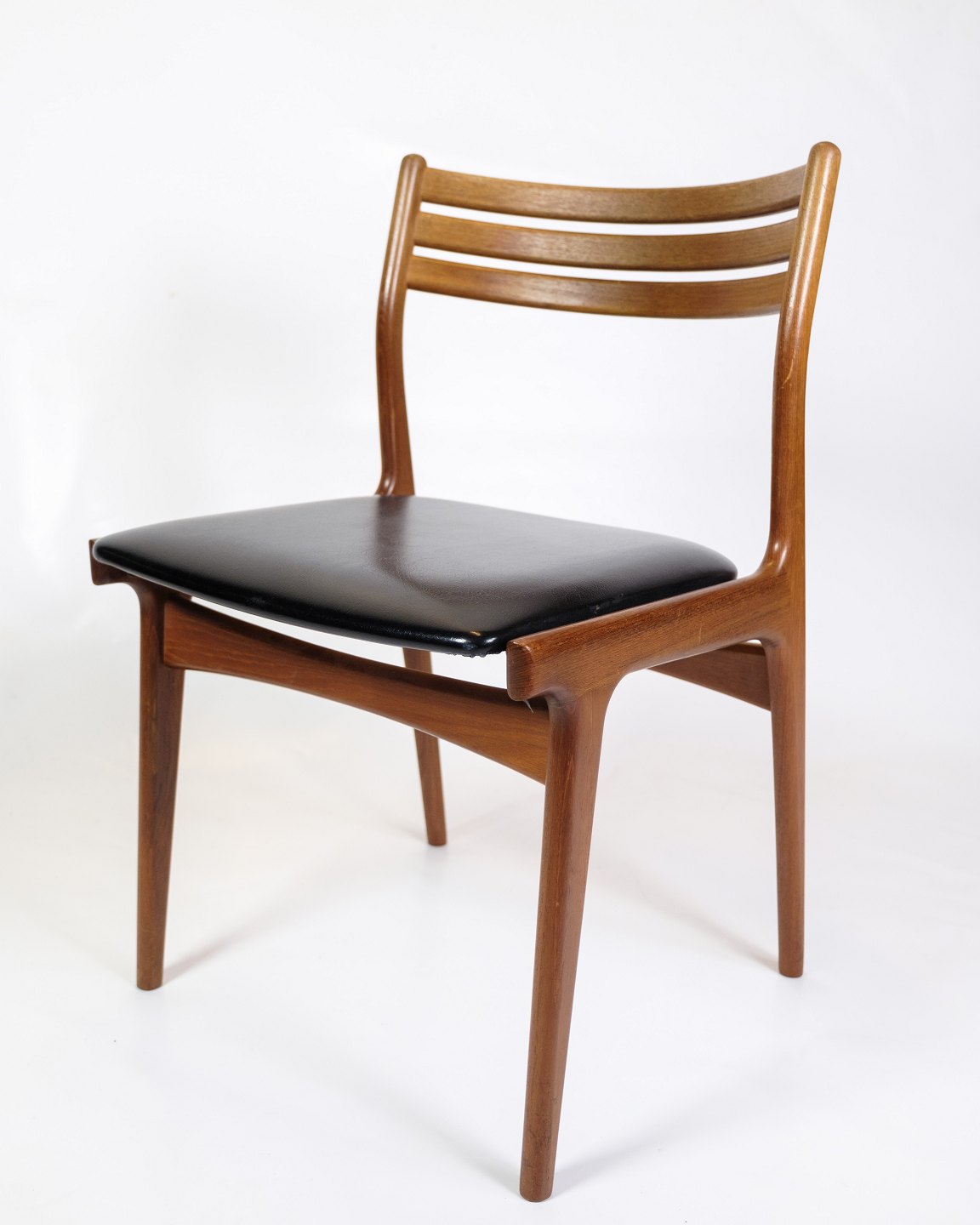 Sæt af 6 Spiseborsstole - Model U20 - Teak - Sort læder - Johannes Andersen - Uldum Møbelfabrik - 1960