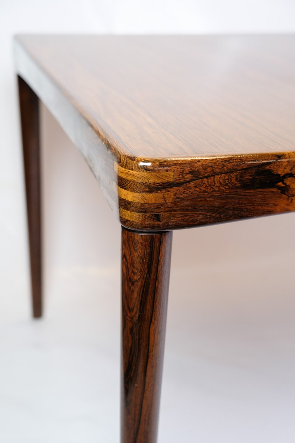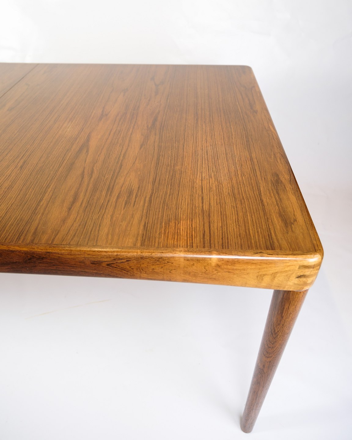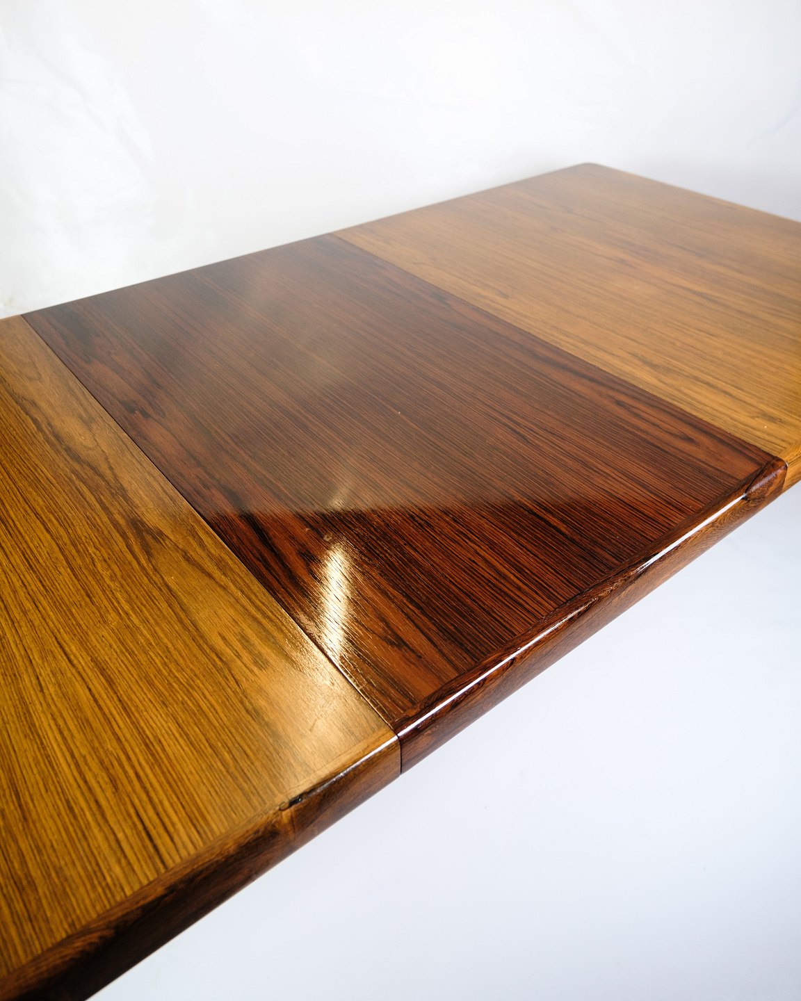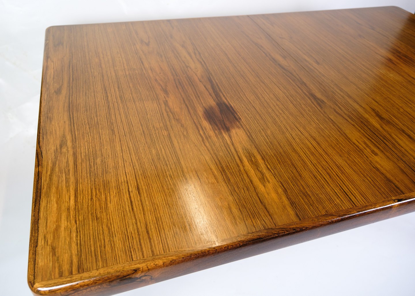 Palisandertræets naturlige skønhed skinner igennem på dette bord, og de tappesamlinger tilføjer både styrke og visuel appel. Henry W. Kleins designfilosofi om at skabe møbler, der er tidløse og funktionelle, kommer klart til udtryk i dette spisebord.
