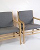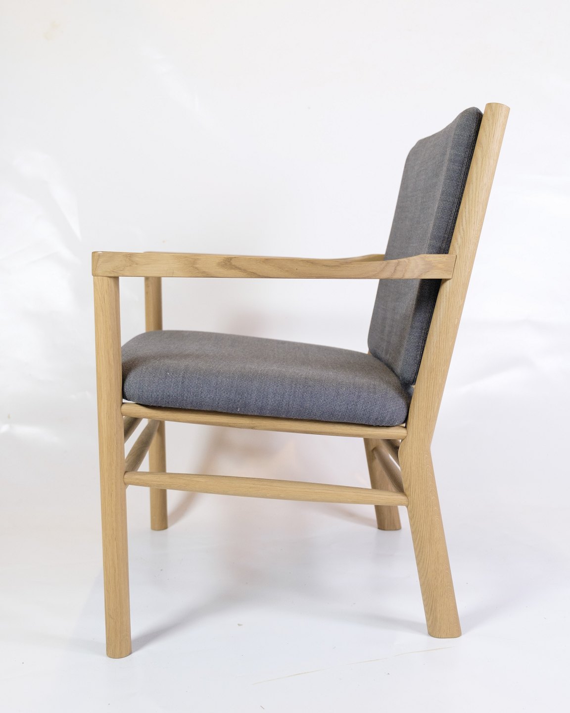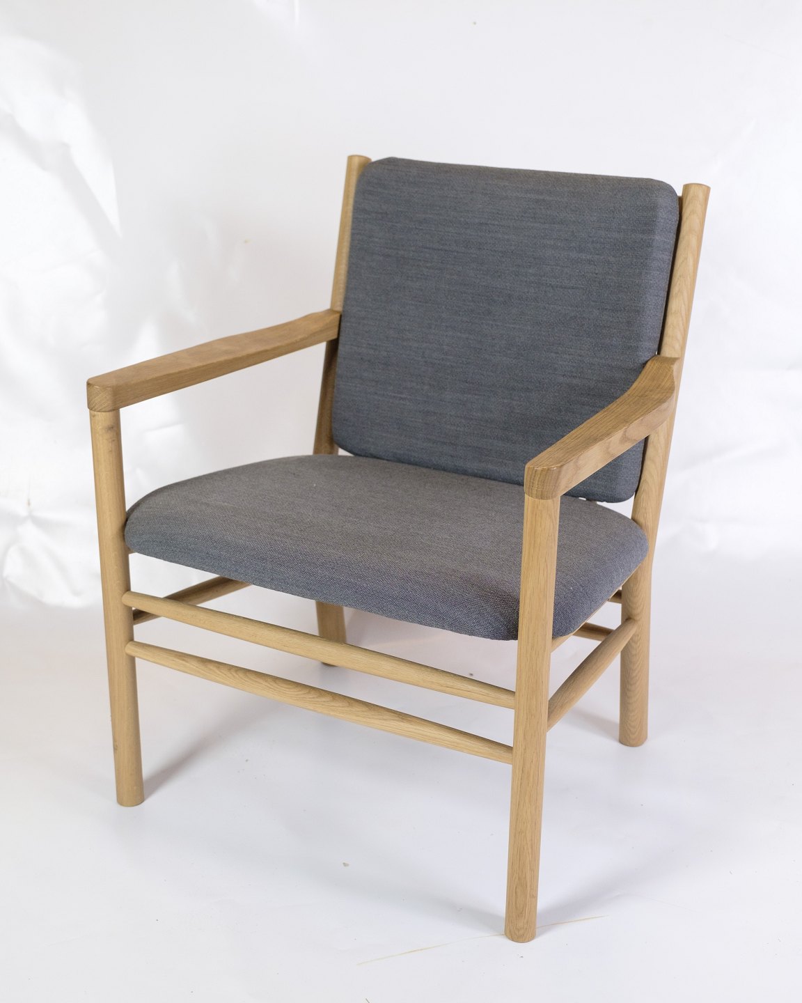 SolgtDette sæt af to lænestole, model J147, udstråler en sublim kombination af komfort og elegance. Fremstillet af solidt egetræ og polstret i et stilfuldt gråt uldbetræk, tilbyder disse lænestole en luksuriøs siddeoplevelse.