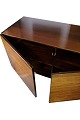 Palisandertræets varme tone og smukke struktur giver skænken et sofistikeret udseende, der passer perfekt til enhver indretningsstil. De to låger skaber mulighed for at skjule genstande, mens hylderne indeni giver plads til at organisere og vise personlige ejendele eller dekorative genstande.