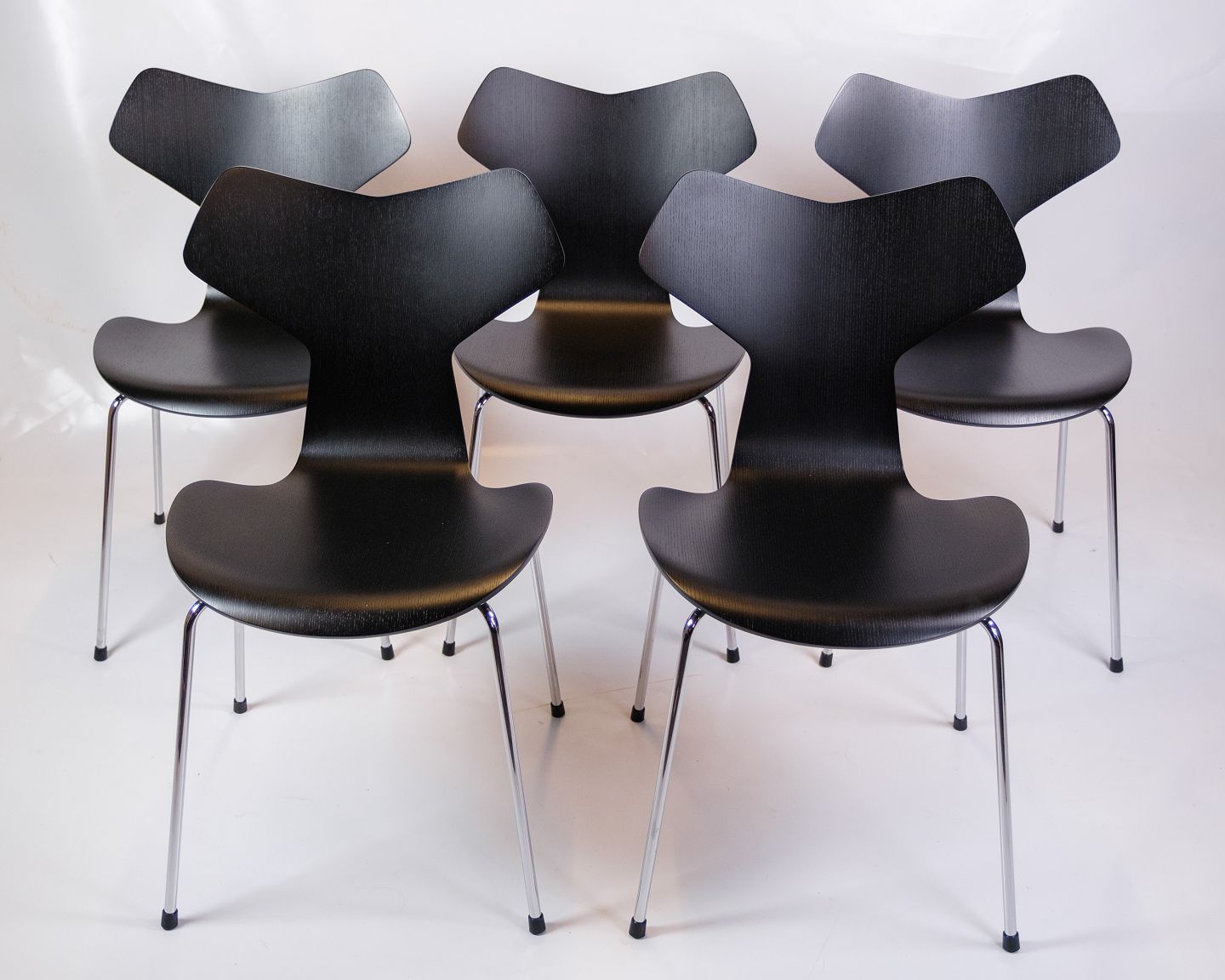 Sæt Af 5 Grand Prix Stole - Model 3130 - Sort Lakeret - Arne Jacobsen - Fritz Hansen