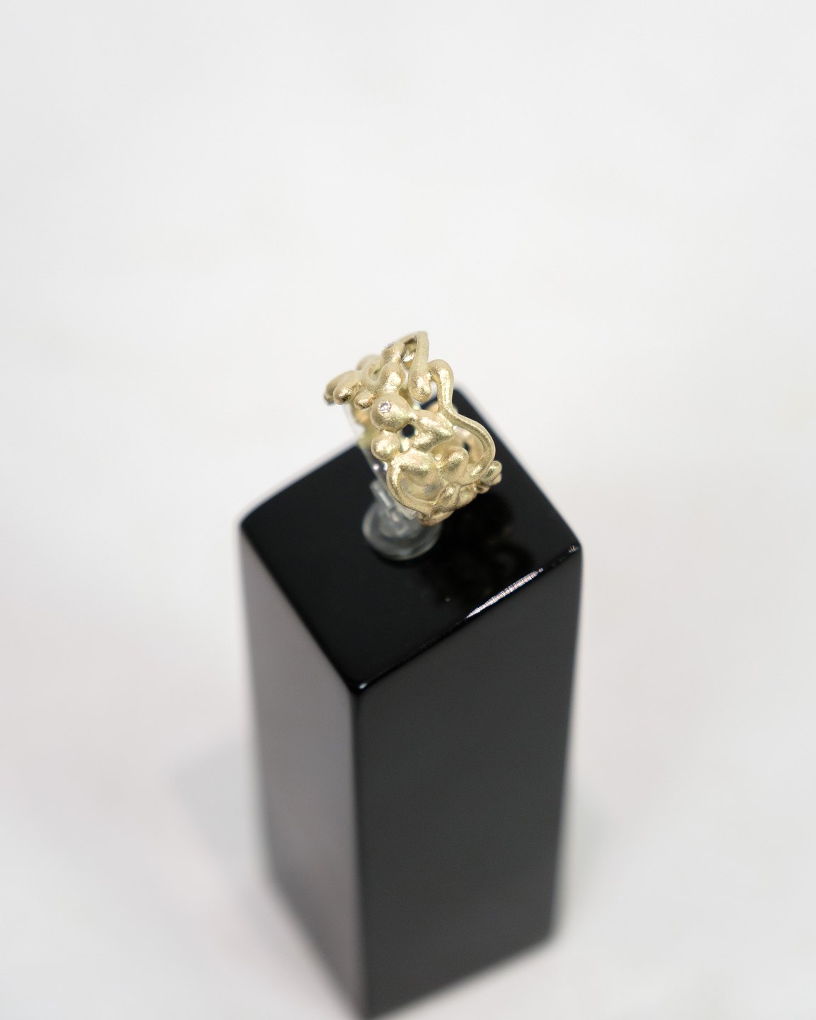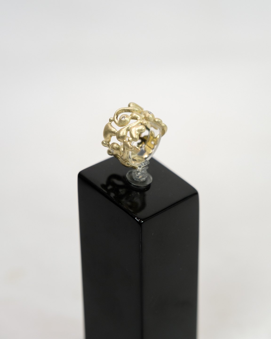 SolgtTroldering af 18 karat guld, prydet med 3 brillanter på tilsammen 0,06CT. Designet af Charlotte Lynggaard af Ole Lynggaard Copenhagen.