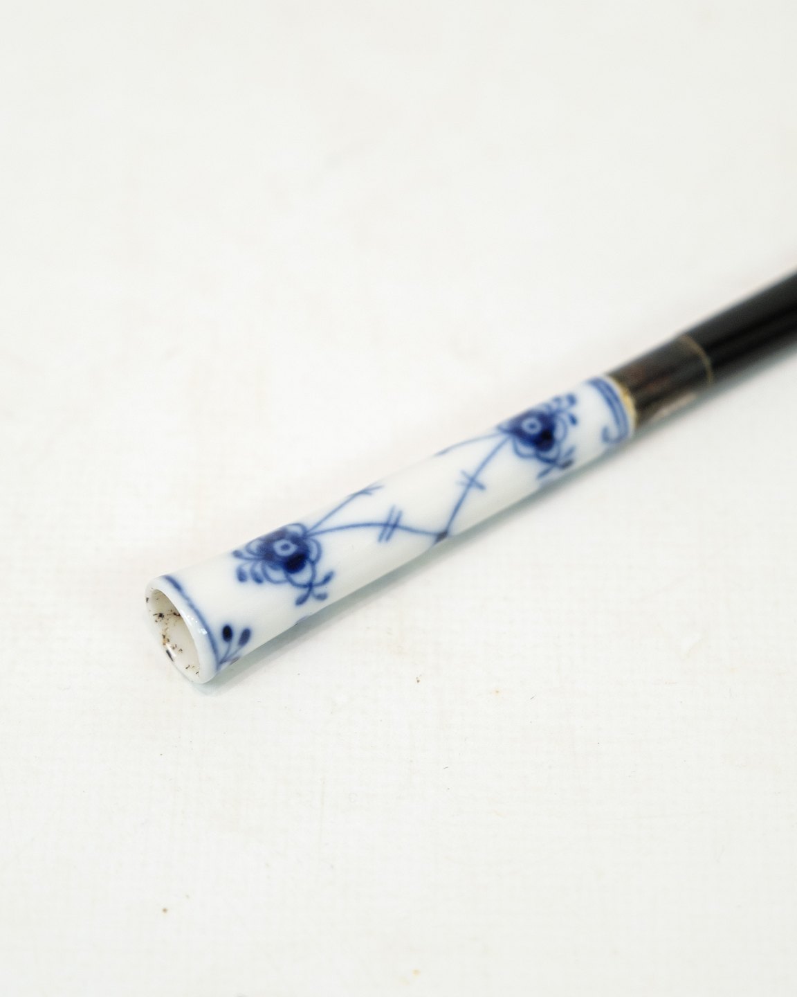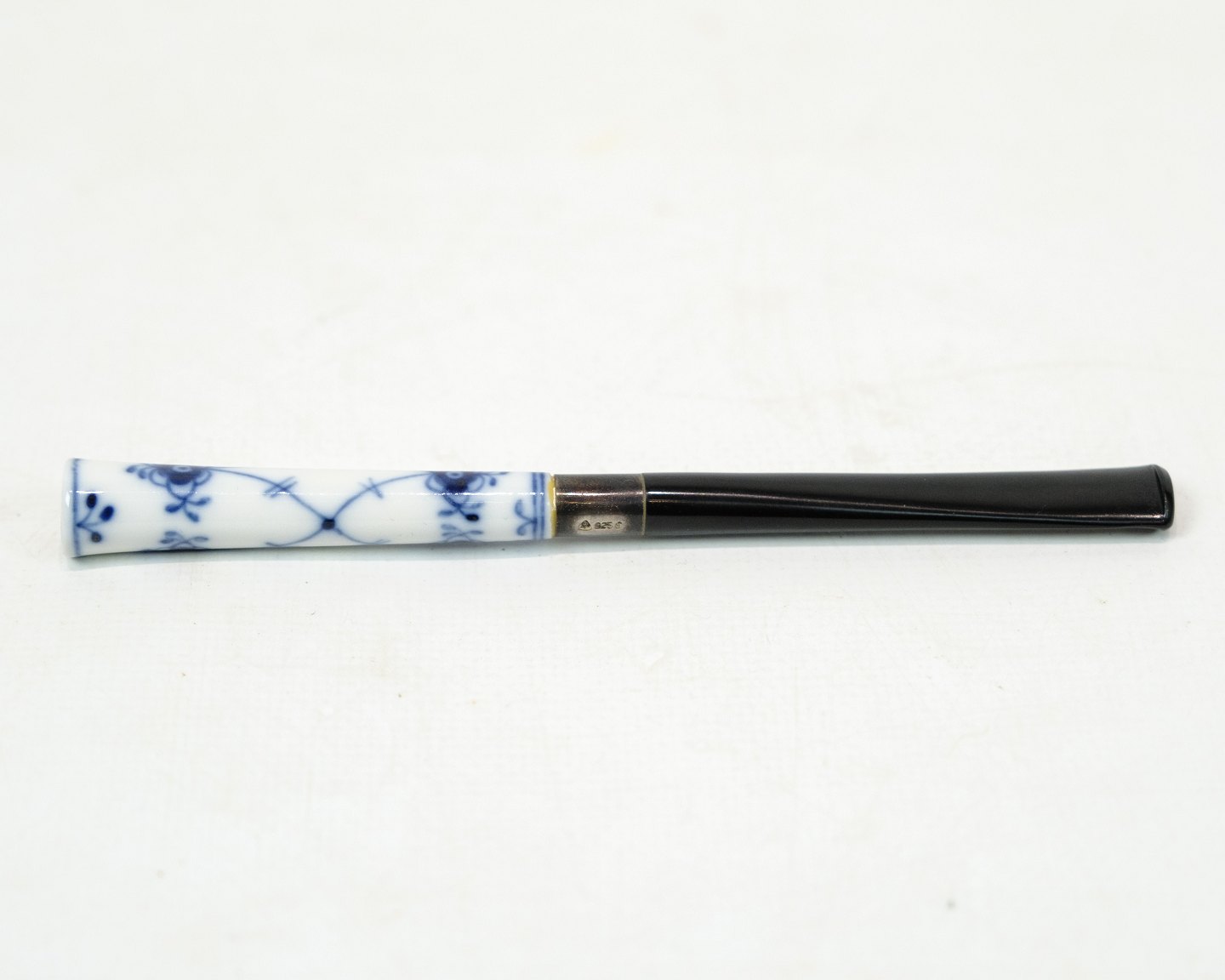 SolgtSjældent Cigaretrør i mønstret musselmalet riflet med en sølv montering. Perfekt stand uden skader.