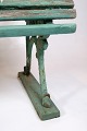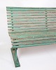 Antikke franske parkbænke fra 1930'erne, bemalet i en smuk grønlige farve med naturlig patina, der afspejler deres alder og historie.