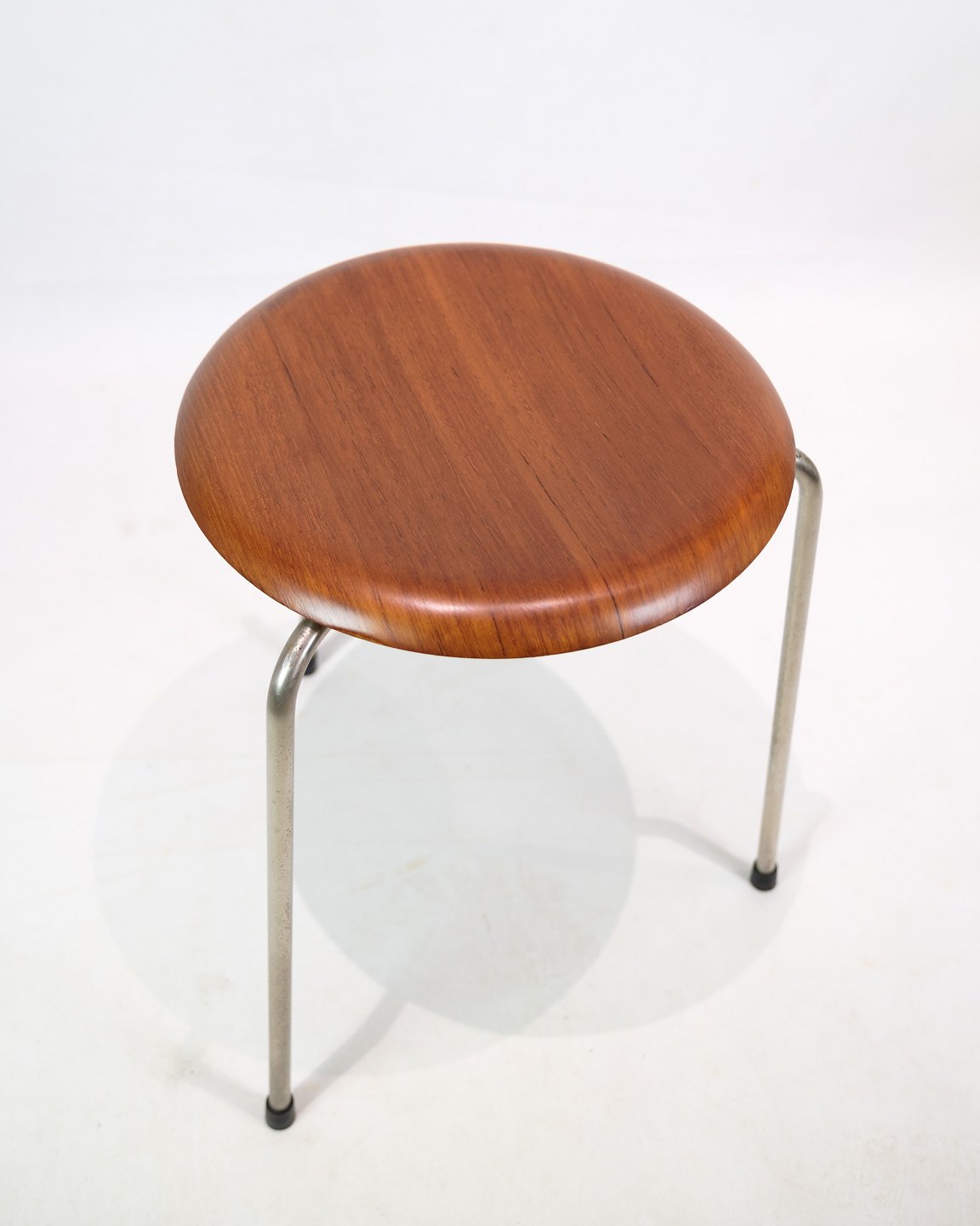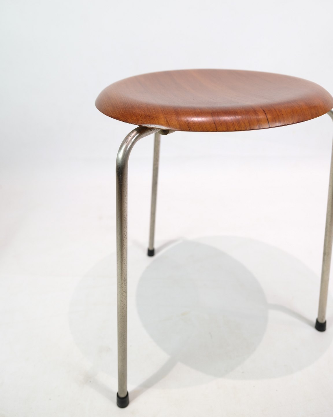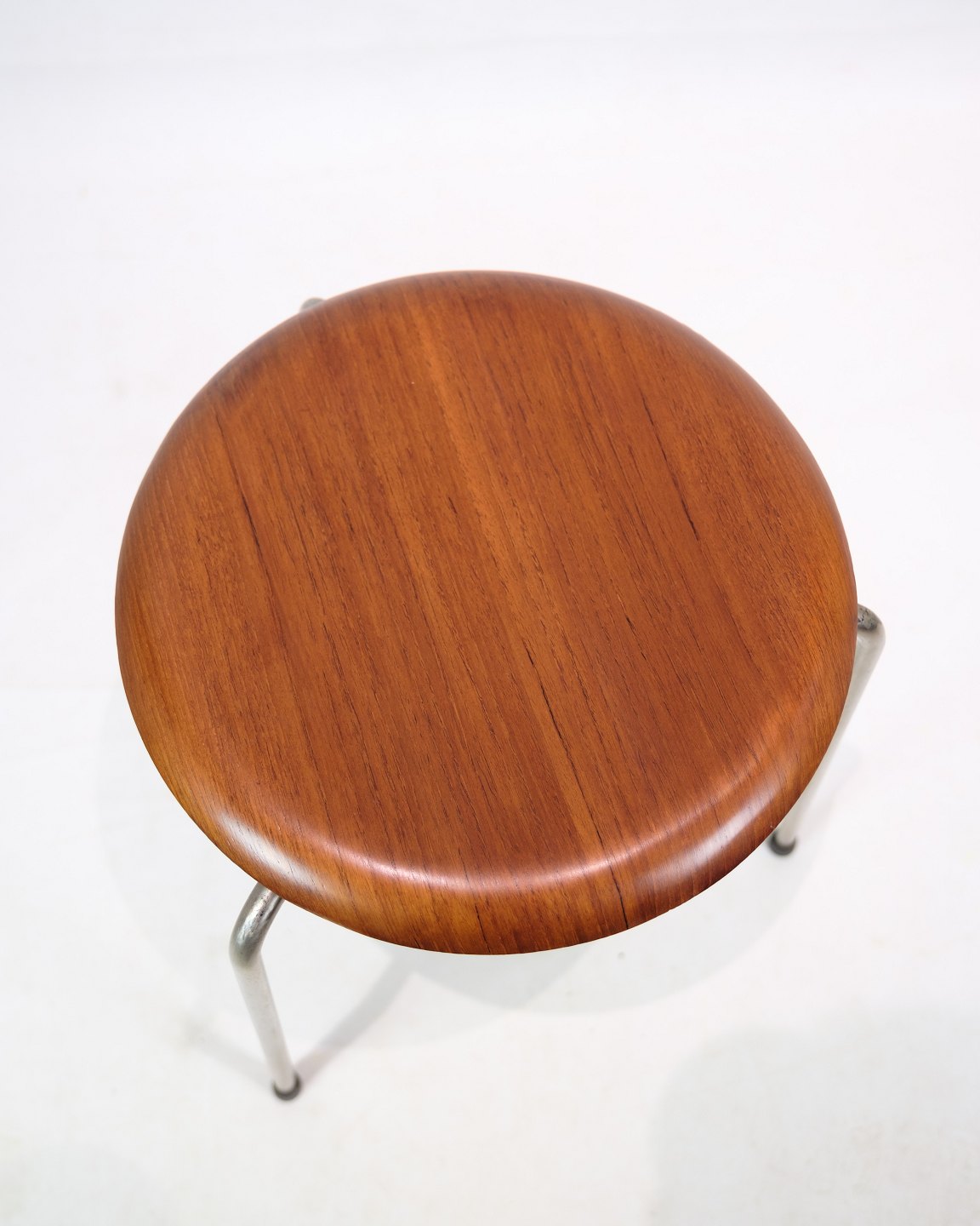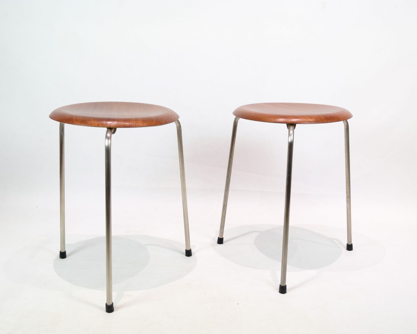 SolgtSæt af 2 Dot skamler, model 3170, designet af Arne Jacobsen og produceret af Fritz Hansen i 1950'erne. Skamlerne er udført i teak, som giver dem et varmt og klassisk udseende. Dot skamlen er et eksempel på Jacobsens minimalistiske og funktionelle designstil.