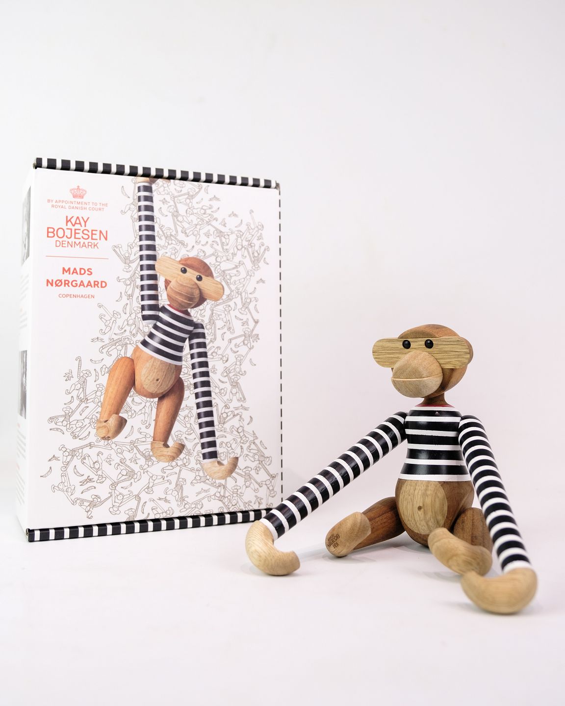 "Lille Abe på Strøget" er en speciel udgave af Kay Bojesens ikoniske abe, udført i teaktræ. Denne version er skabt i samarbejde med den danske designer Mads Nørgaard, kendt for sit arbejde inden for mode og design.