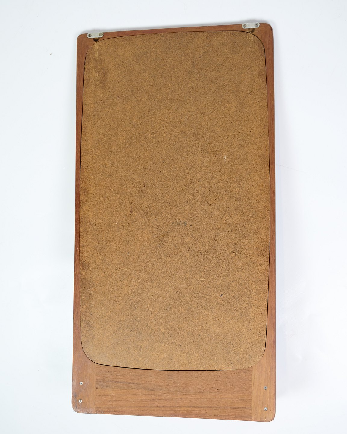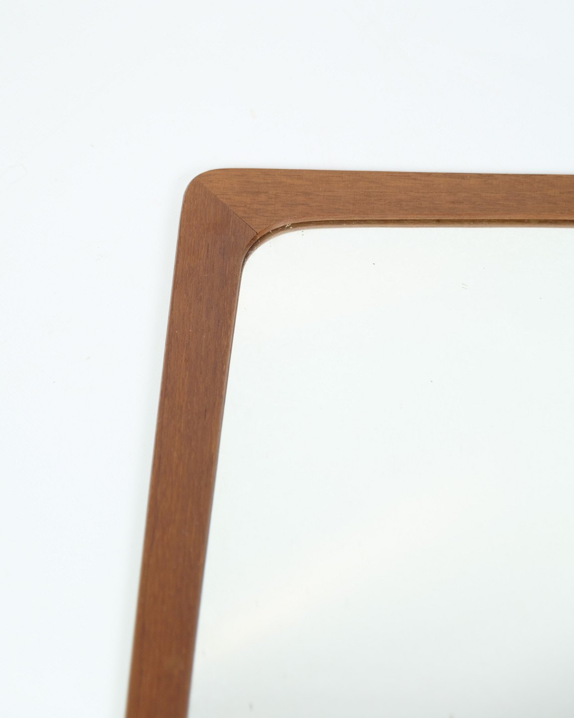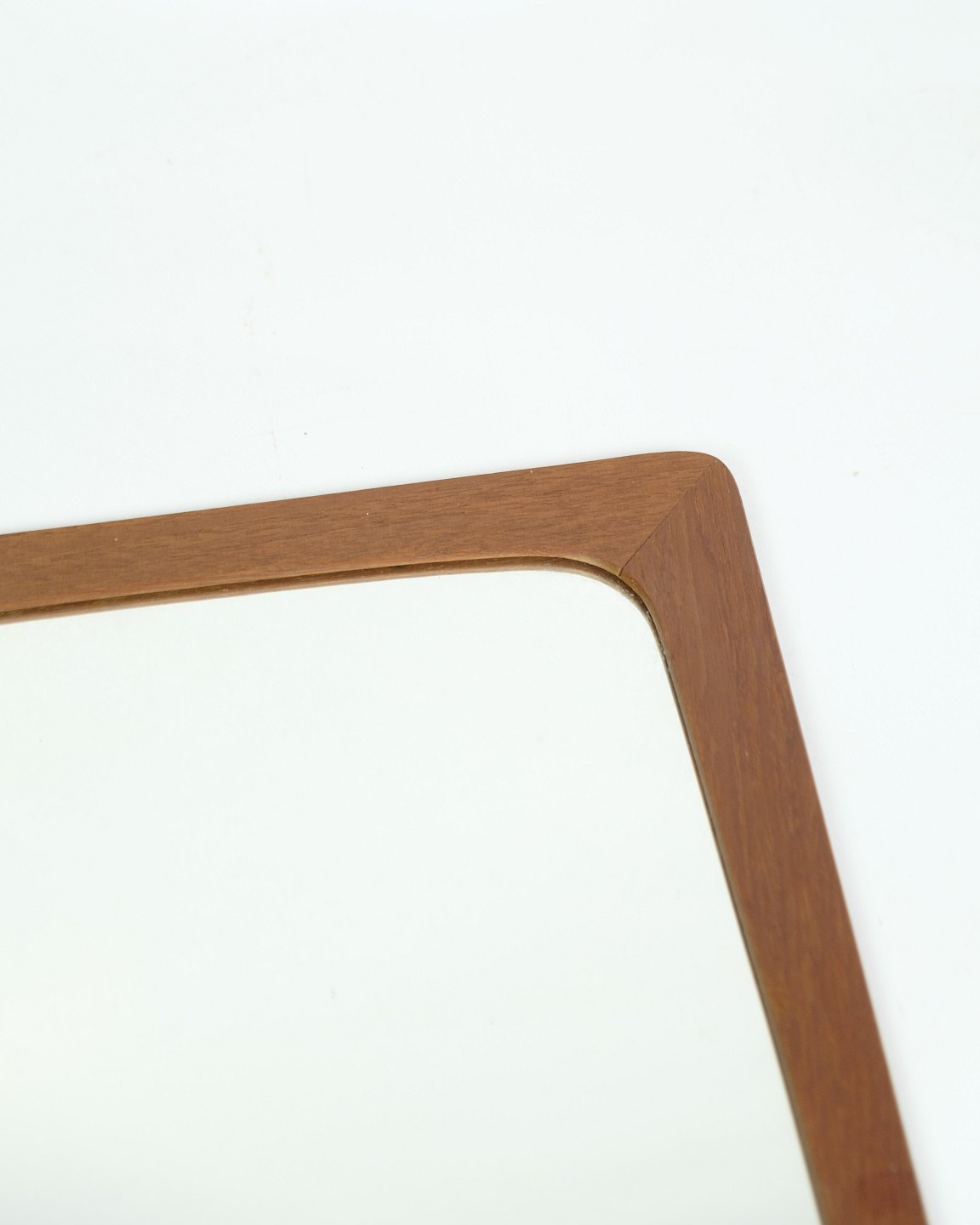 Spejl i teak fra 1960'erne. Rammen er lavet af teaktræ, der giver spejlet en varm og naturlig glød. Med sit enkle og funktionelle design er dette spejl et godt eksempel på dansk møbelhåndværk fra midten af det 20. århundrede.