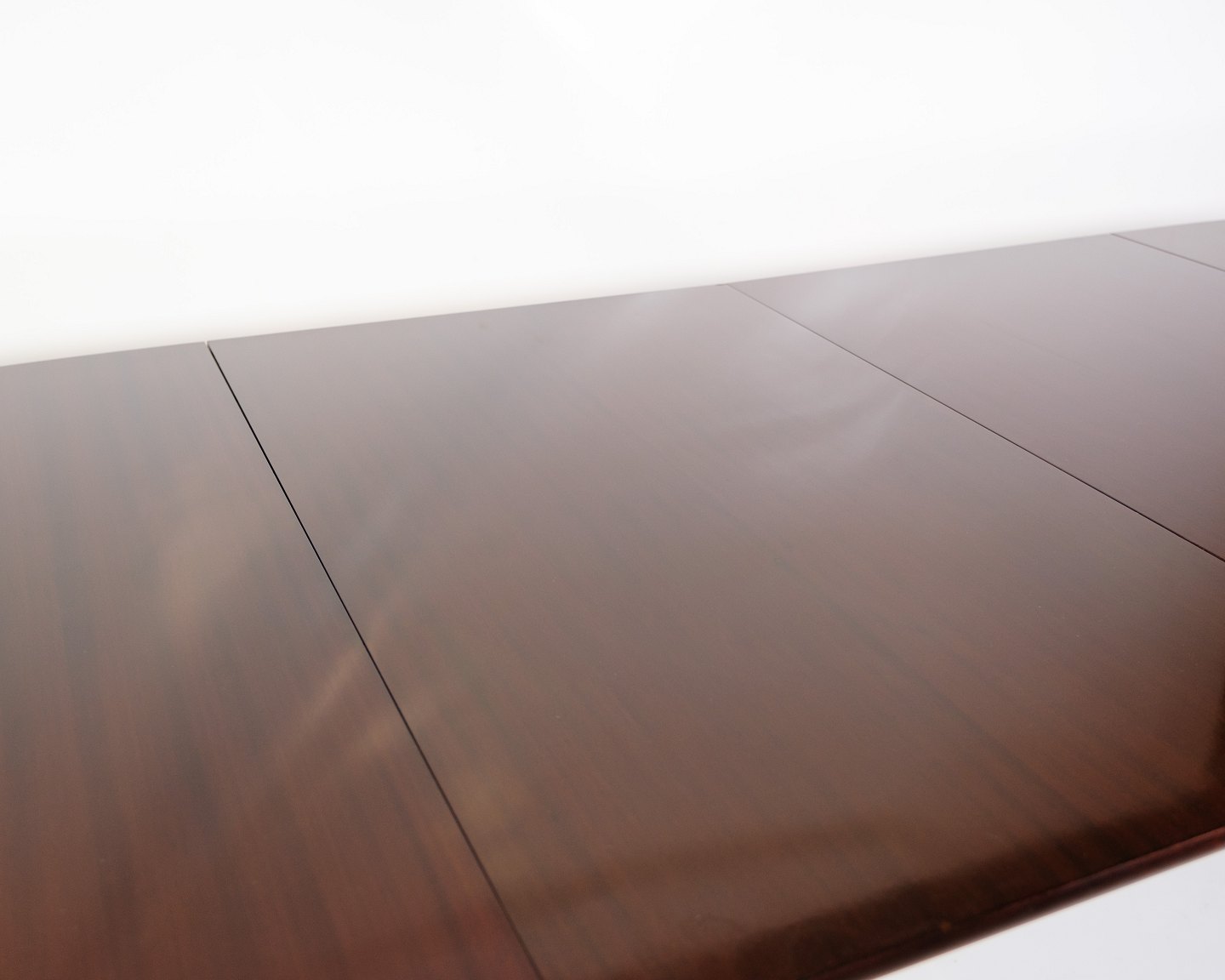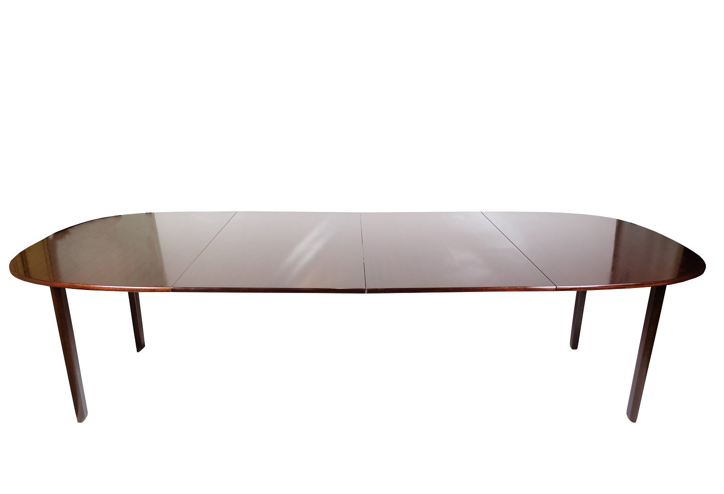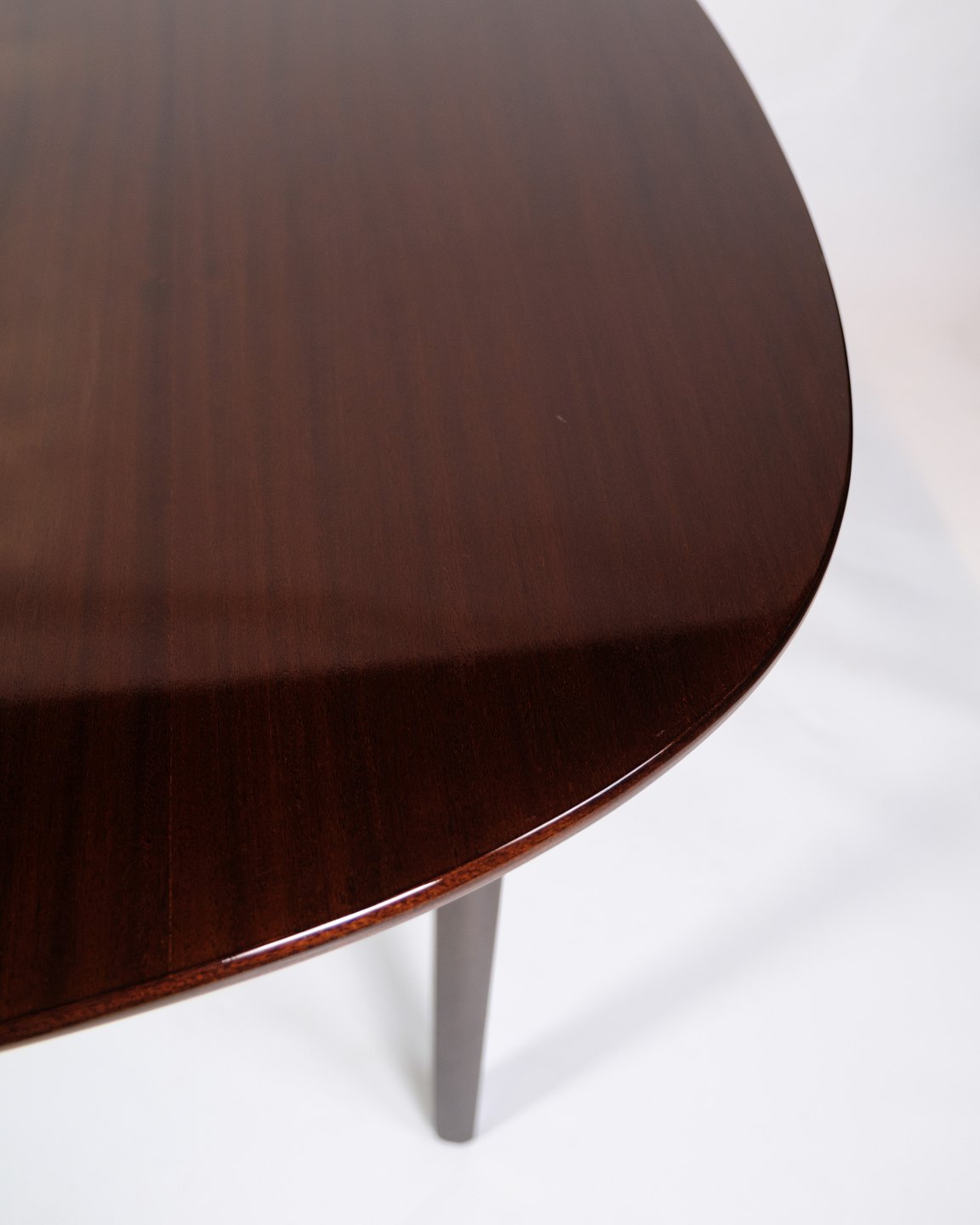 Spisebord i mahogni, designet af Ole Wanscher og produceret af P. Jeppesen i 1960'erne. Bordet er udført i solid mahogni, hvilket giver det en elegant og klassisk fremtoning. Ole Wanscher var kendt for sit raffinerede design og sit fokus på håndværksmæssig kvalitet.