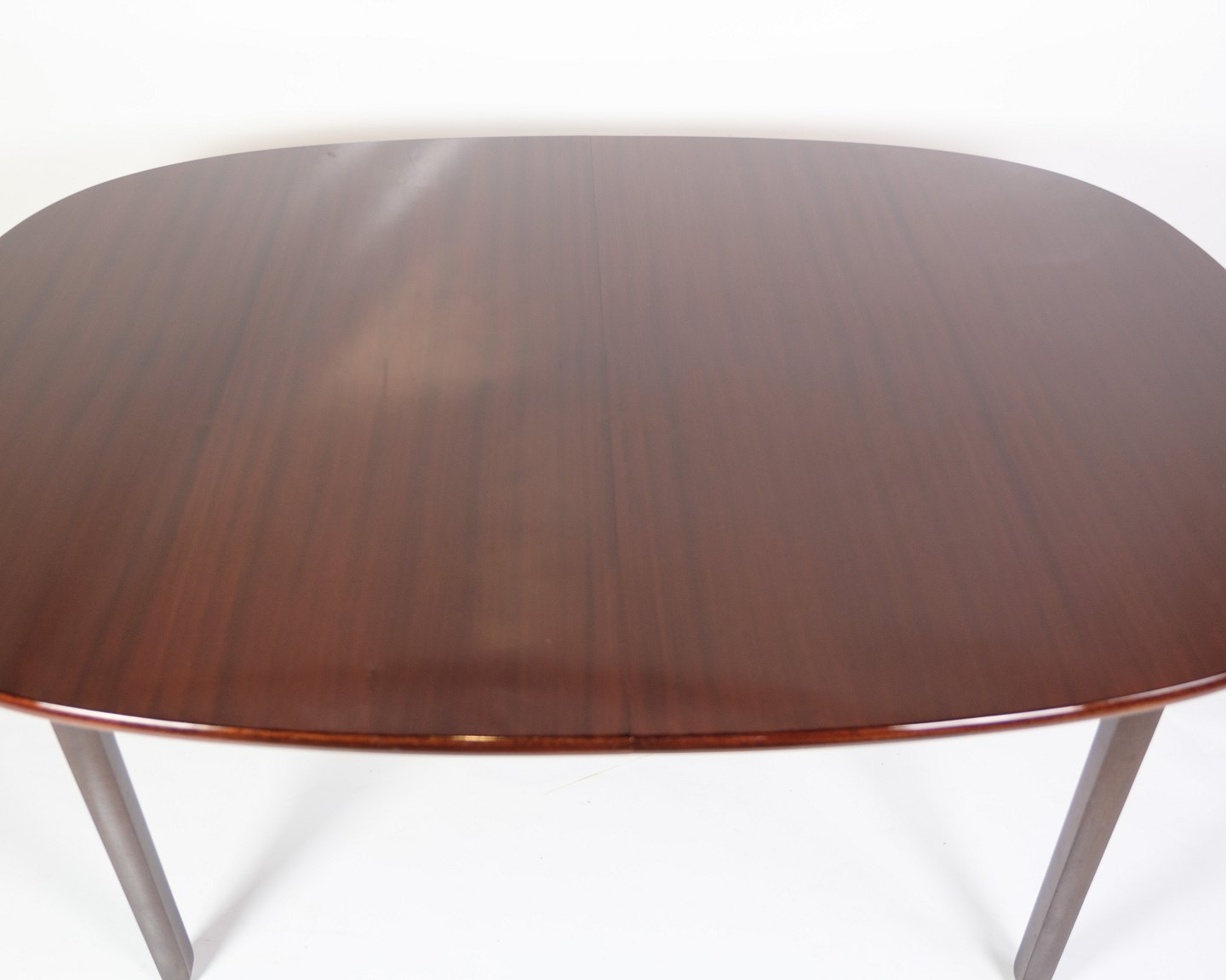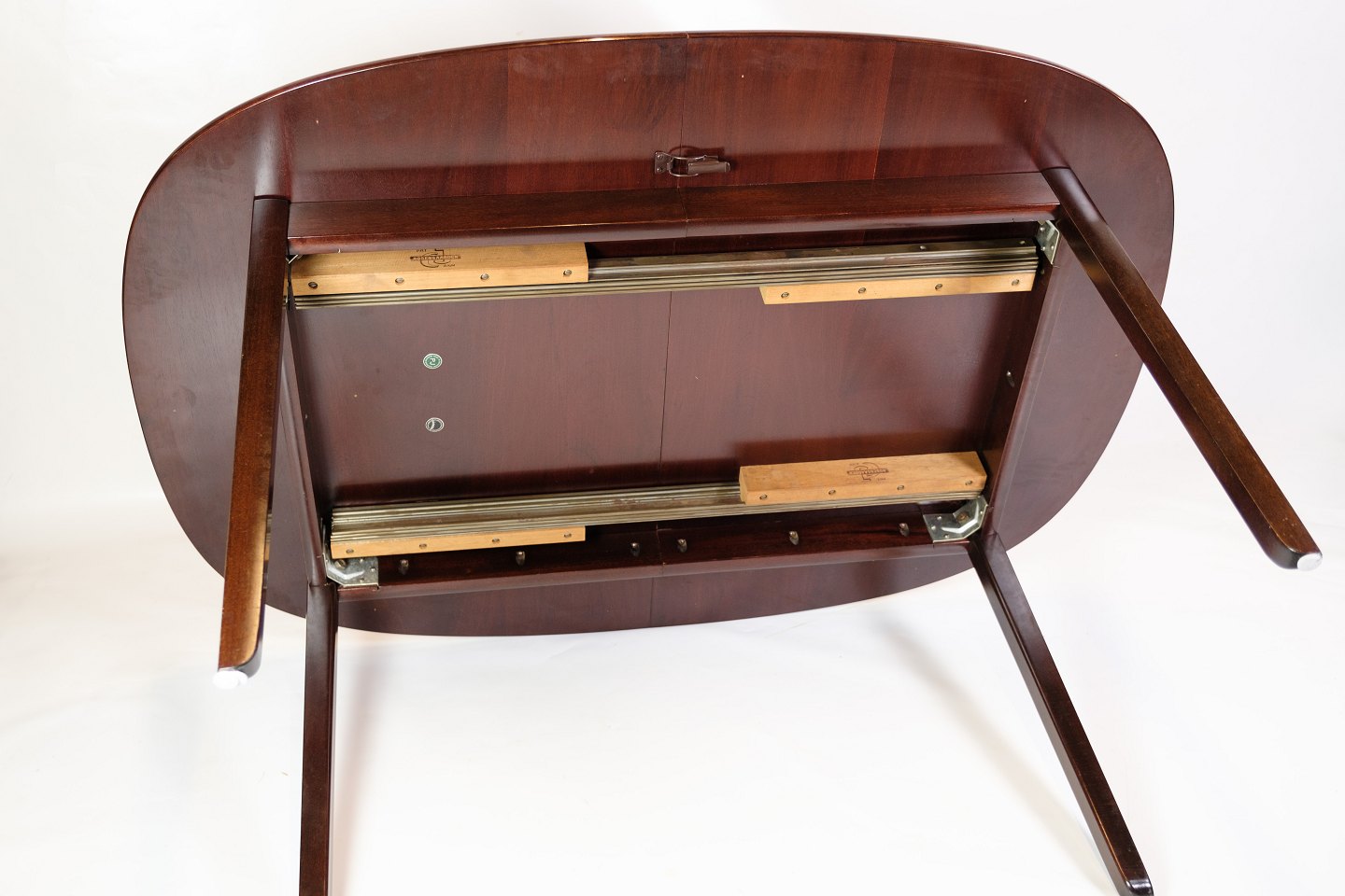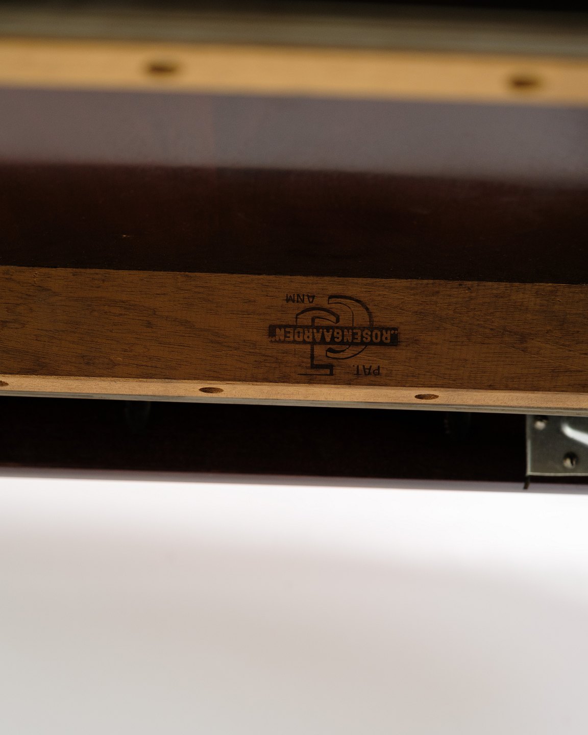 Spisebord i mahogni, designet af Ole Wanscher og produceret af P. Jeppesen i 1960'erne. Bordet er udført i solid mahogni, hvilket giver det en elegant og klassisk fremtoning. Ole Wanscher var kendt for sit raffinerede design og sit fokus på håndværksmæssig kvalitet.