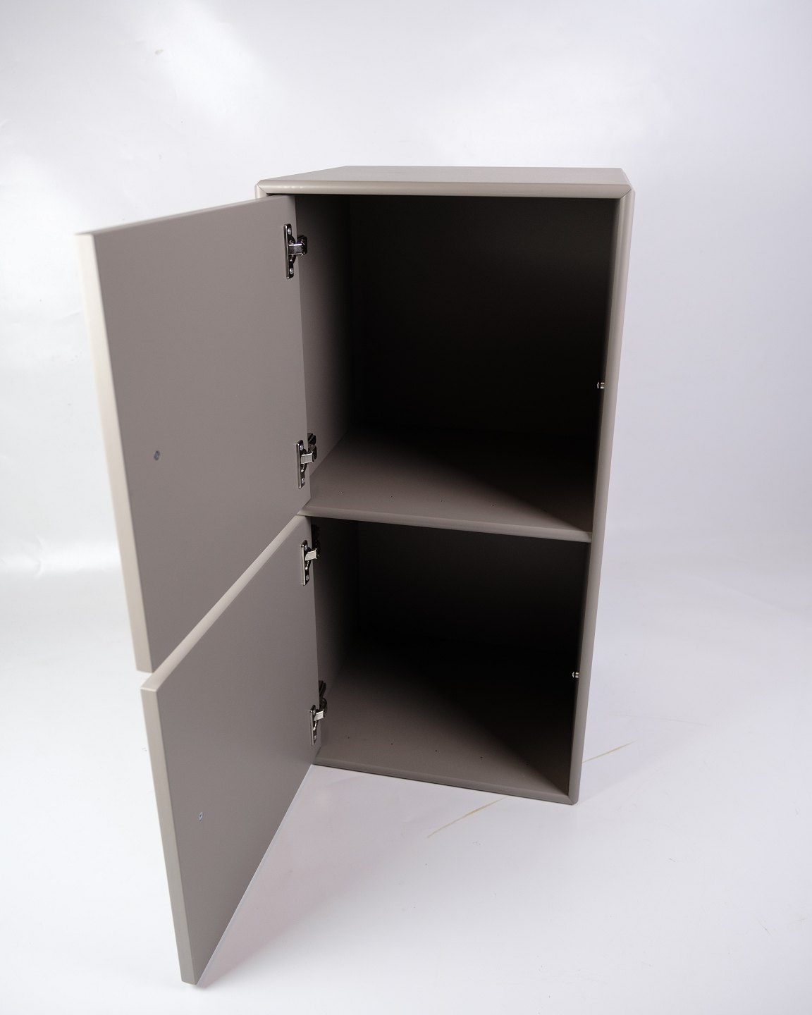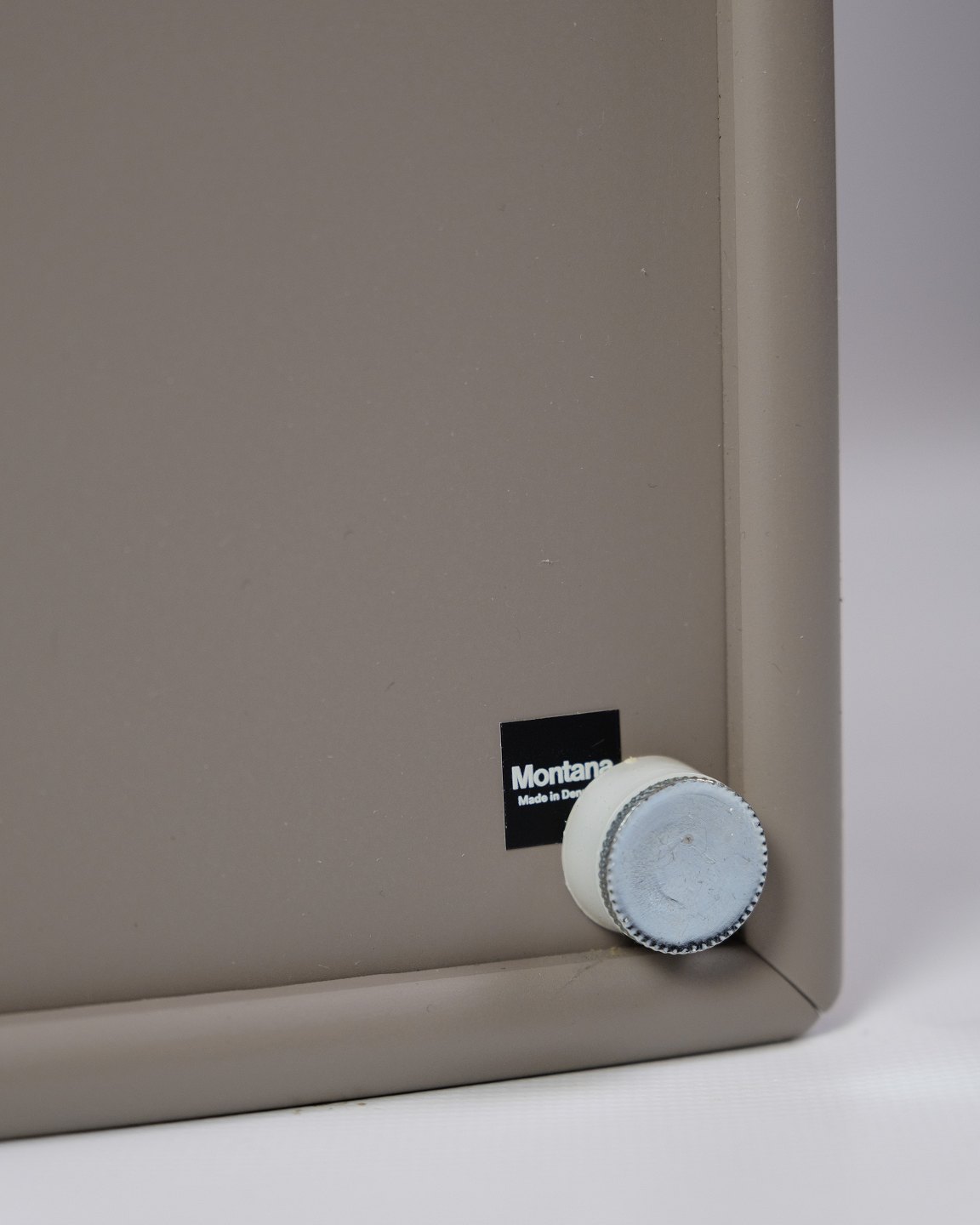 Montana skab, model 1163, designet af Peter J. Lassen og udført i en grå farve. Dette skab er en del af Montanas ikoniske modulopbyggede system, som gør det nemt at tilpasse opbevaringen efter individuelle behov. Model 1163 tilbyder god plads til opbevaring og passer perfekt ind i både hjemmet og kontoret med sit minimalistiske og stilrene udtryk.