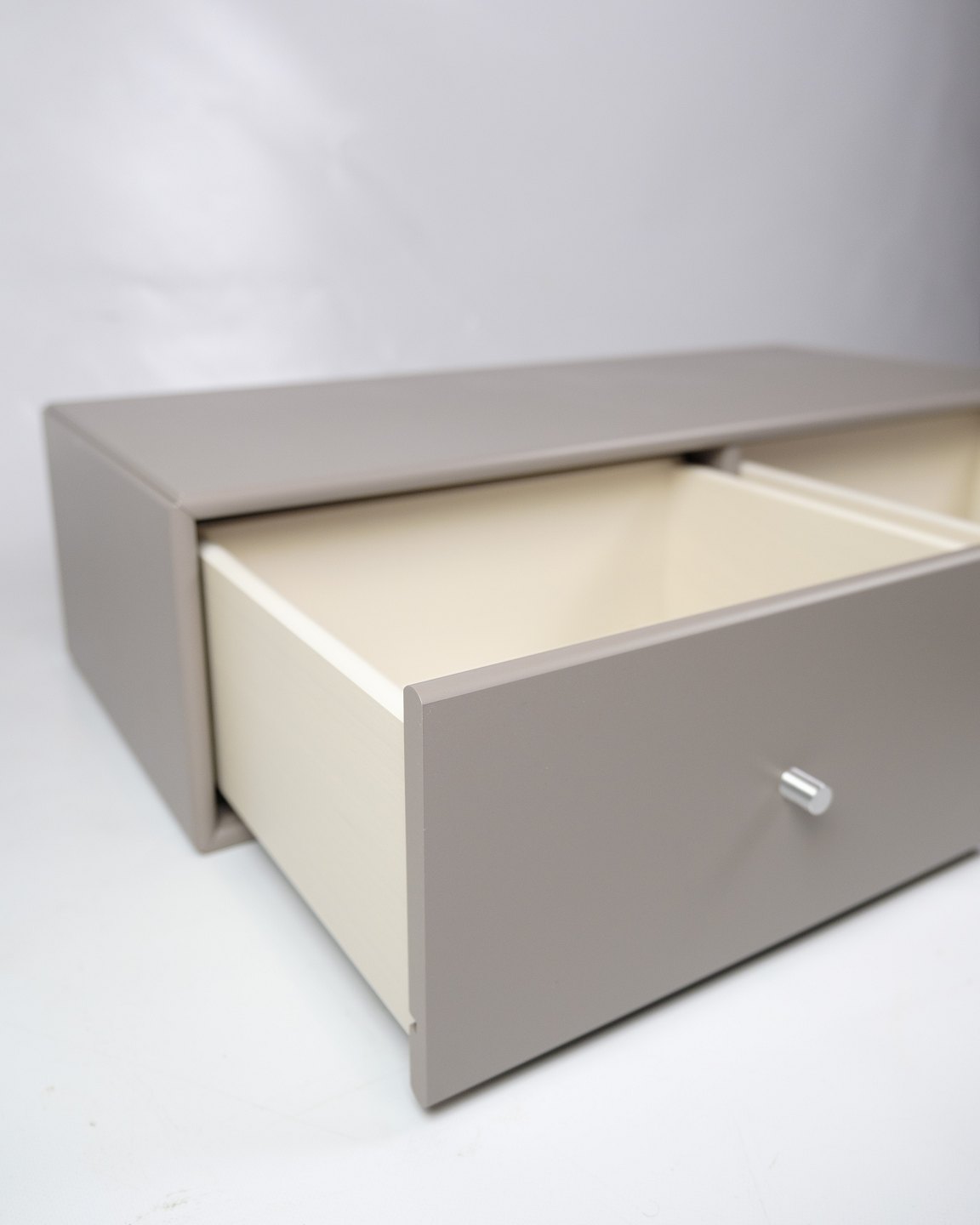 Montana modul, model 7124, designet af Peter J. Lassen og udført i en grå farve. Dette modul er en del af Montanas fleksible opbevaringssystem, der giver mulighed for at skabe individuelle og funktionelle opbevaringsløsninger. Model 7124 kan anvendes alene eller kombineres med andre Montana moduler for at skabe en skræddersyet opbevaringsløsning til både hjem og kontor.
