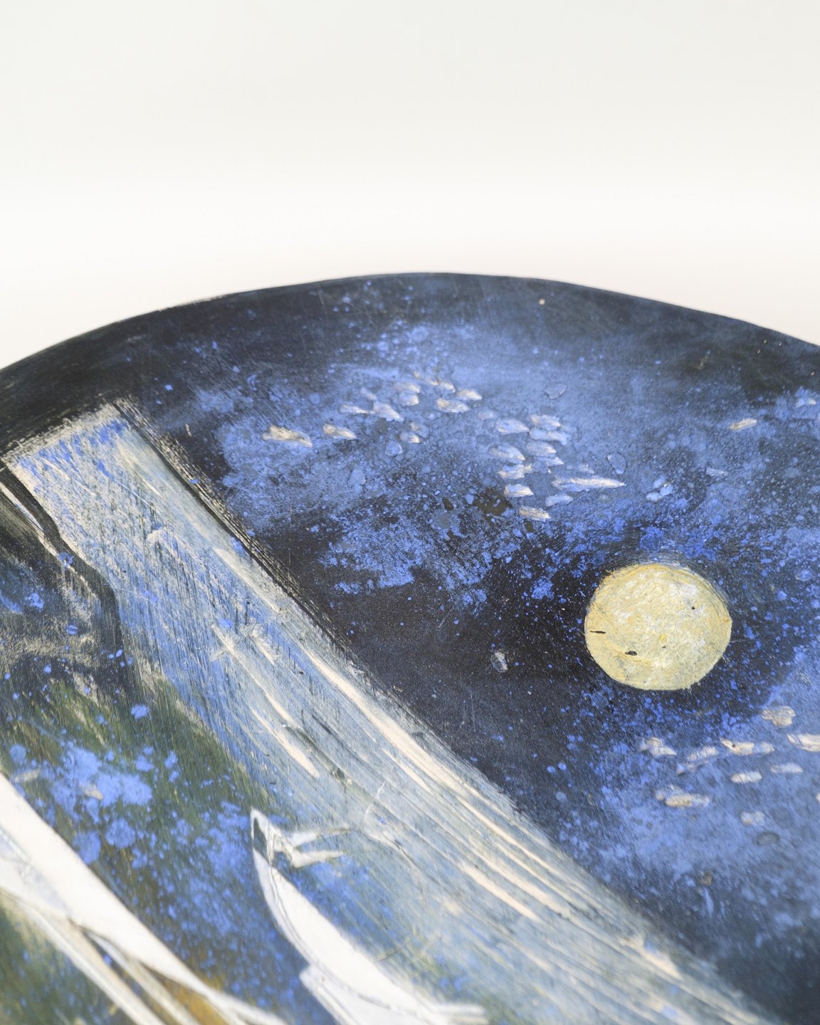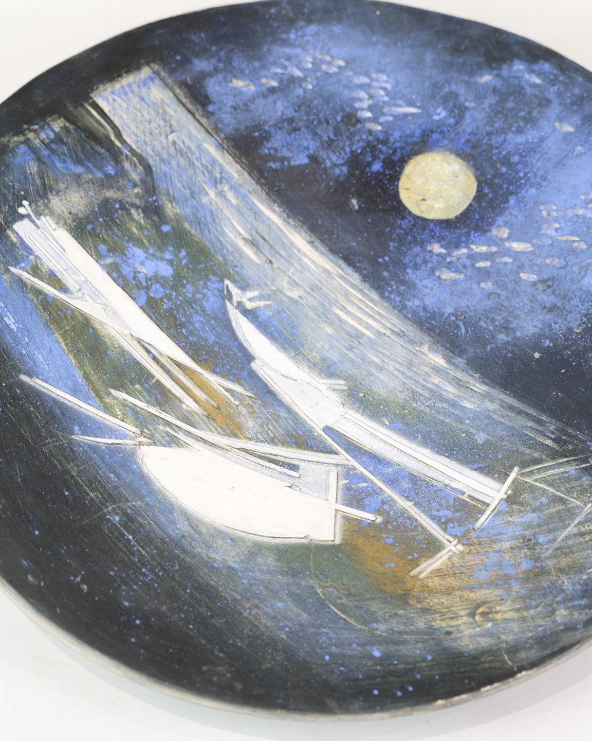 Unika Keramik Fad - Motiv Af Både Som Sejler Under En Måneoplyst Himmel - Jeppe Hagedorn-Olsen (1929–2011)