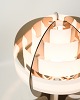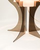 Røget brunt akrylglas og hvide akryllister får denne særligt formede danske bordlampe til at give et helt specielt og fantastisk lys.