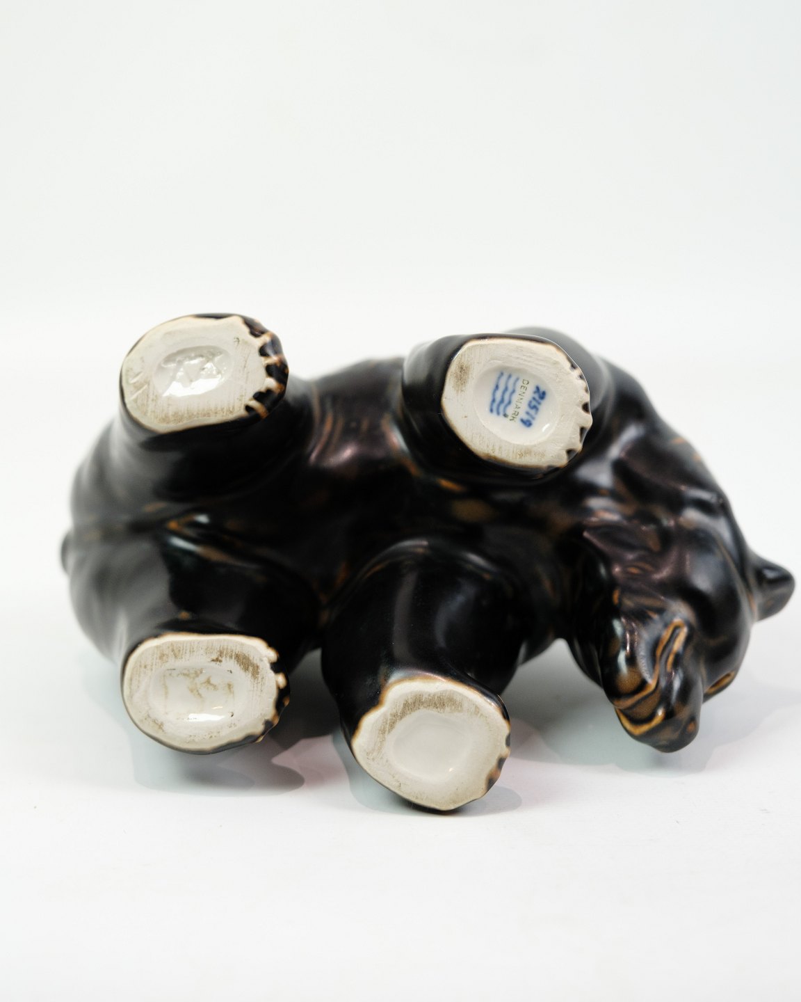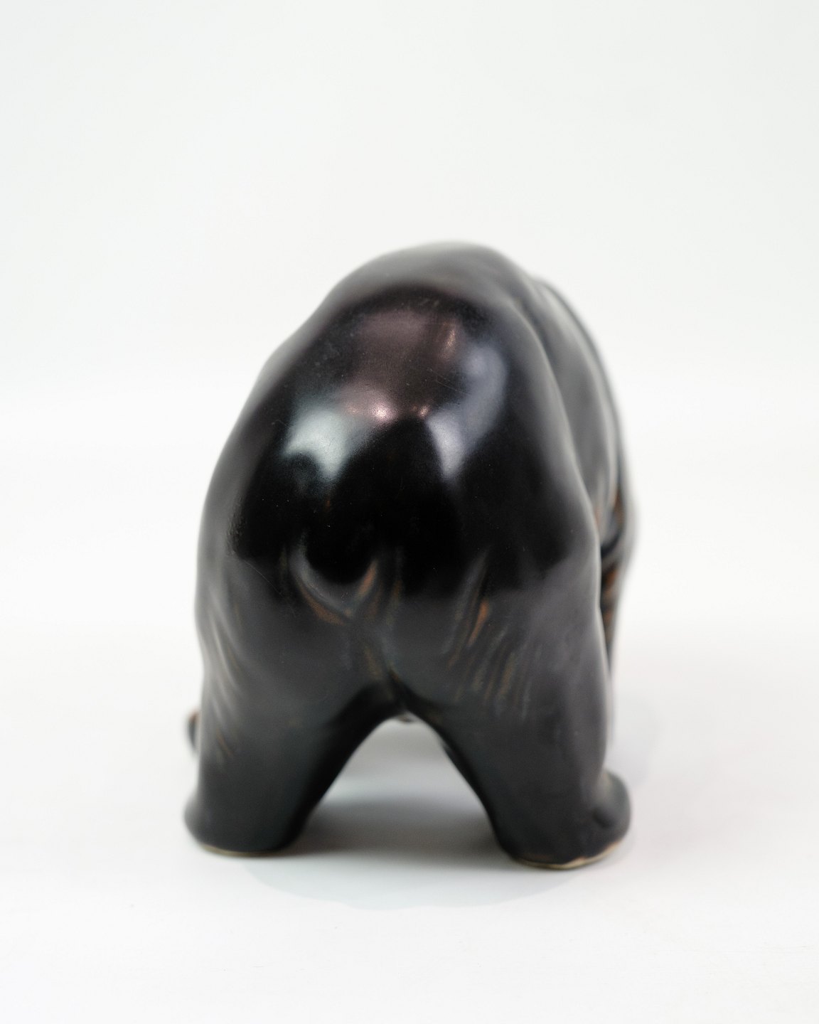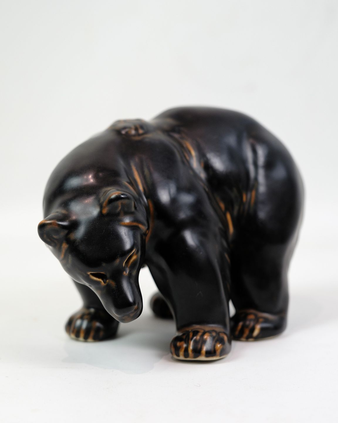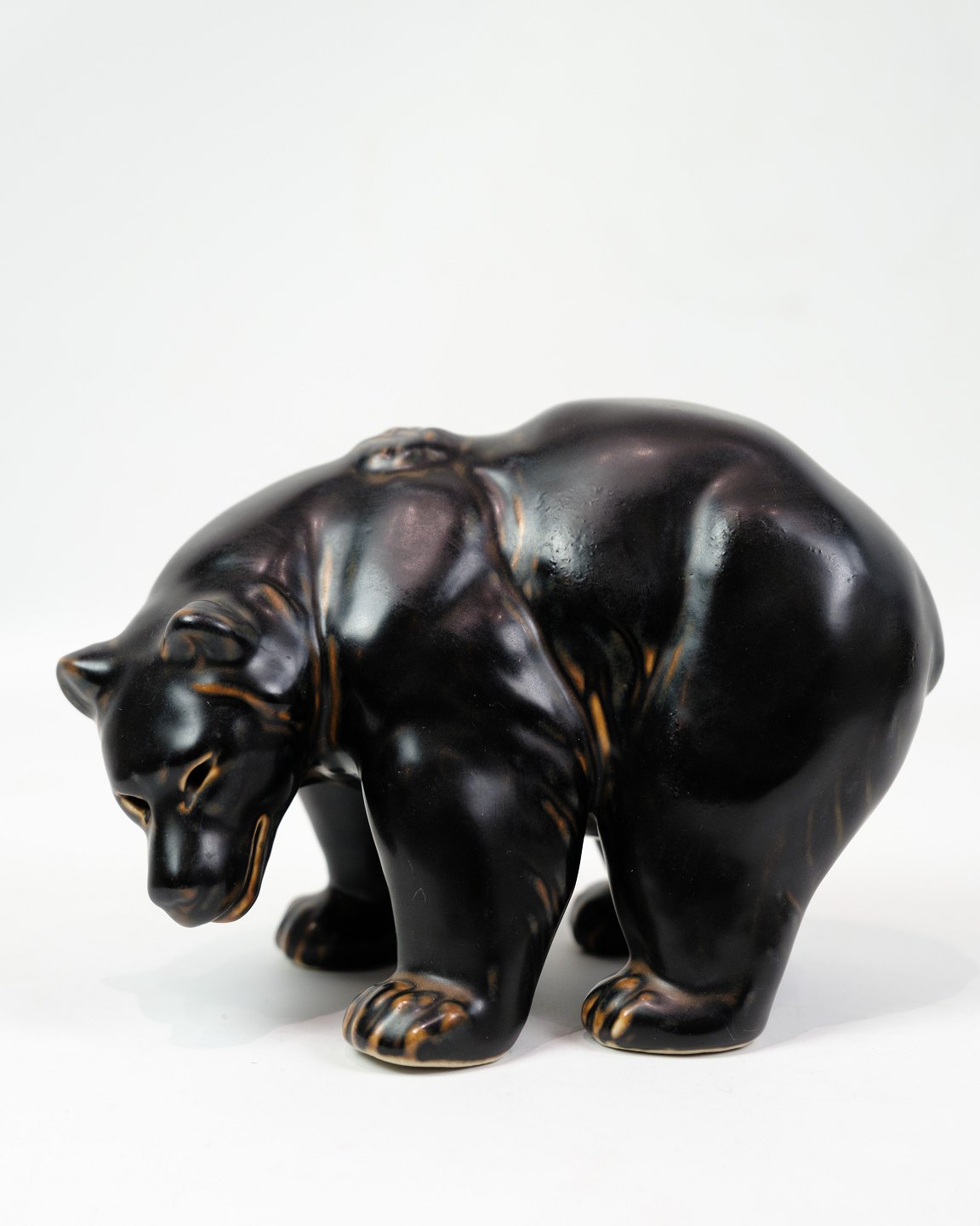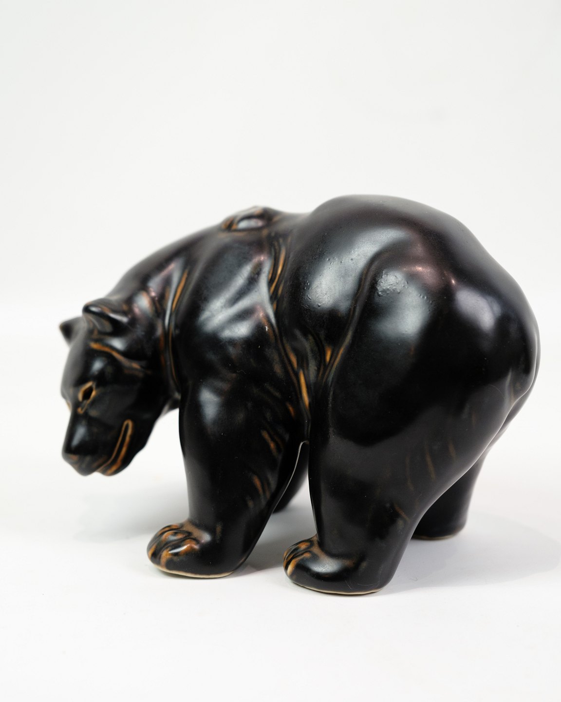Denne flotte stentøjsfigur, model 21519/237, forestiller en stående bjørn designet af Knud Kyhn for Royal Copenhagen. Figuren er i 1. sortering og måler ca. 15 cm i højden, 12,5 cm i bredden og 22 cm i dybden.