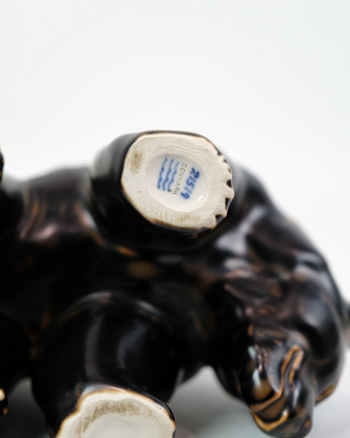 Knud Kyhn (1880-1969) er kendt for sine dyrefigurer i stentøj, især de populære bjørne, og han arbejdede i flere perioder for Den Kongelige Porcelænsfabrik fra 1903 til 1968.