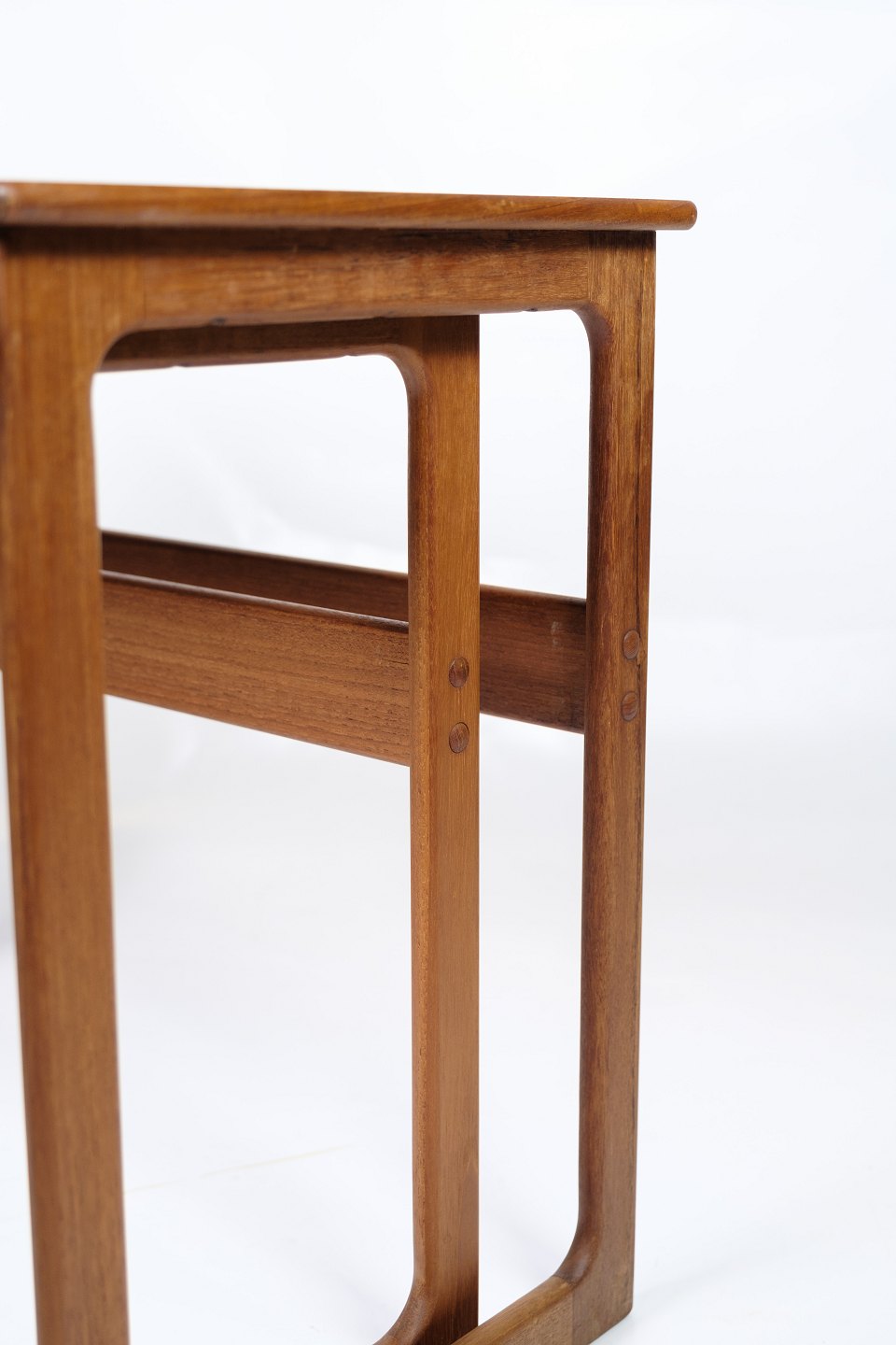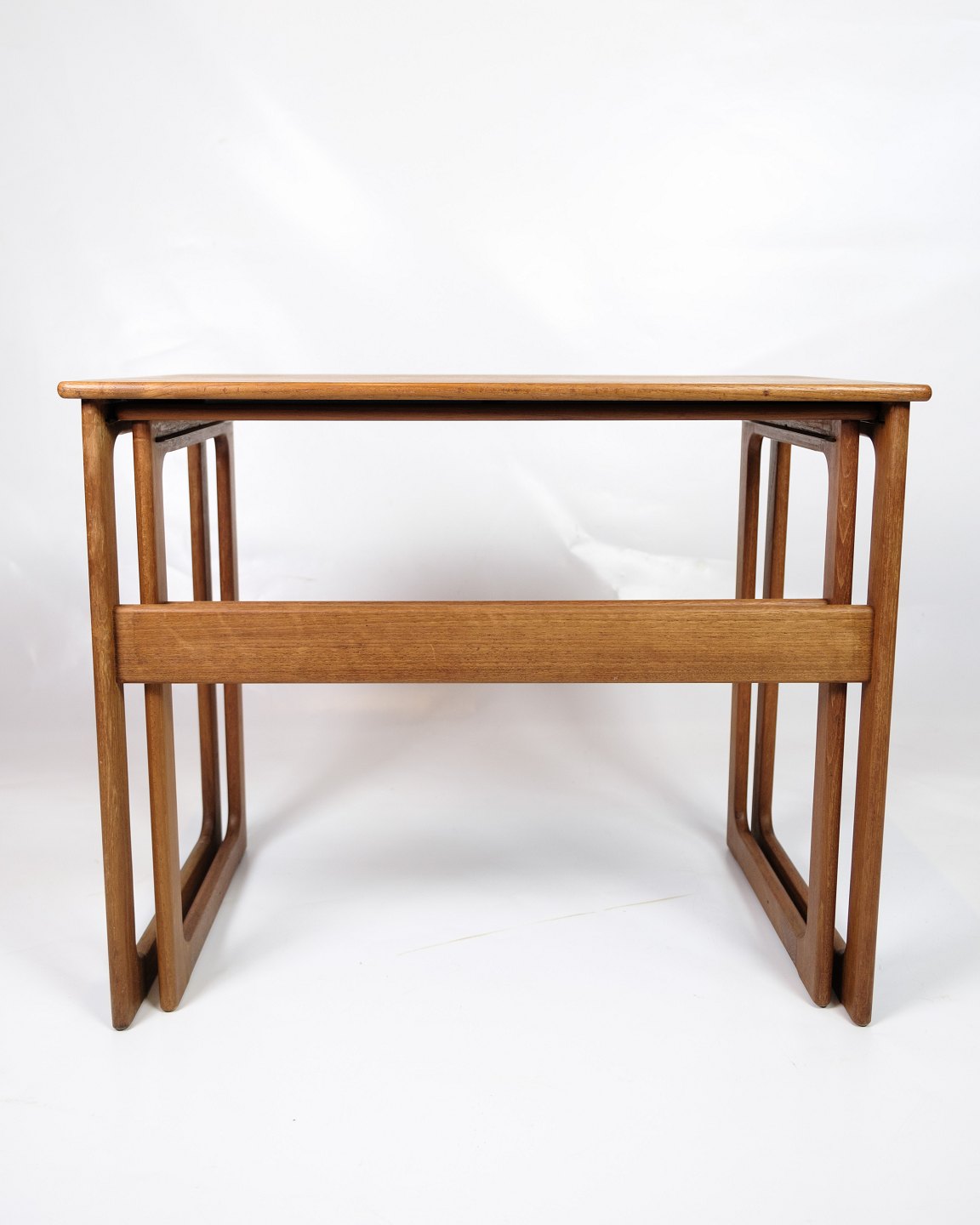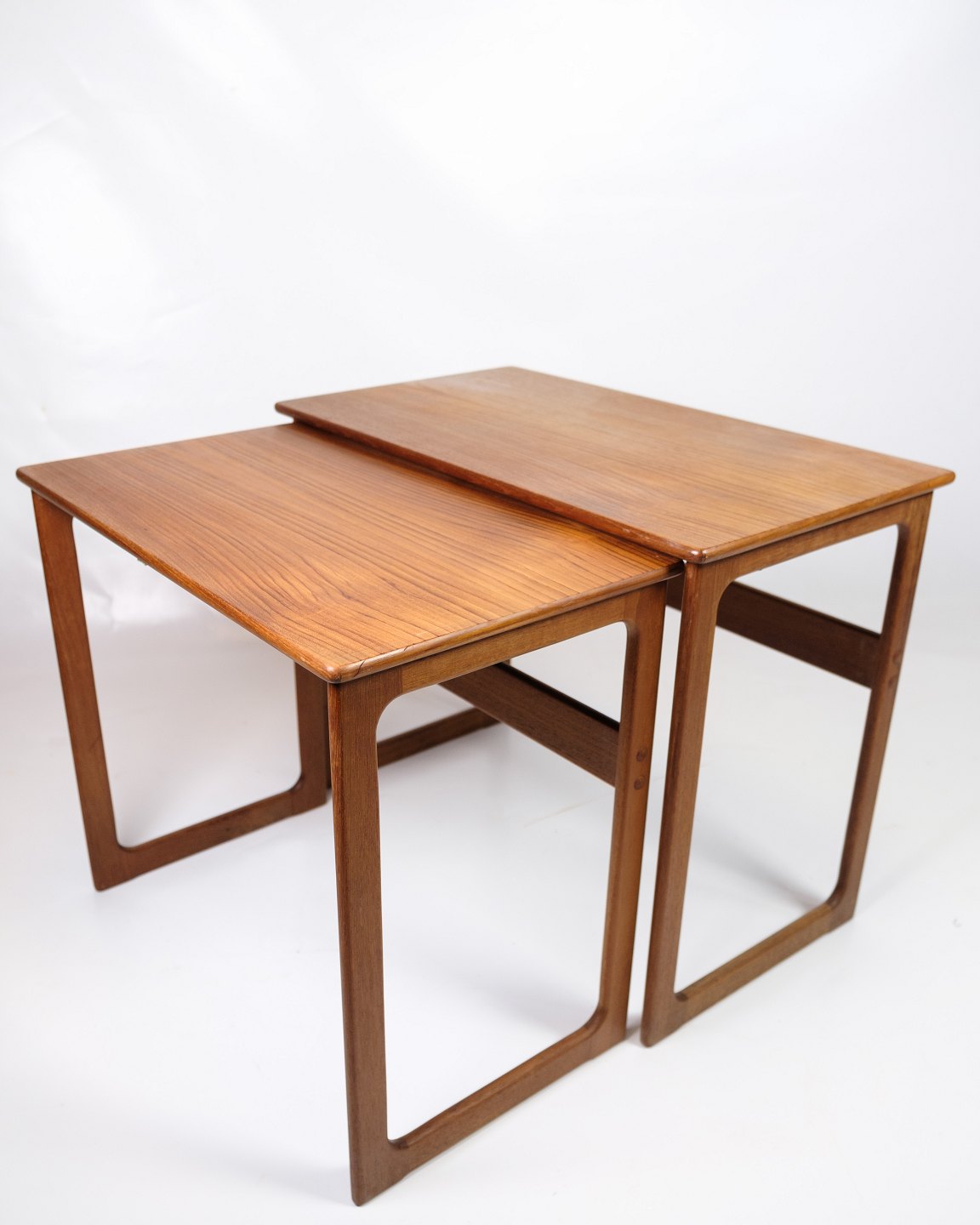 Set of 2 nesting tables, model 219, made of teak and designed by Johannes Andersen & Illum Wikkelsø, manufactured by CFC Silkeborg in the 1960s. The tables are characterized by their simple and functional design with beautiful details, such as the slightly rounded edges and slender legs, which are typical of Danish furniture from the period.