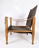 SolgtEt sæt safari-lænestole designet af Kaare Klint og fremstillet af Rud. Rasmussen. Stolene er udført i asketræ med sæde og ryg i brunt kanvas samt armlæn i kernelæder. Safari-stolene er kendt for deres enkle og funktionelle design, hvor fleksible materialer og aftagelige elementer gør dem både lette og praktiske.