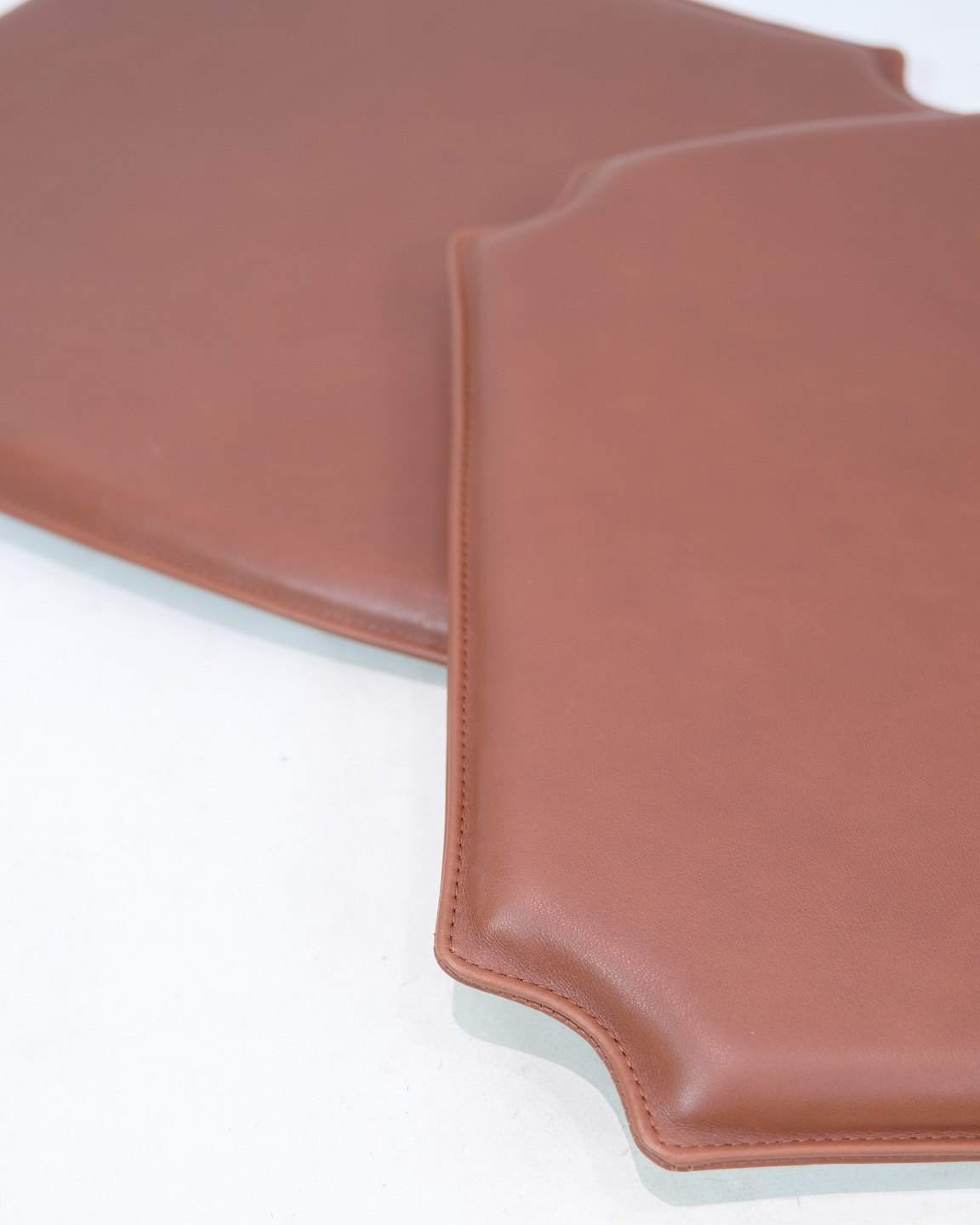 Sæt af 2 hynder i cognac læder, tilpasset efter Hans J. Wegner´s CH24 Y-stol. Hynderne øger komfort og beskytter sædet på stolen.