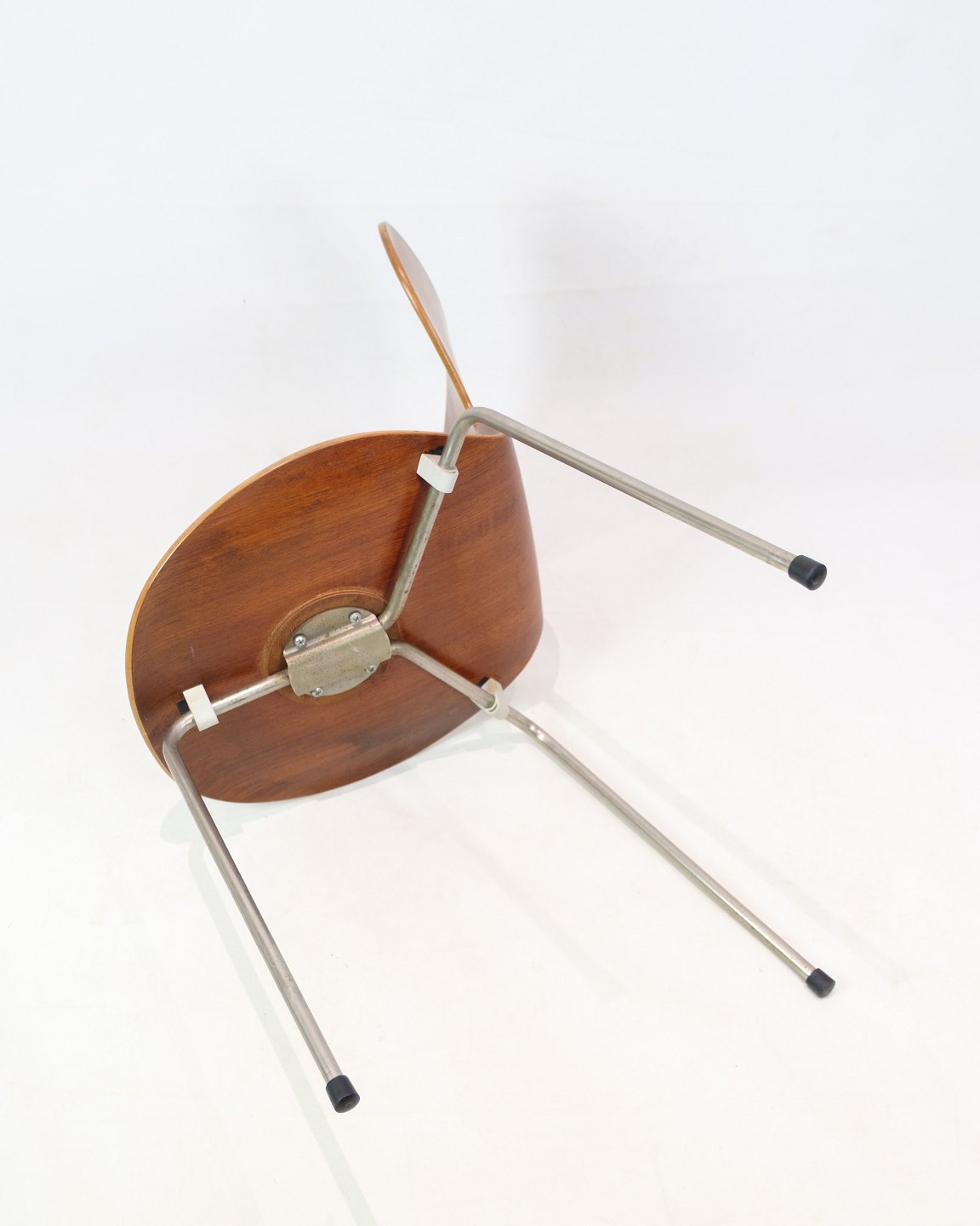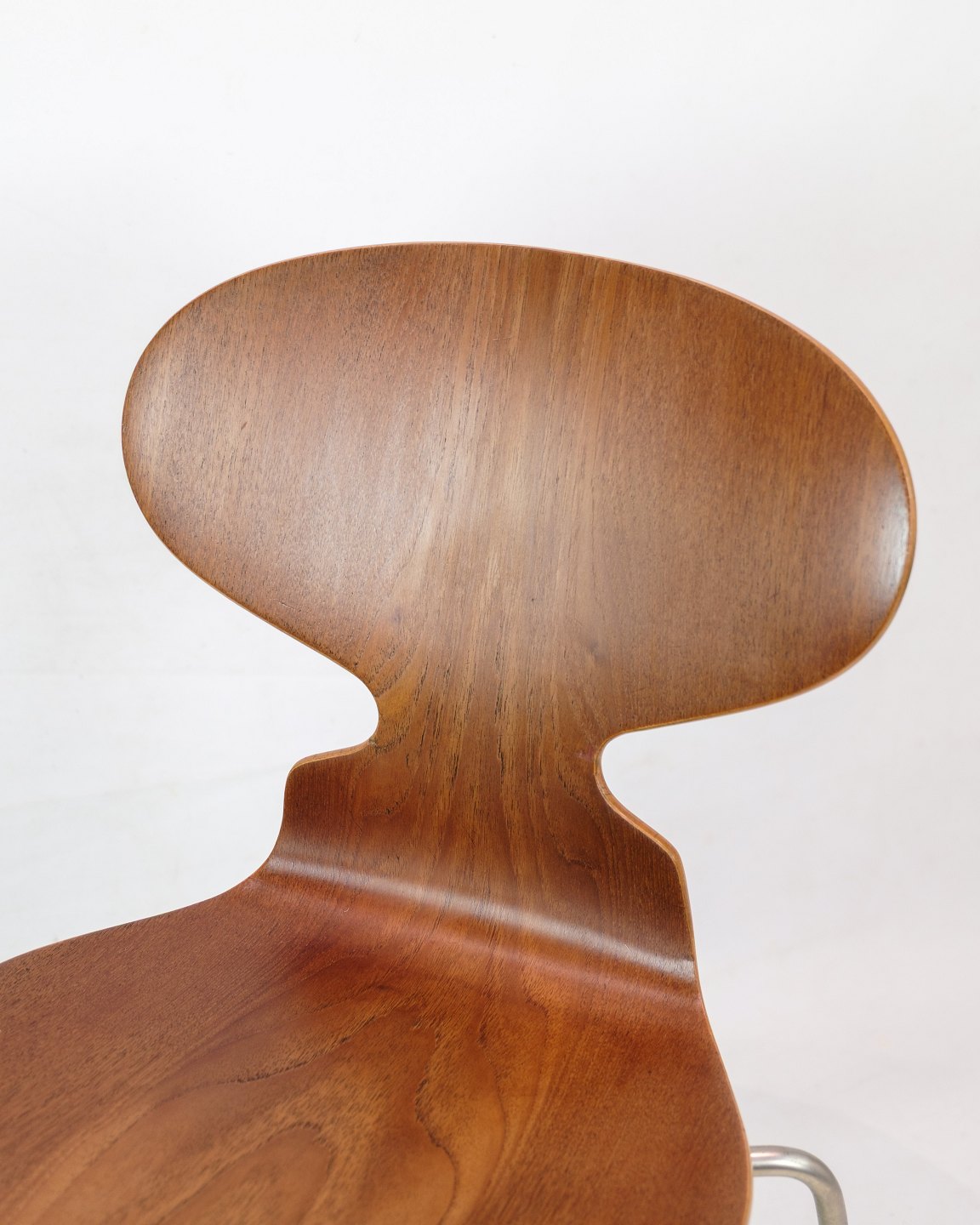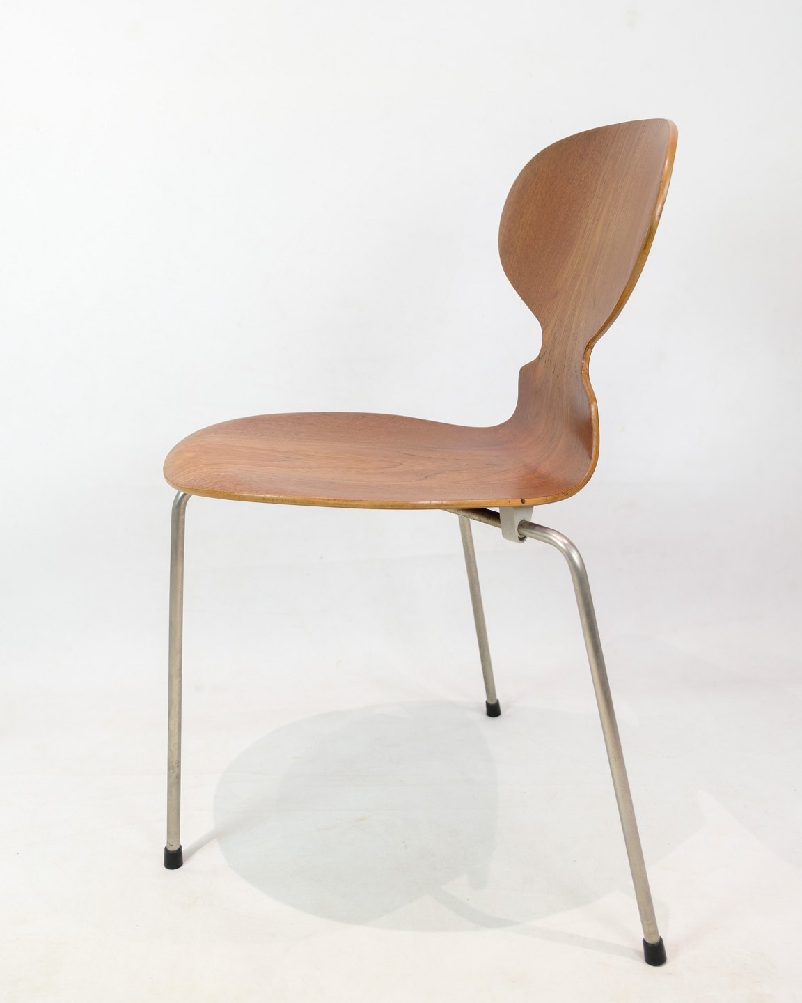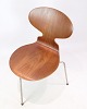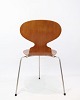 Myrestolen, model 3100, designet af Arne Jacobsen i 1952 og produceret af Fritz Hansen. Stolen er lavet i teak med et trebenet chrome stel. Stolen er en tidlig model fra 1950erne og står i meget pæn stand.