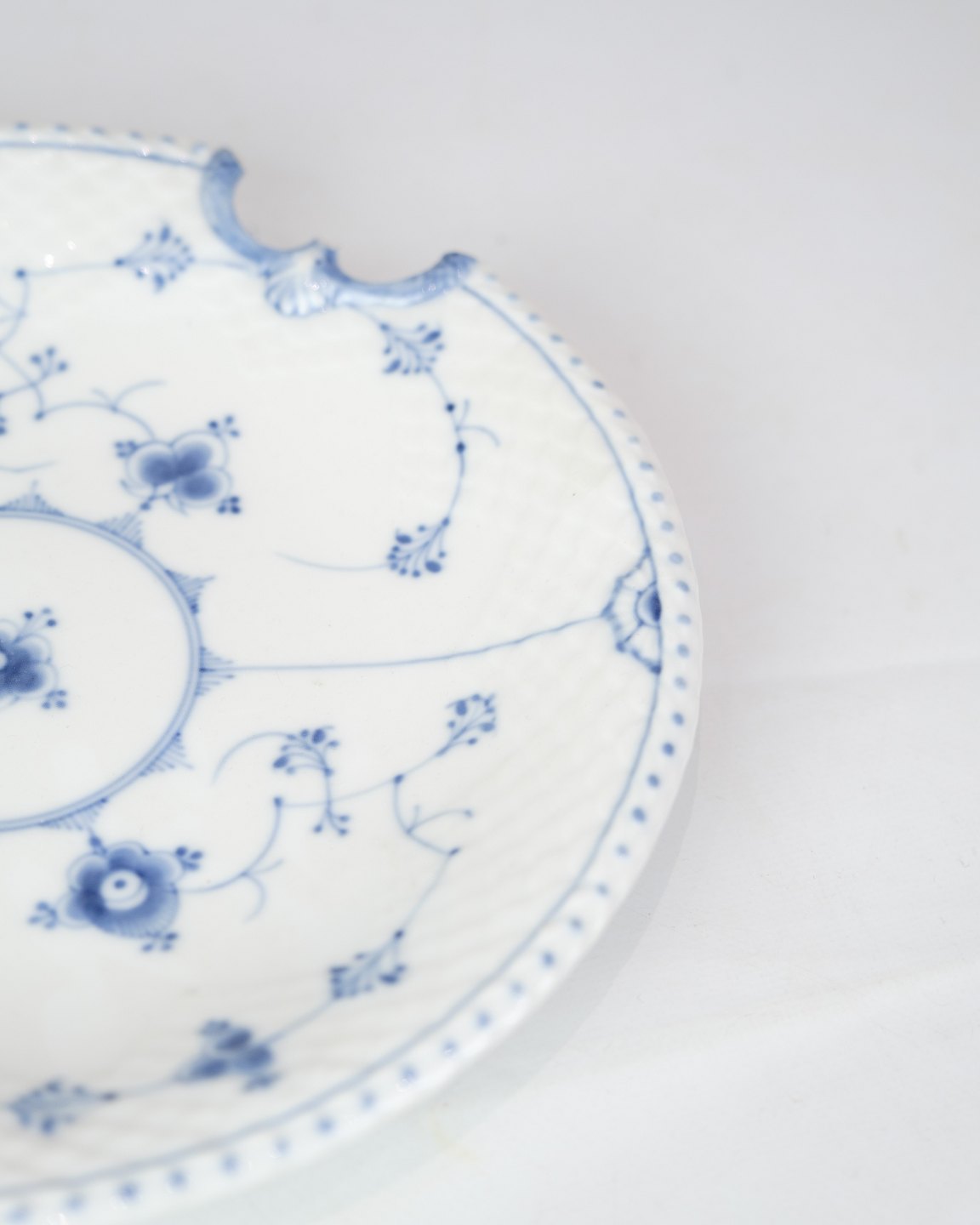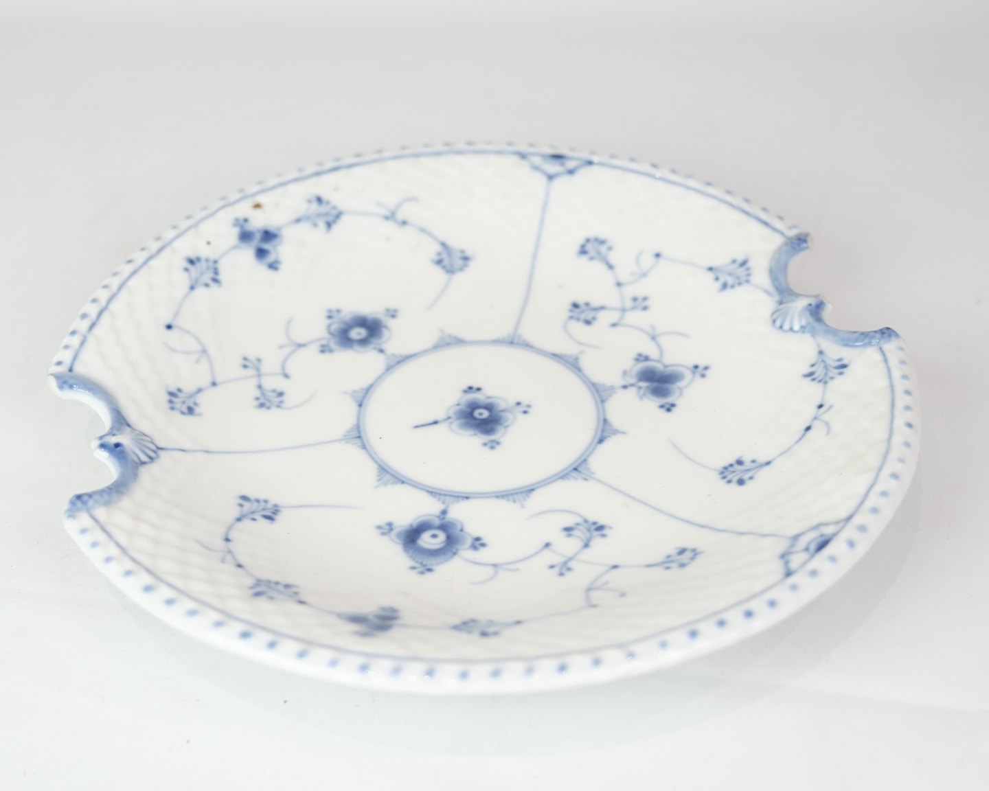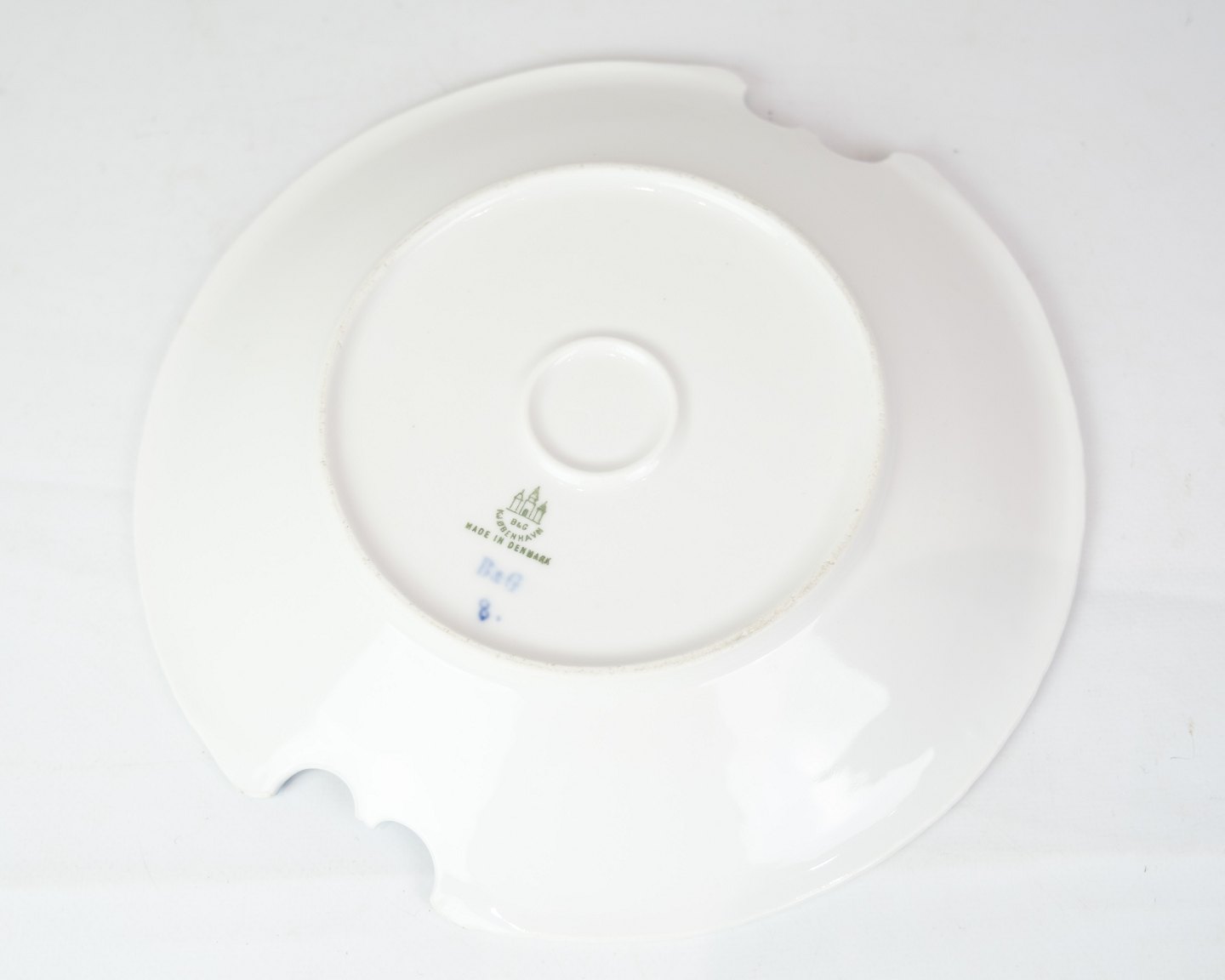 Specielt rundt fad fremstillet af B&G Blåmalet musselmalet fad med stempel nr. 8 på bagsiden af fadet.