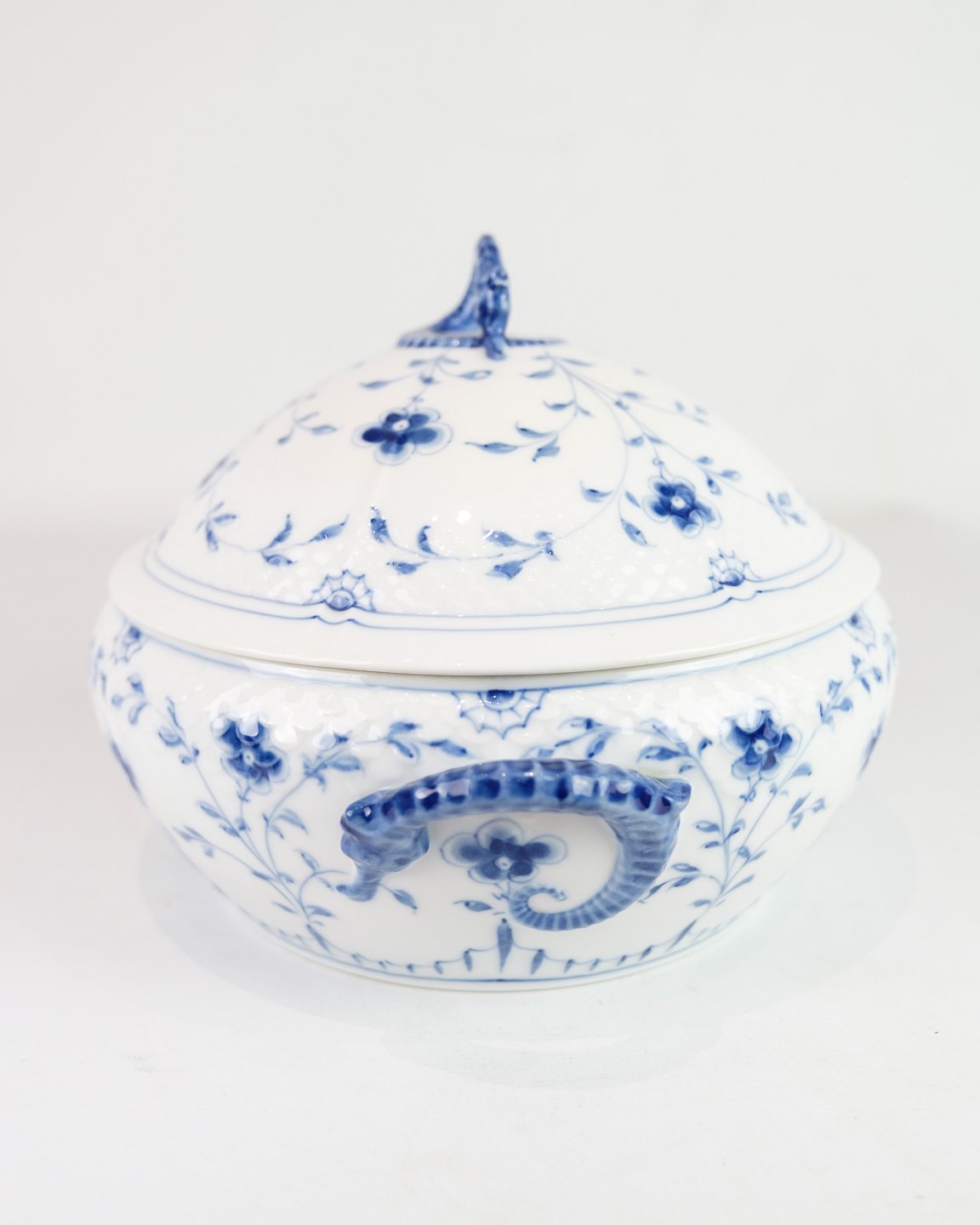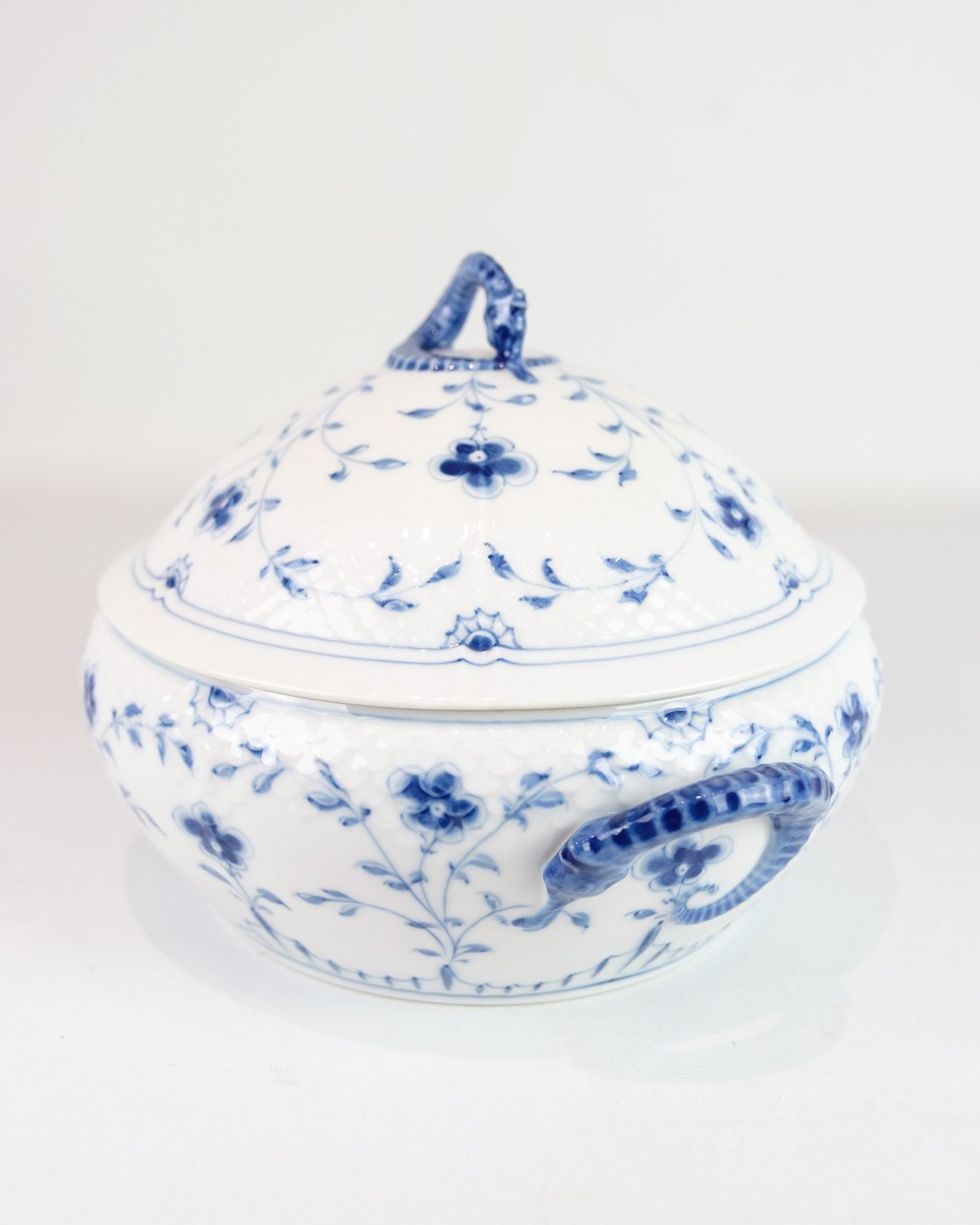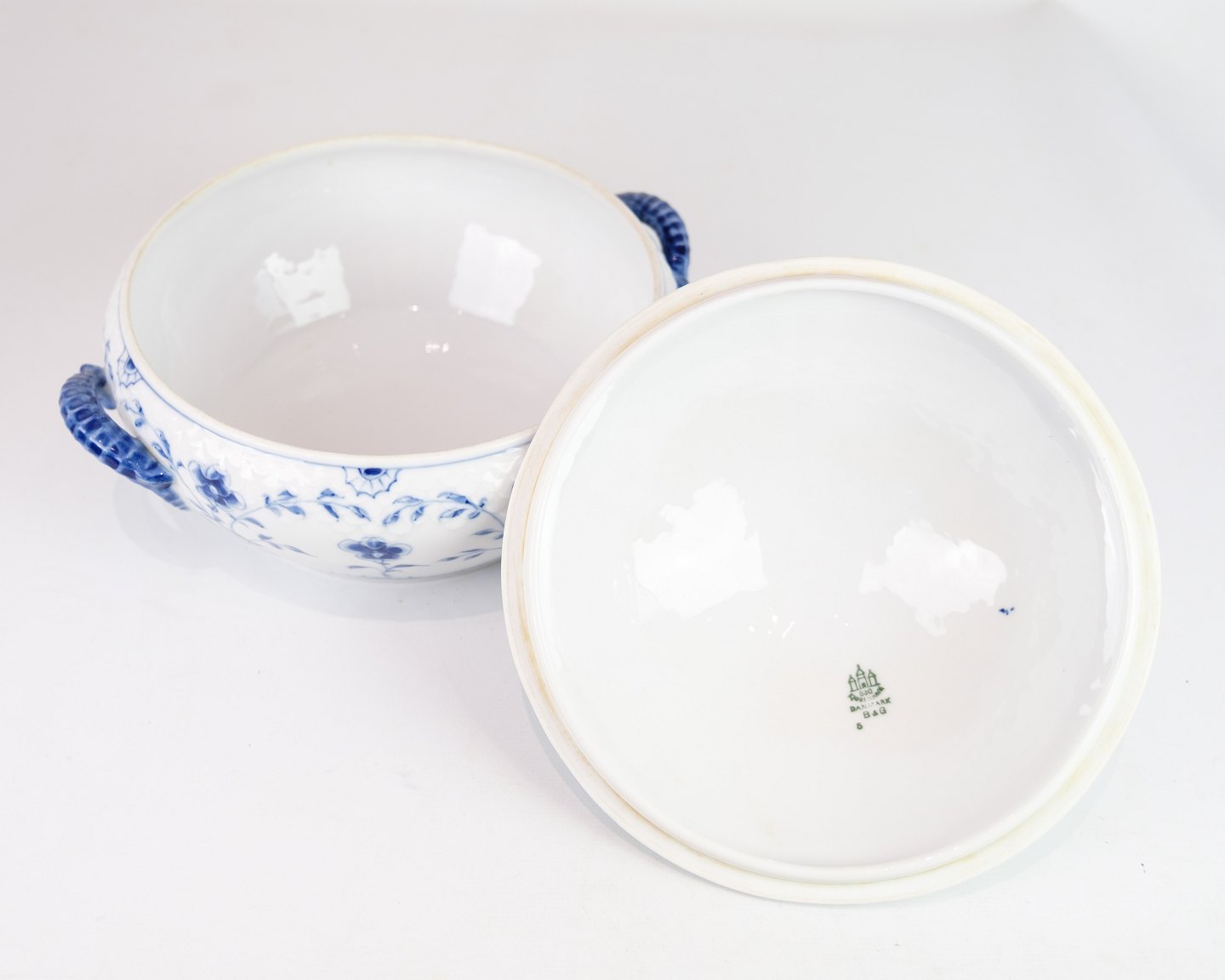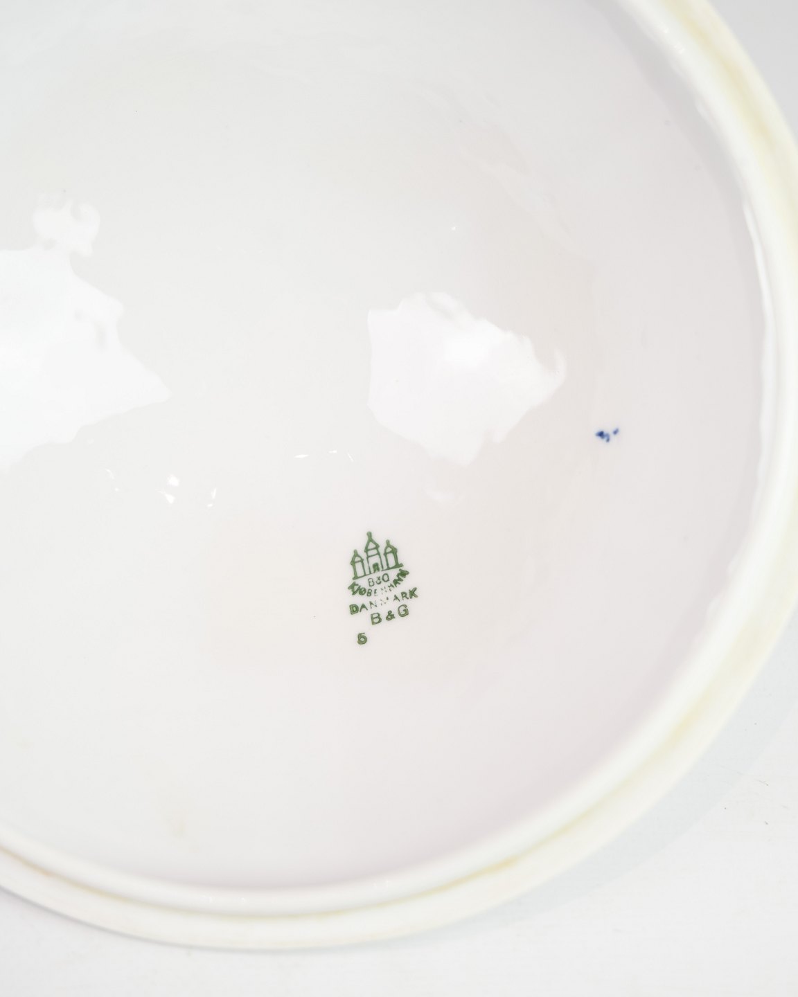 Terrin nr. 5 fra Bing & Grøndahl i klassisk musselmalet porcelæn. Dekoreret med håndmalet sommerfugl mønster og fine detaljer.