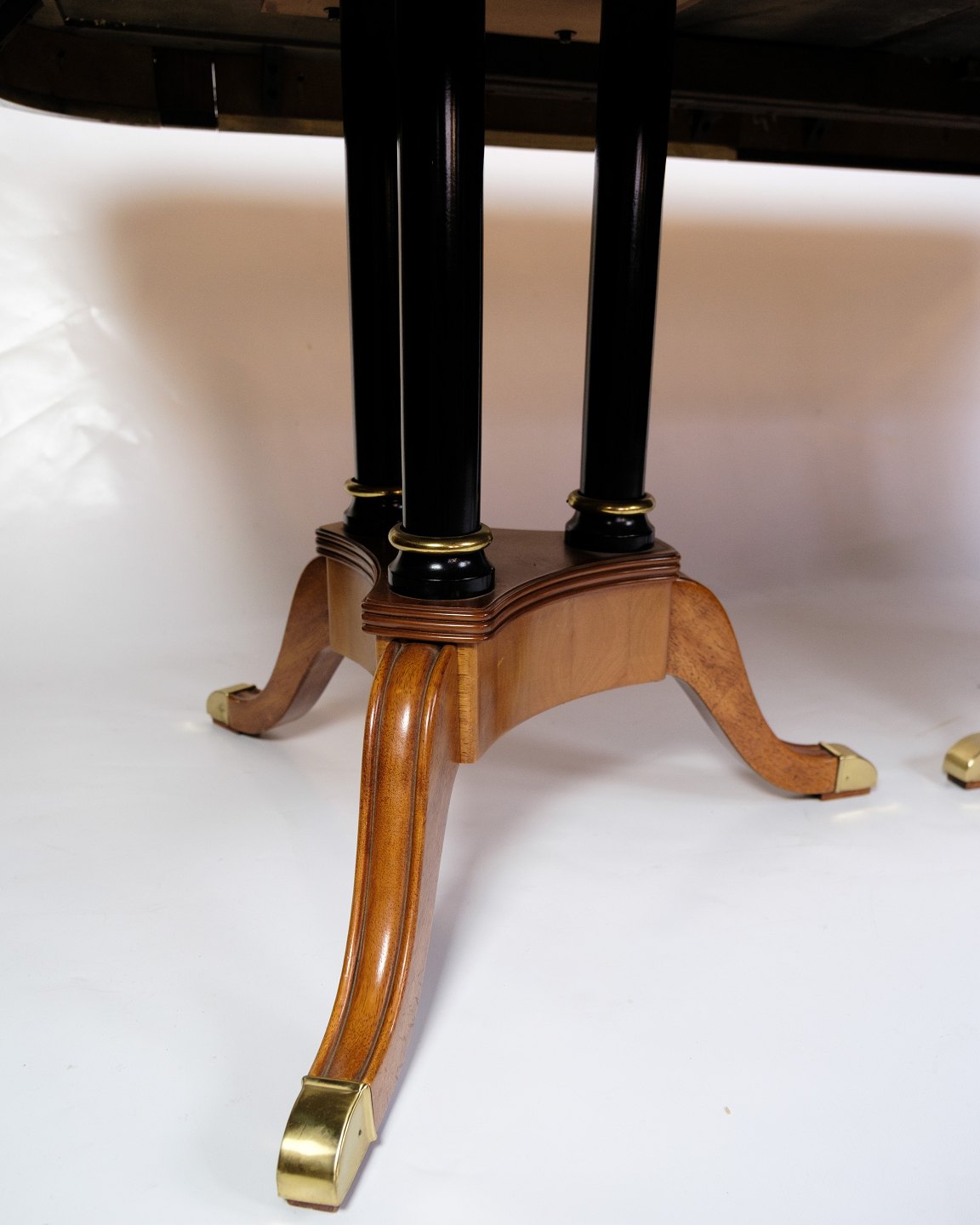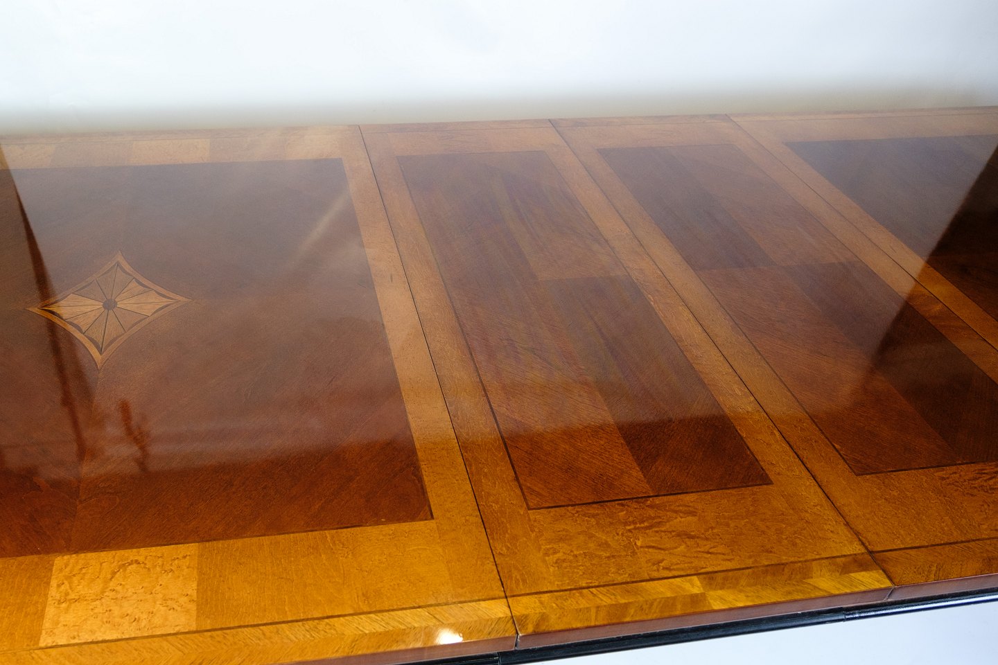 Spisebord Med Intarsia – Mahogni & Birk – Messingfødder – 2 Tillægsplader – År 1900