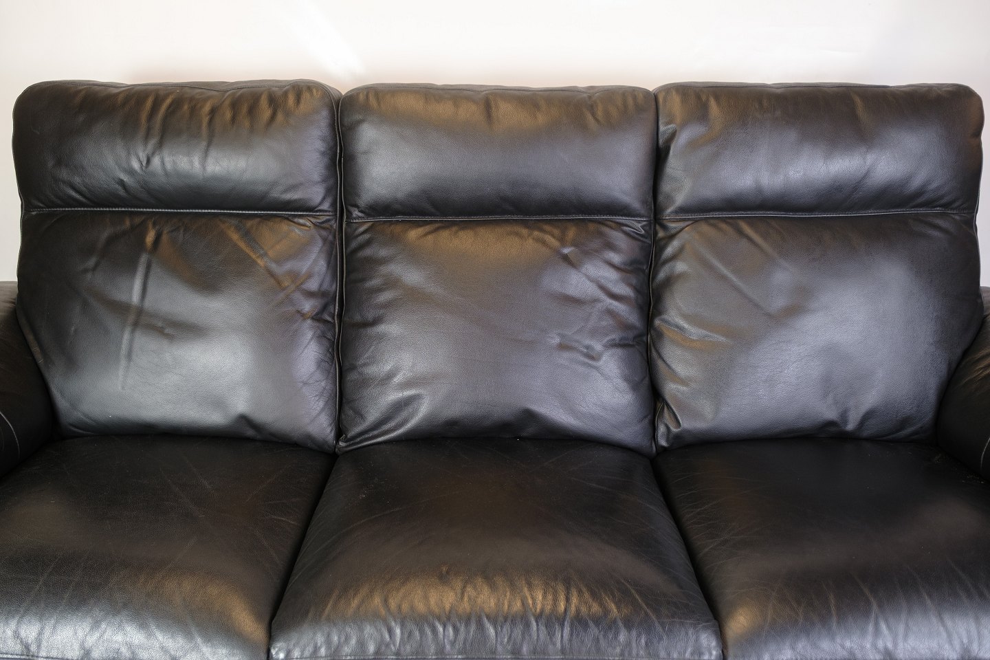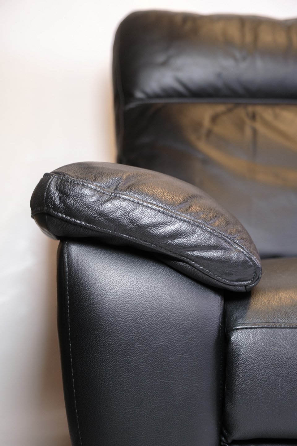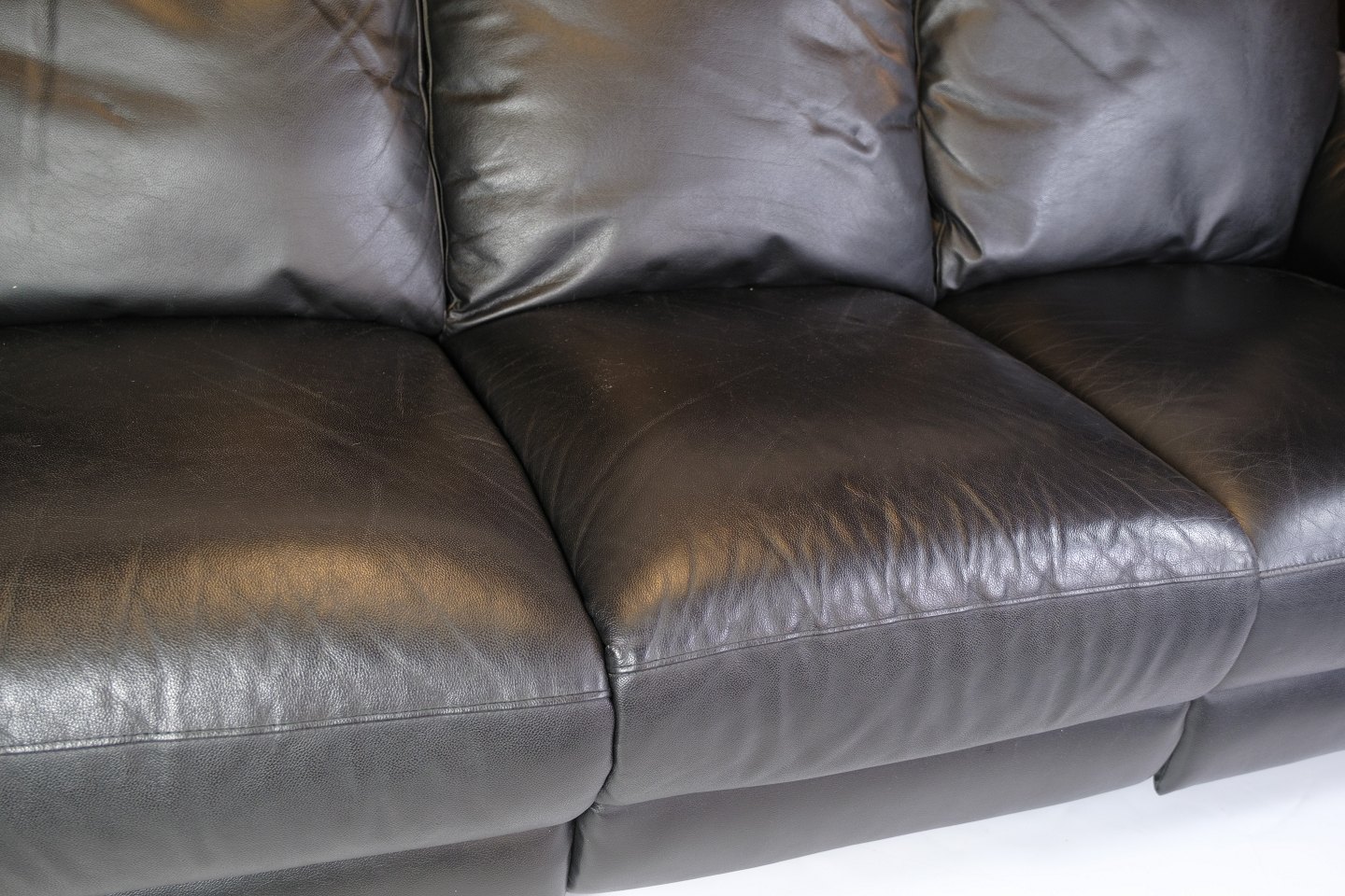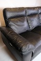 3-seater sofa made of black leather. The sofa is equipped with an adjustable backrest and legrest, which are operated electronically. It appears to be in good condition, and all electronics have been tested and are working correctly.