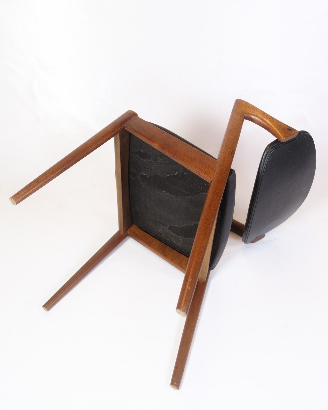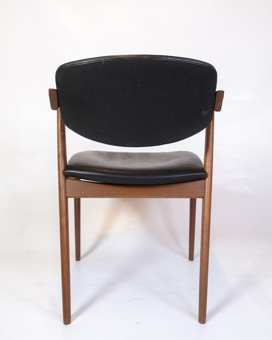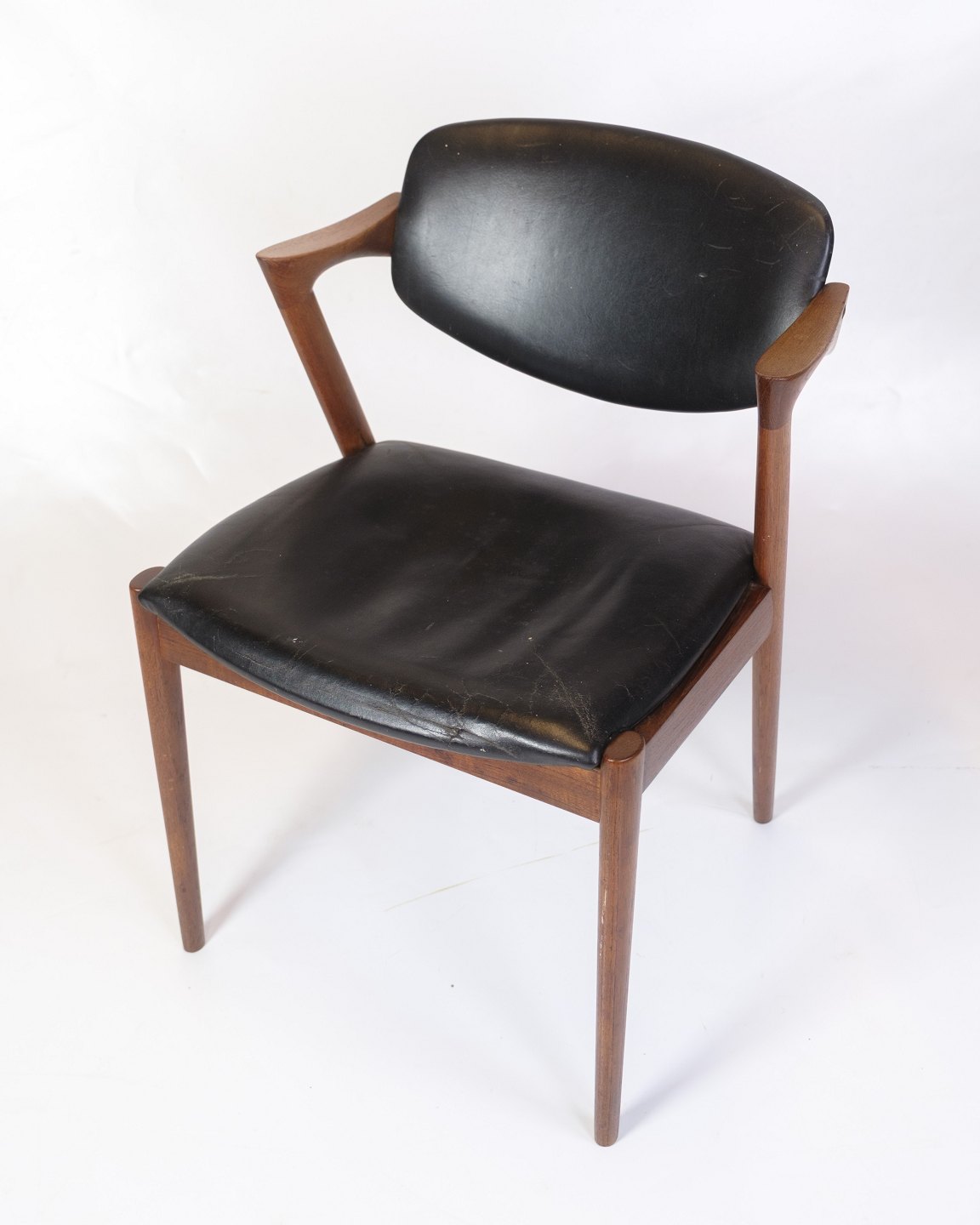 Model 42 er en spisebordsstol designet af Kai Kristiansen og fremstillet hos Schou Andersen i 1960’erne. Stolen er udført i massivt teaktræ med sort anilinlæder og har en karakteristisk vippe-ryg, der kombinerer komfort med et skarpt, let formsprog. Et smukt eksempel på dansk møbelkunst, hvor funktionalitet og æstetik går hånd i hånd.