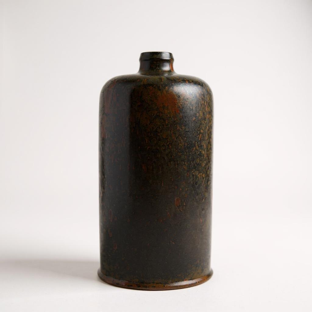 Saxbo blev grundlagt i 1929 af Nathalie Krebs og Franz Syberg og blev hurtigt kendt for sit teknisk præcise og æstetisk stramme stentøj. Krebs’ arbejder kendetegnes af enkle, skulpturelle former og eksperimenterende glasurer, som i denne vase, hvor farvespillet ændrer karakter med lyset og underlaget.