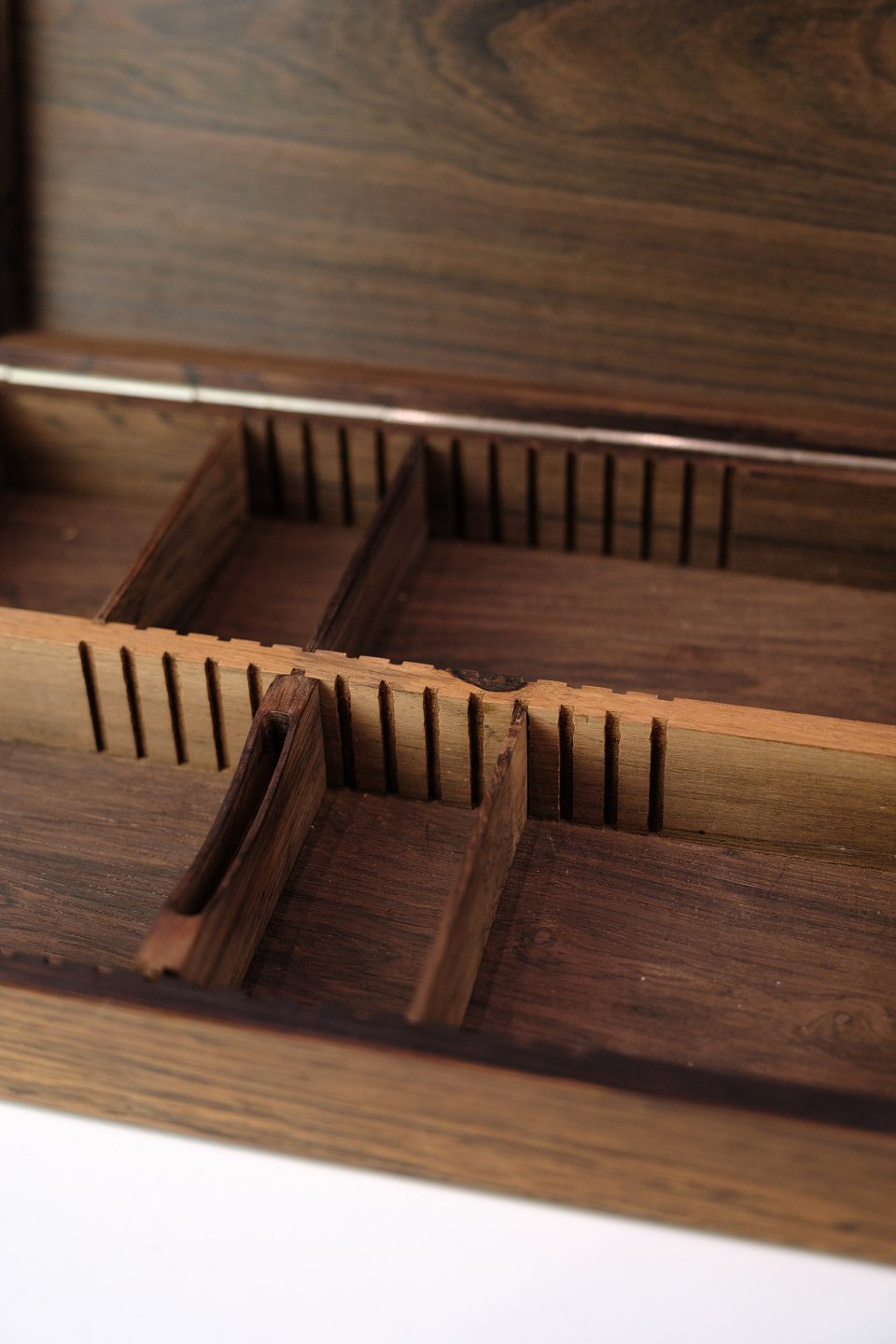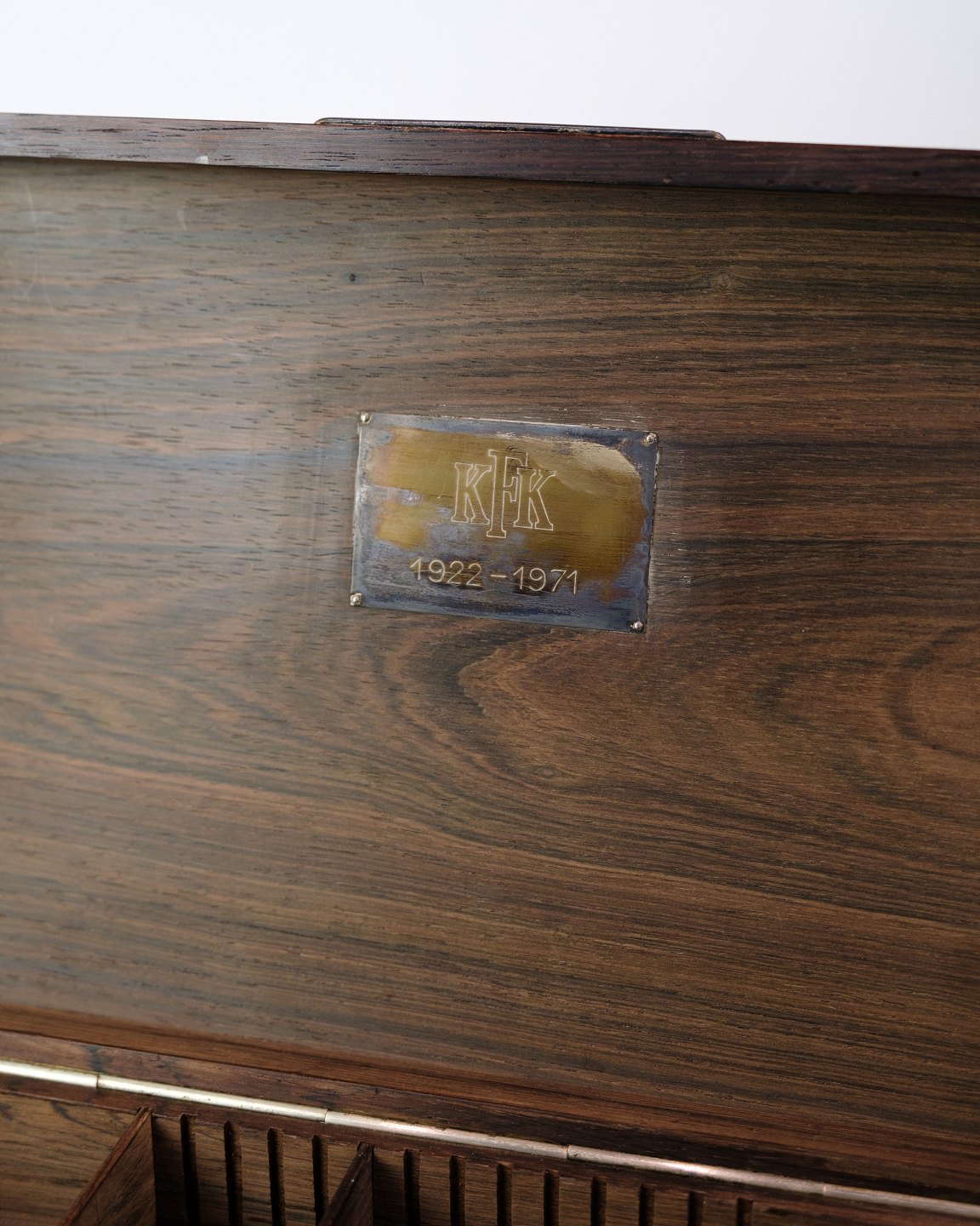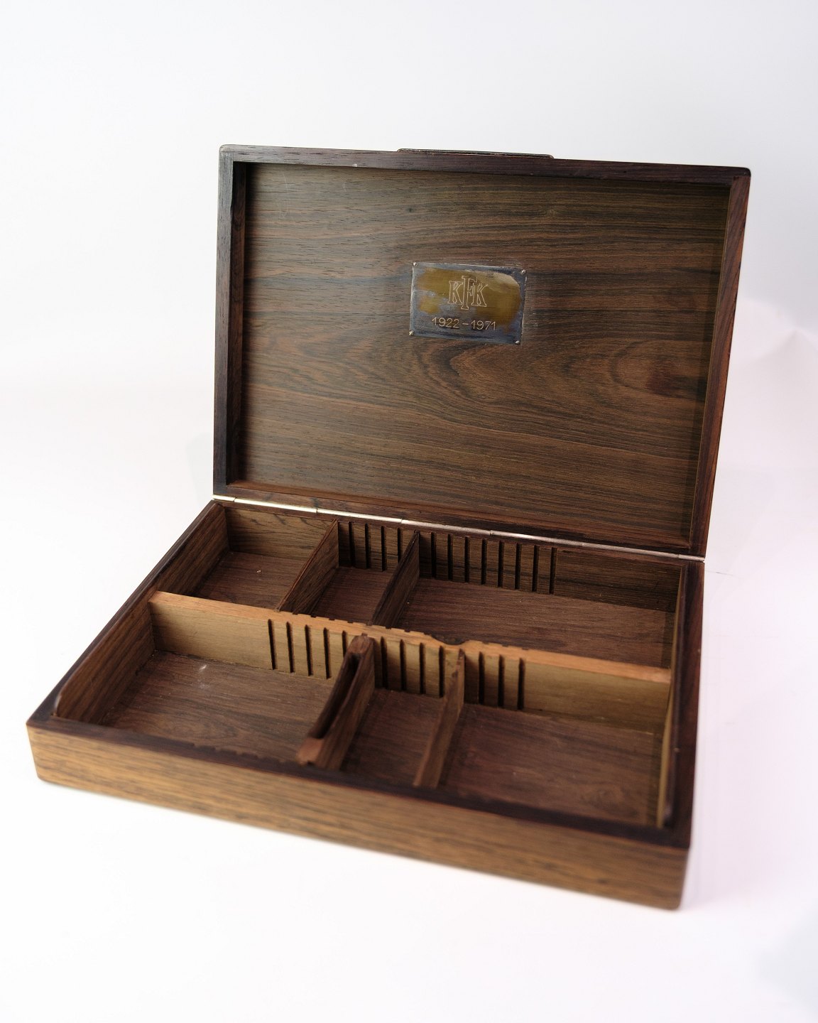 Opbevaringsboks i palisander med KFK-logo (1922‑1971). Indvendigt ruminddeling – perfekt til småting.