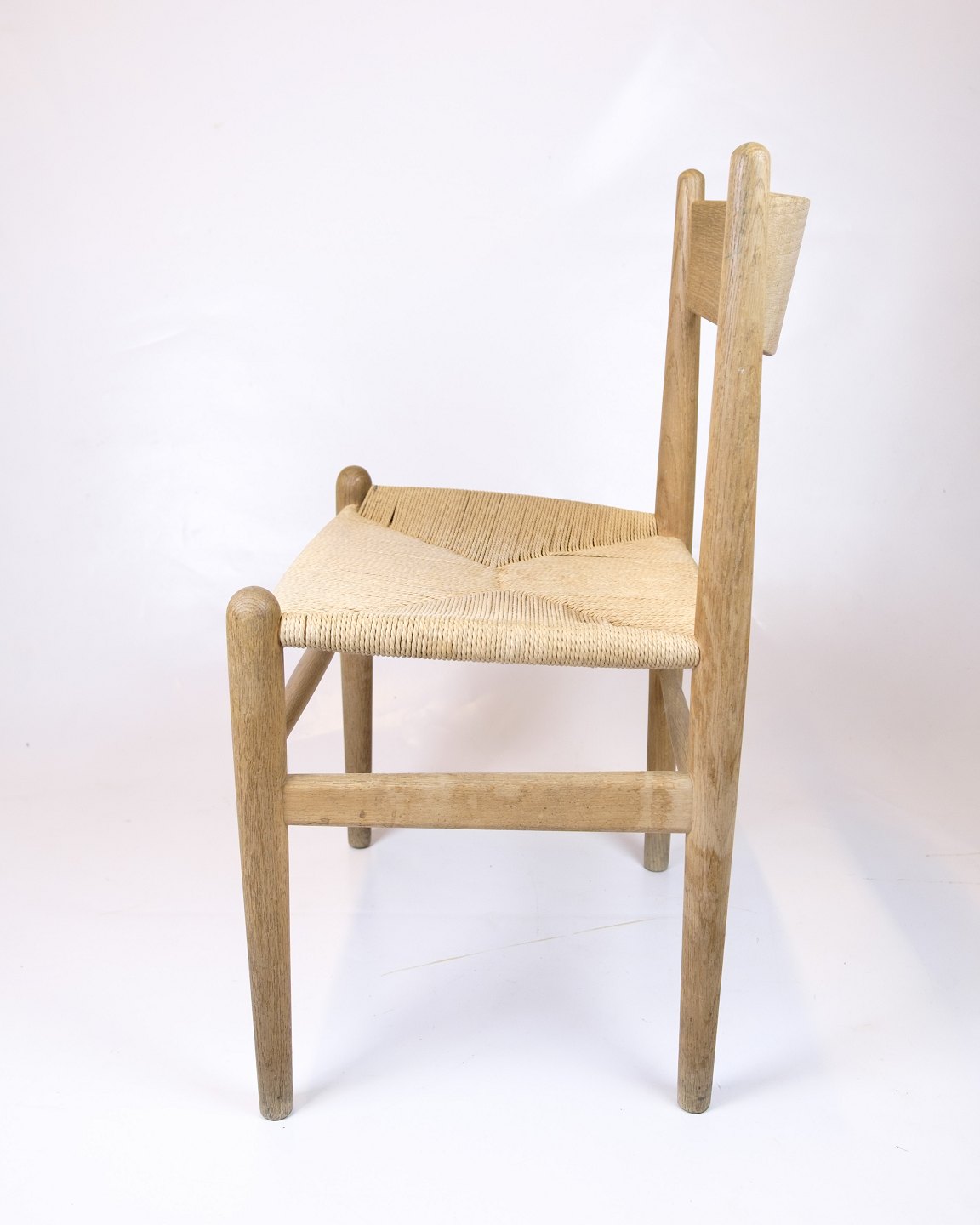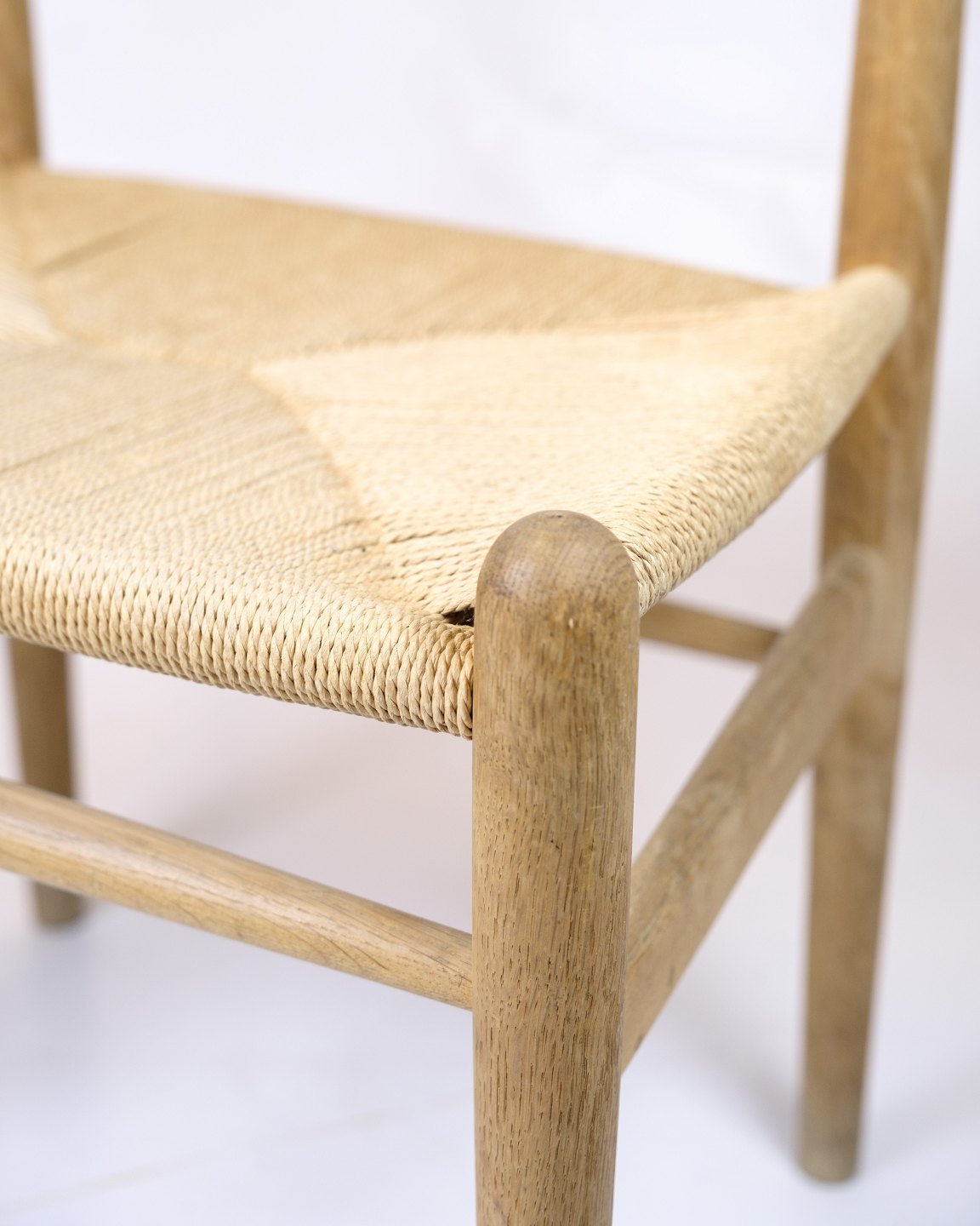 Stolen er udført i massivt egetræ med sæde i håndflettet papirgarn.