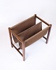 Avis- og magasinholder i palisander og brun canvas. Dansk design fra 1960’erne.