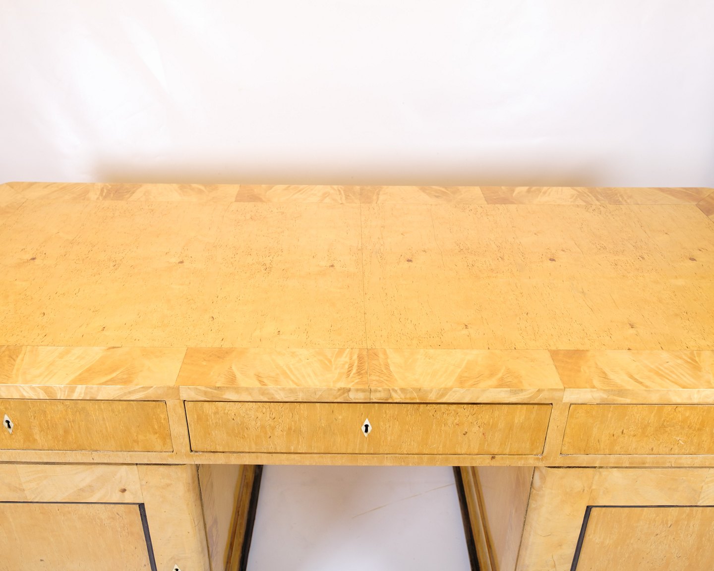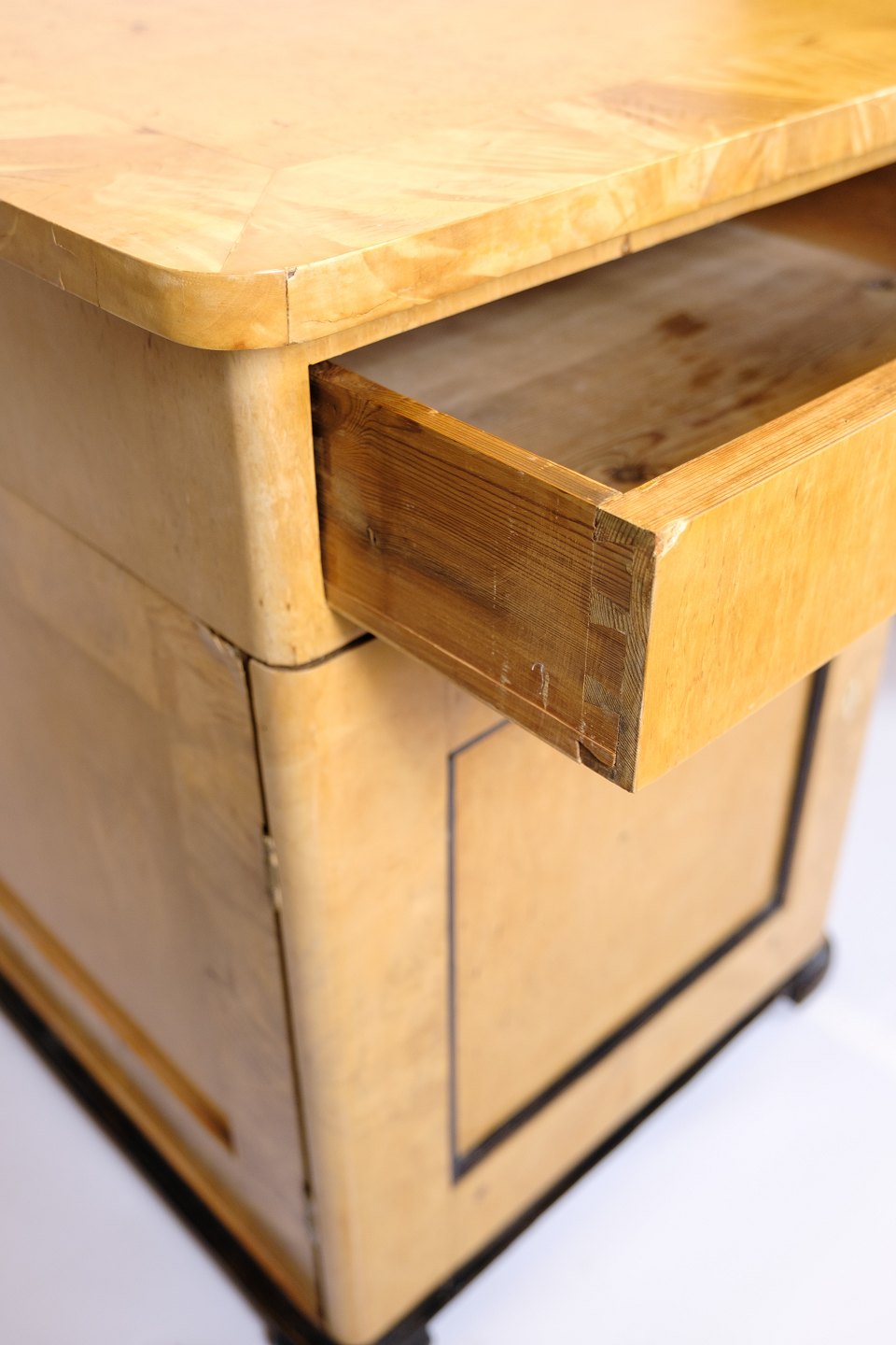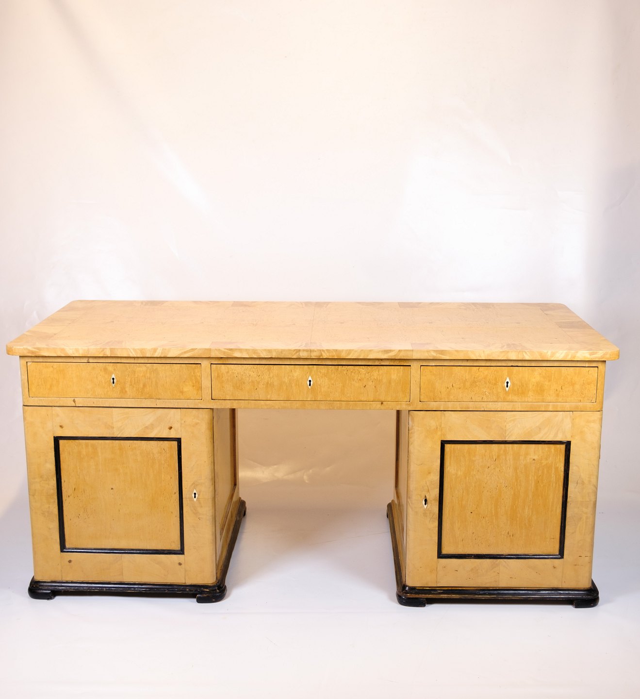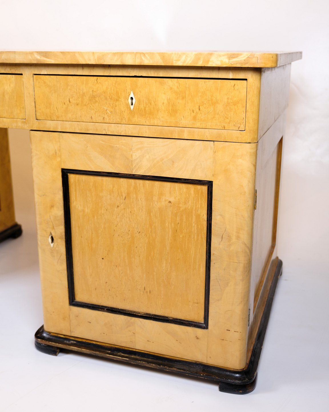 Antikt skrivebord i fra 1840’erne. Udført i birk med intarsia. Elegant antikt møbel med klassisk udtryk.