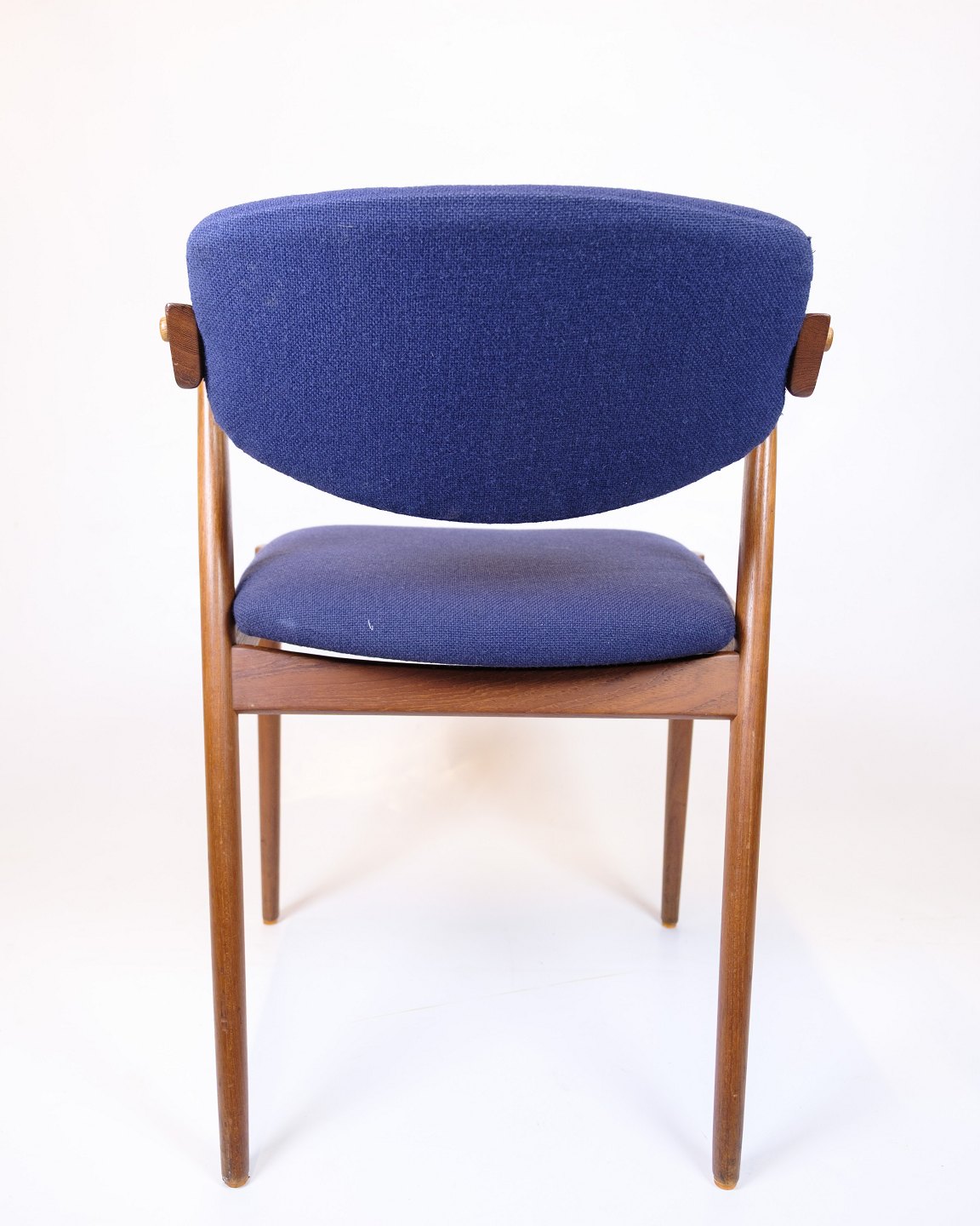 Sæt Af Seks Spisebordsstole - Model 42 - Teak & Blåt Stof - Kai Kristiansen - Schou Andersen - 1960erne