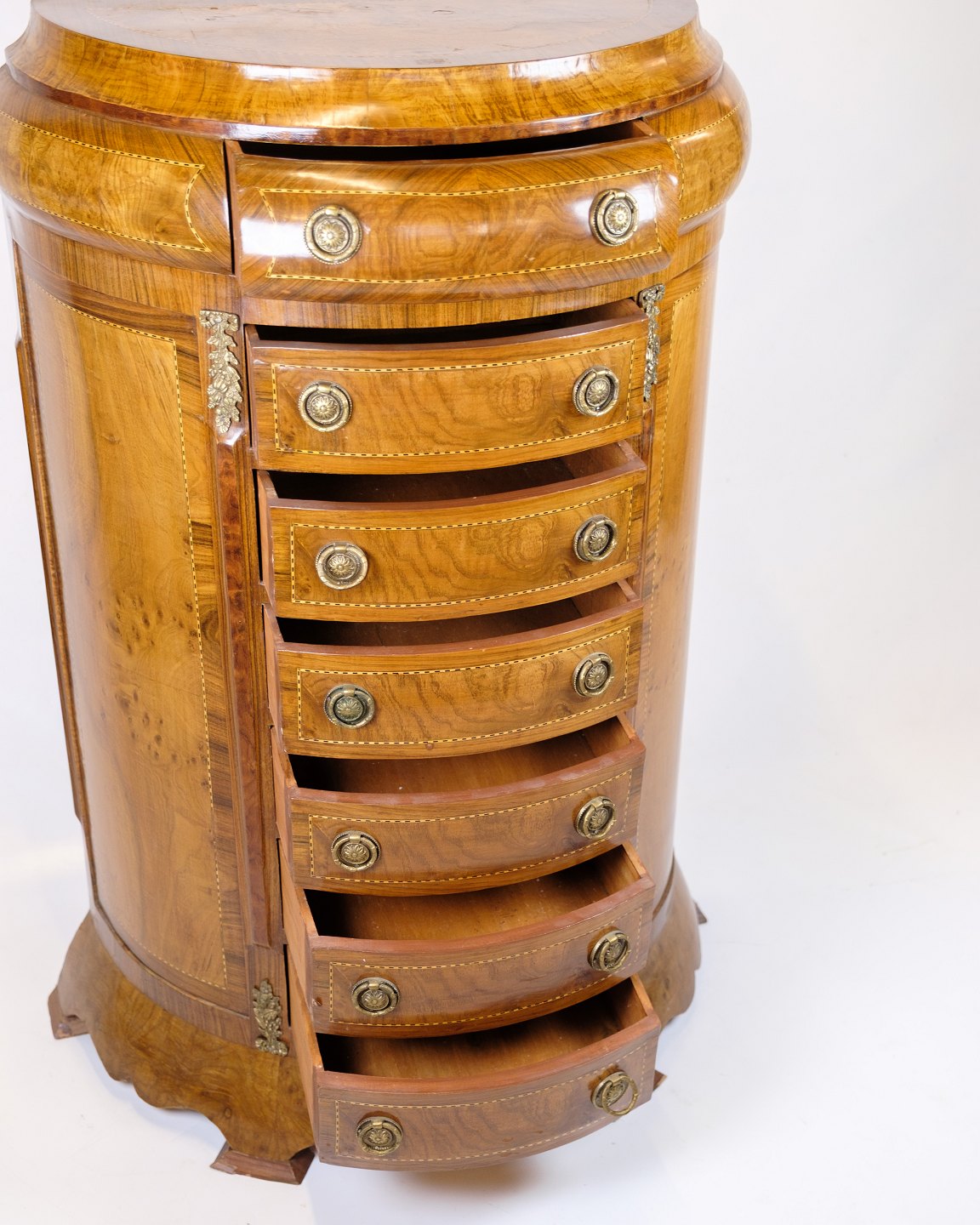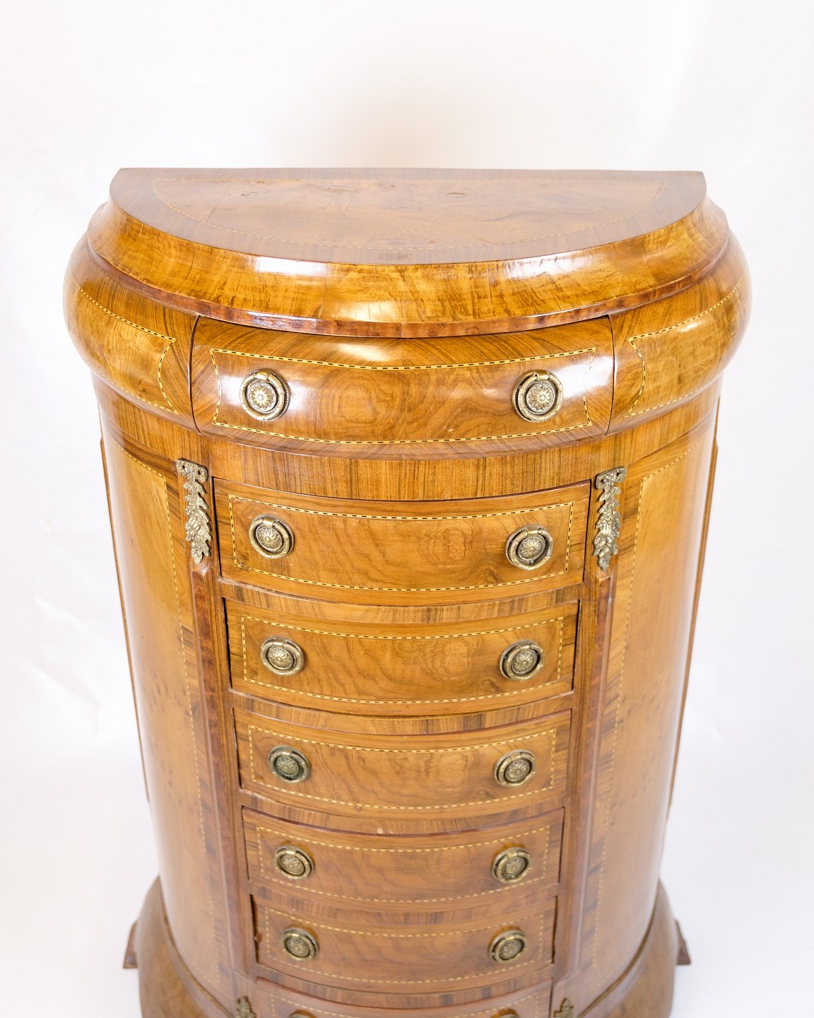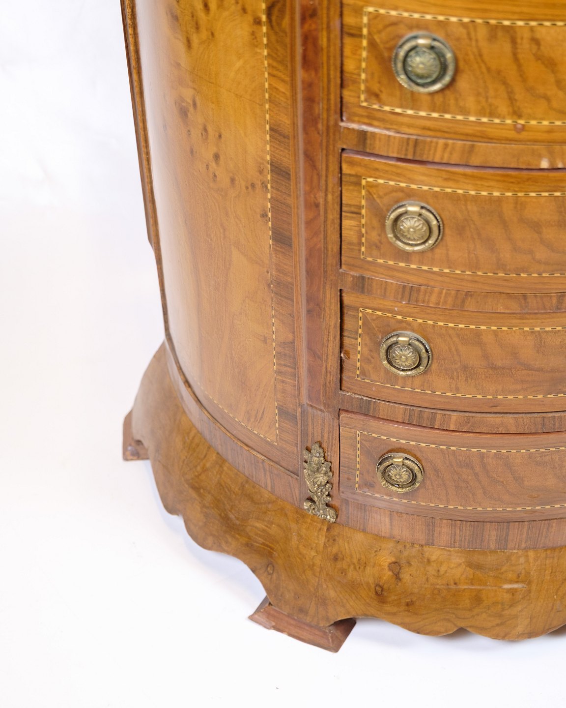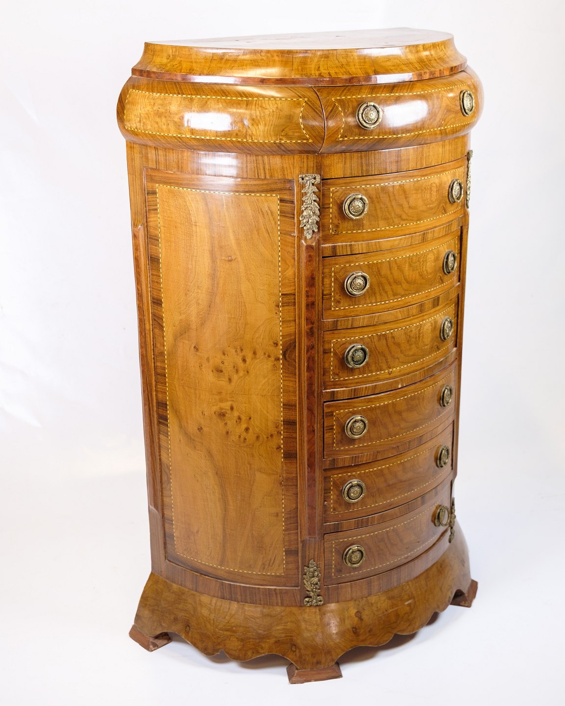 Antik Høj Kommode - Klunkestil - Rosentræ - Messing Greb - Buet Front - 1890erne