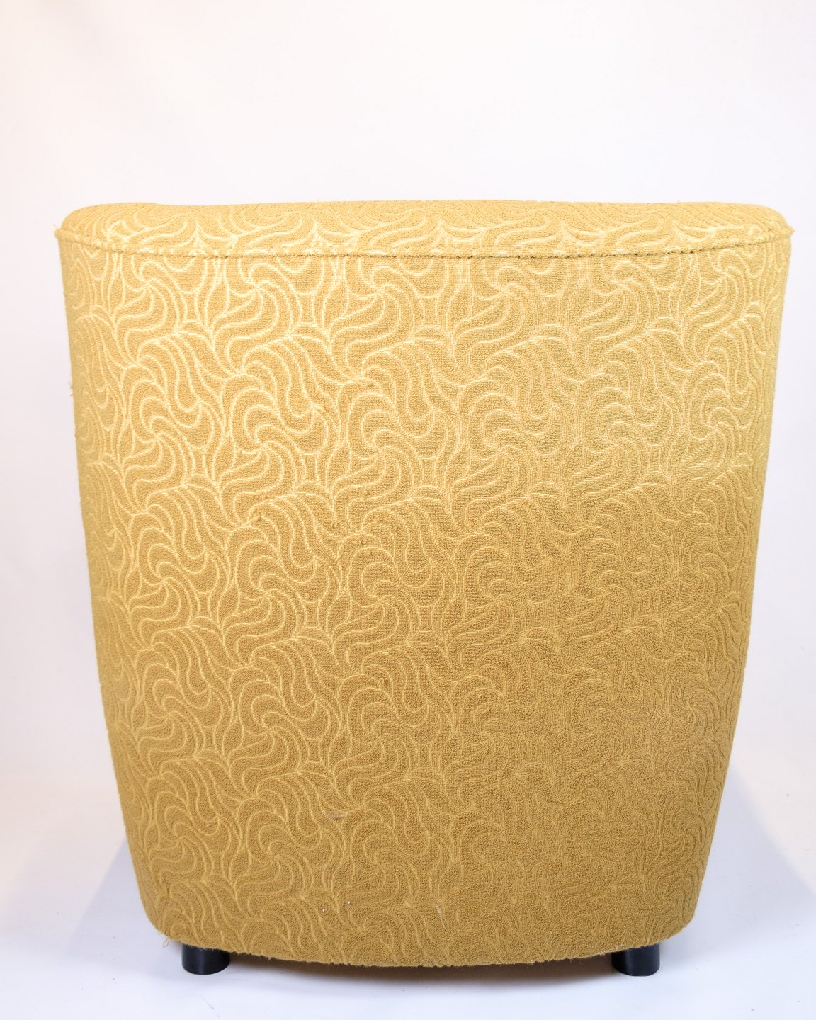 Lænestol med skammel - Overpolstret - Mønstret gult stof - Sorte ben - Dansk Design - Stil Af 1940'erne