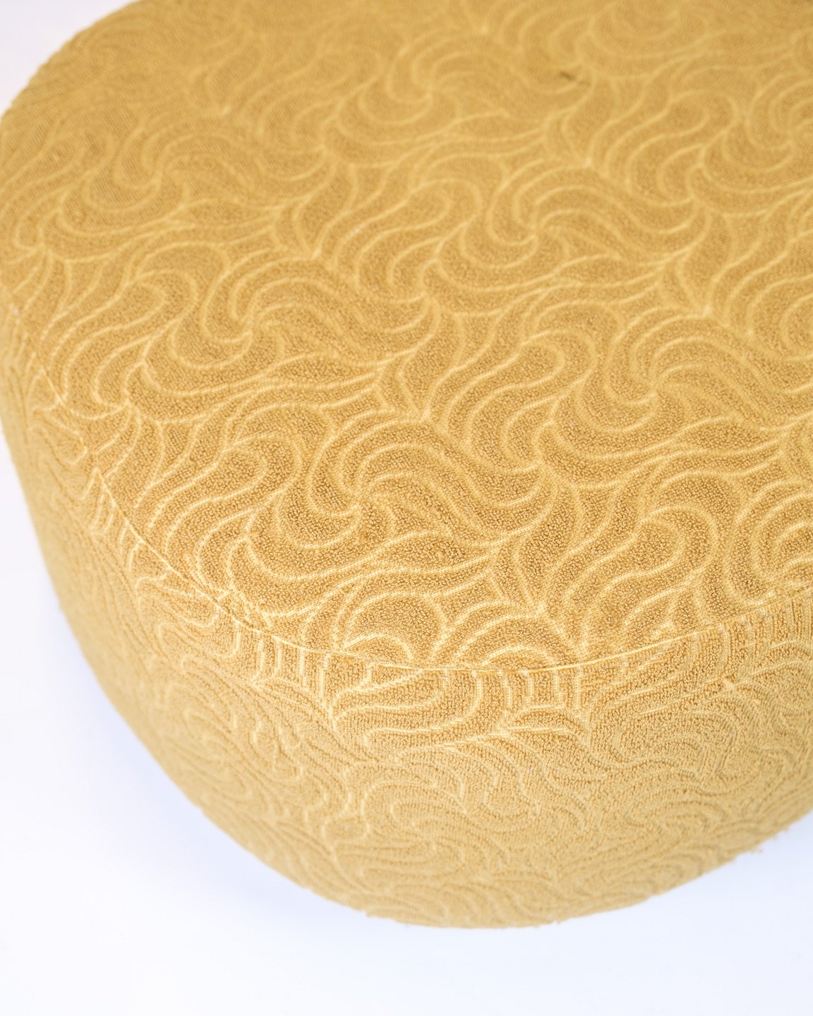 — Materialer: Overpolstret i mønstret gult stof, sorte ben